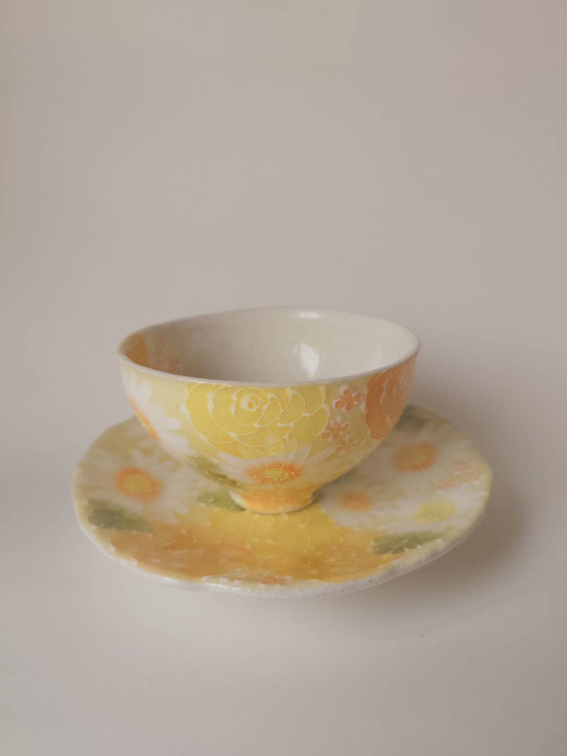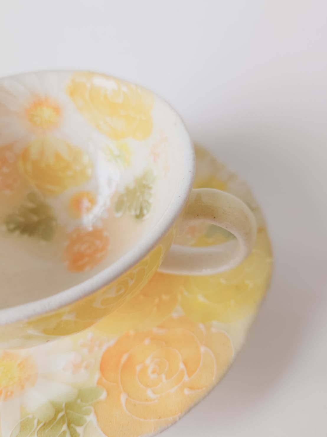 工房ゆずりは カップ&ソーサー 黄彩色絵花