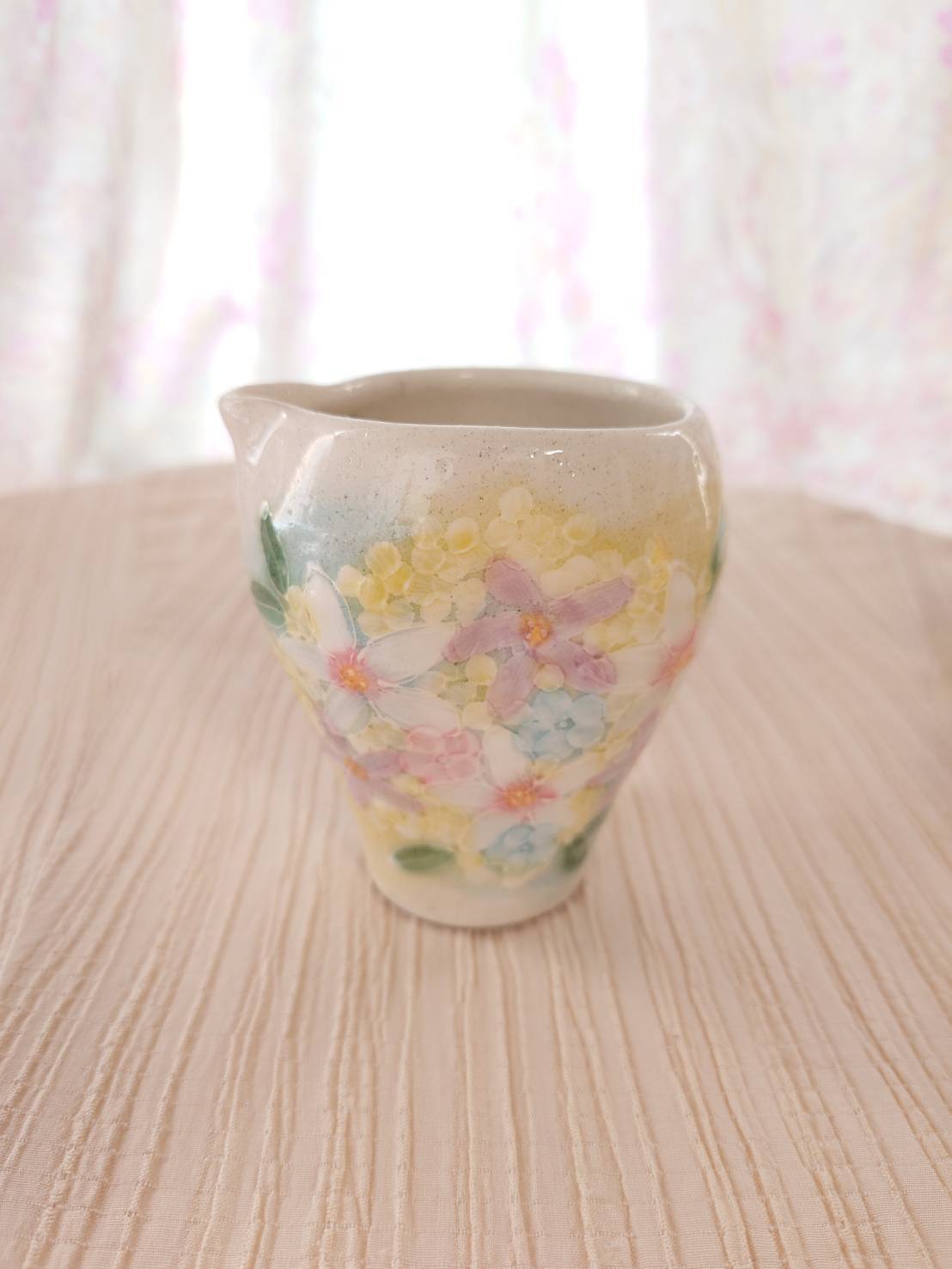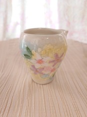 小花模様とミモザを思わせるドットが優しい雰囲気のうつわ