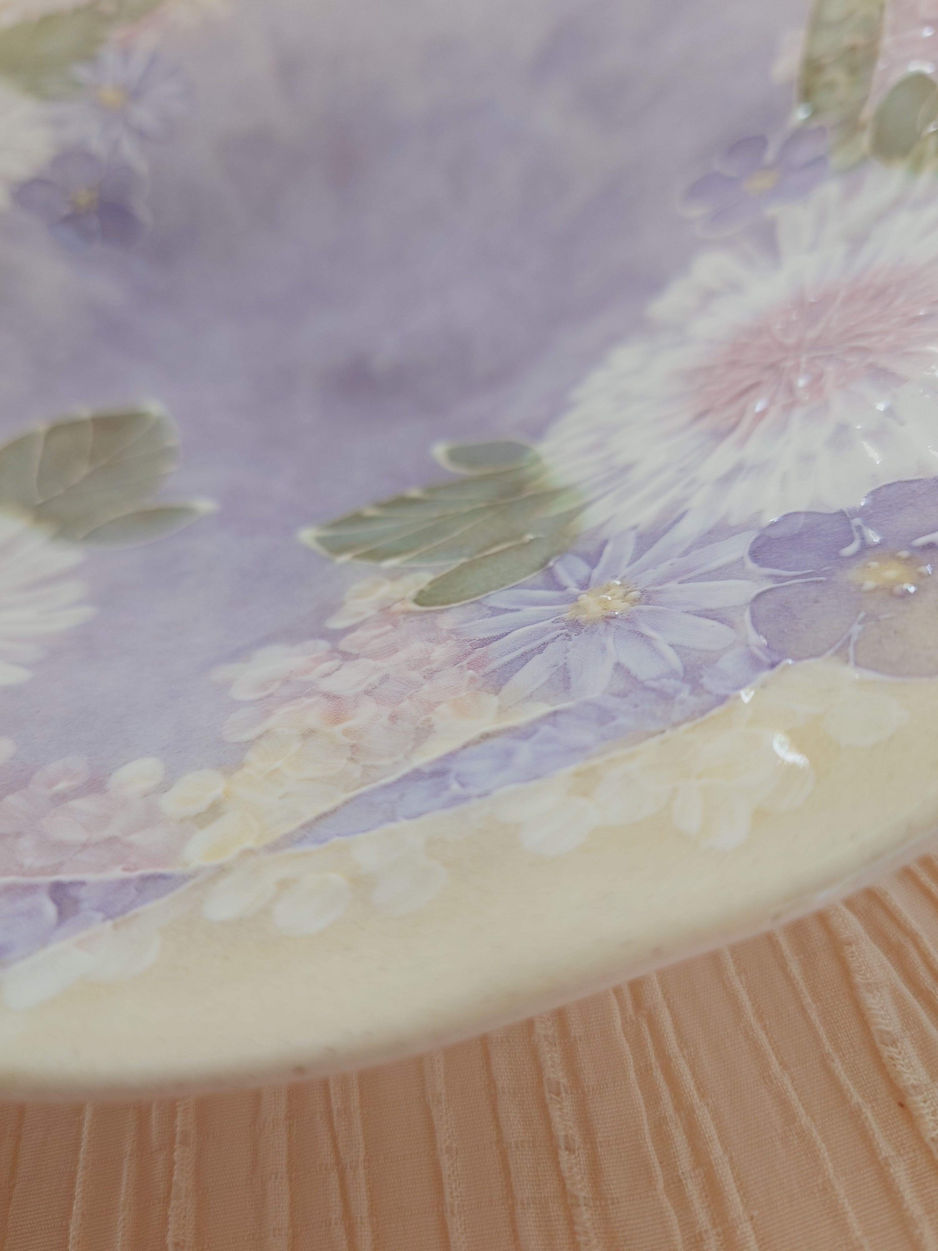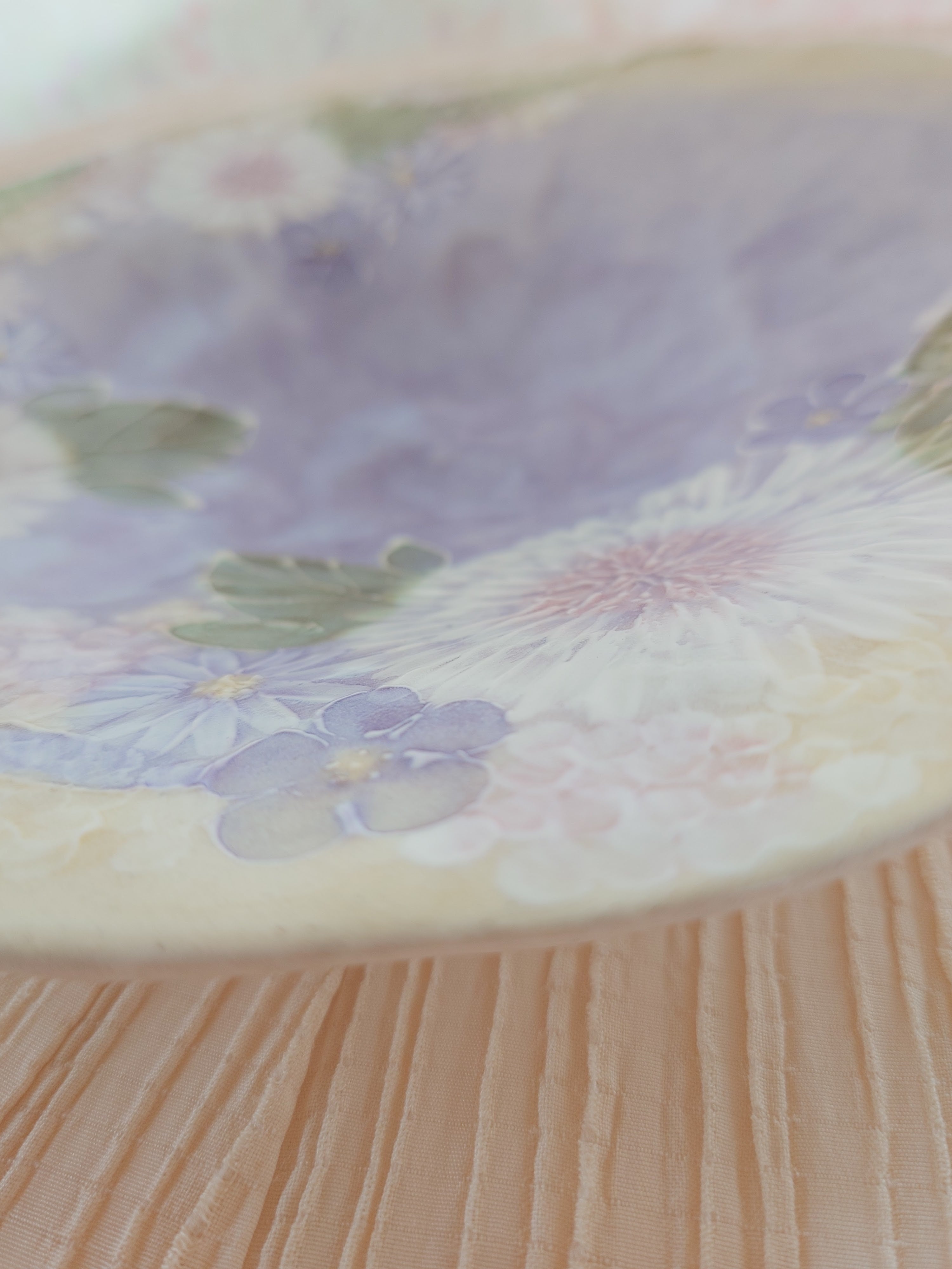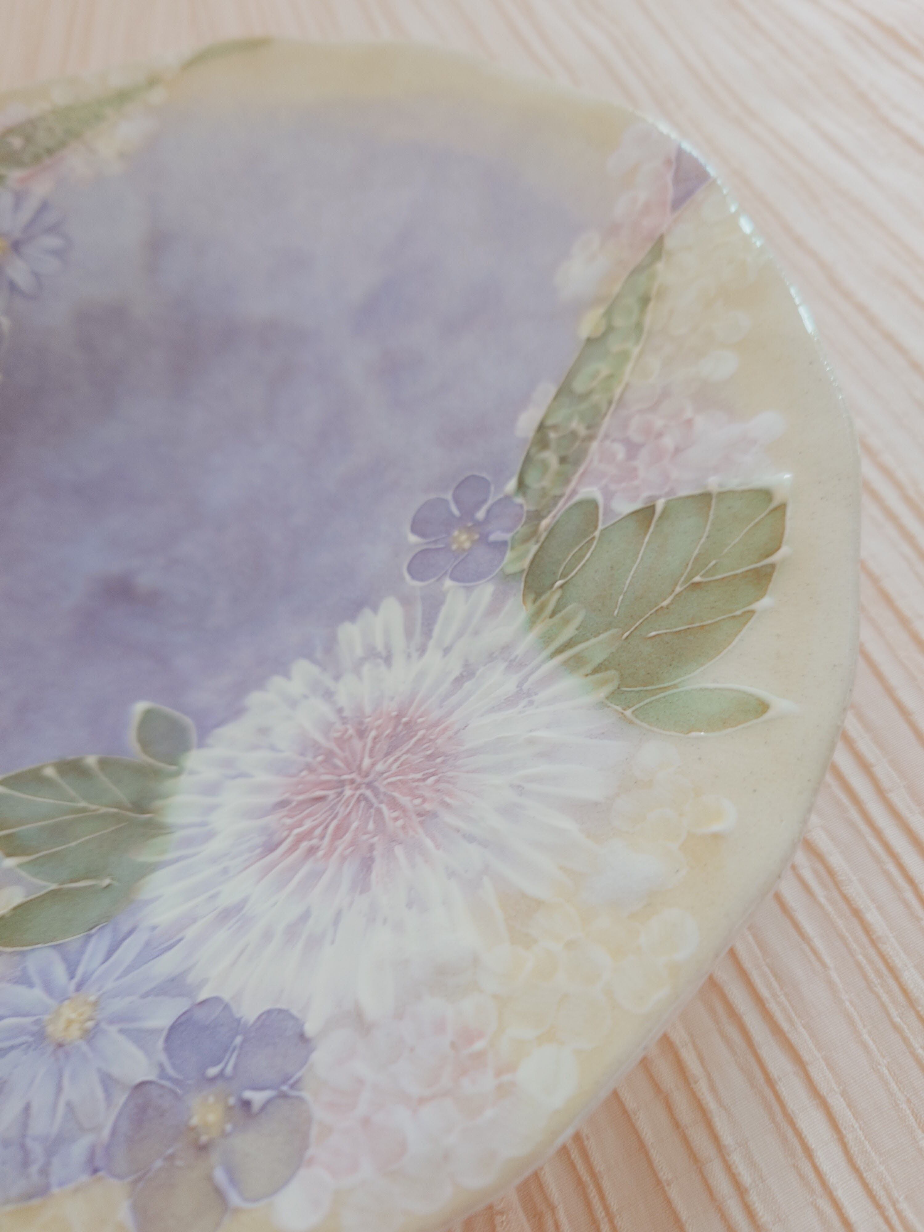 工房ゆずりは パスタ皿 紫を主体にした華やかで落ち着いた上品な絵柄 花かざり