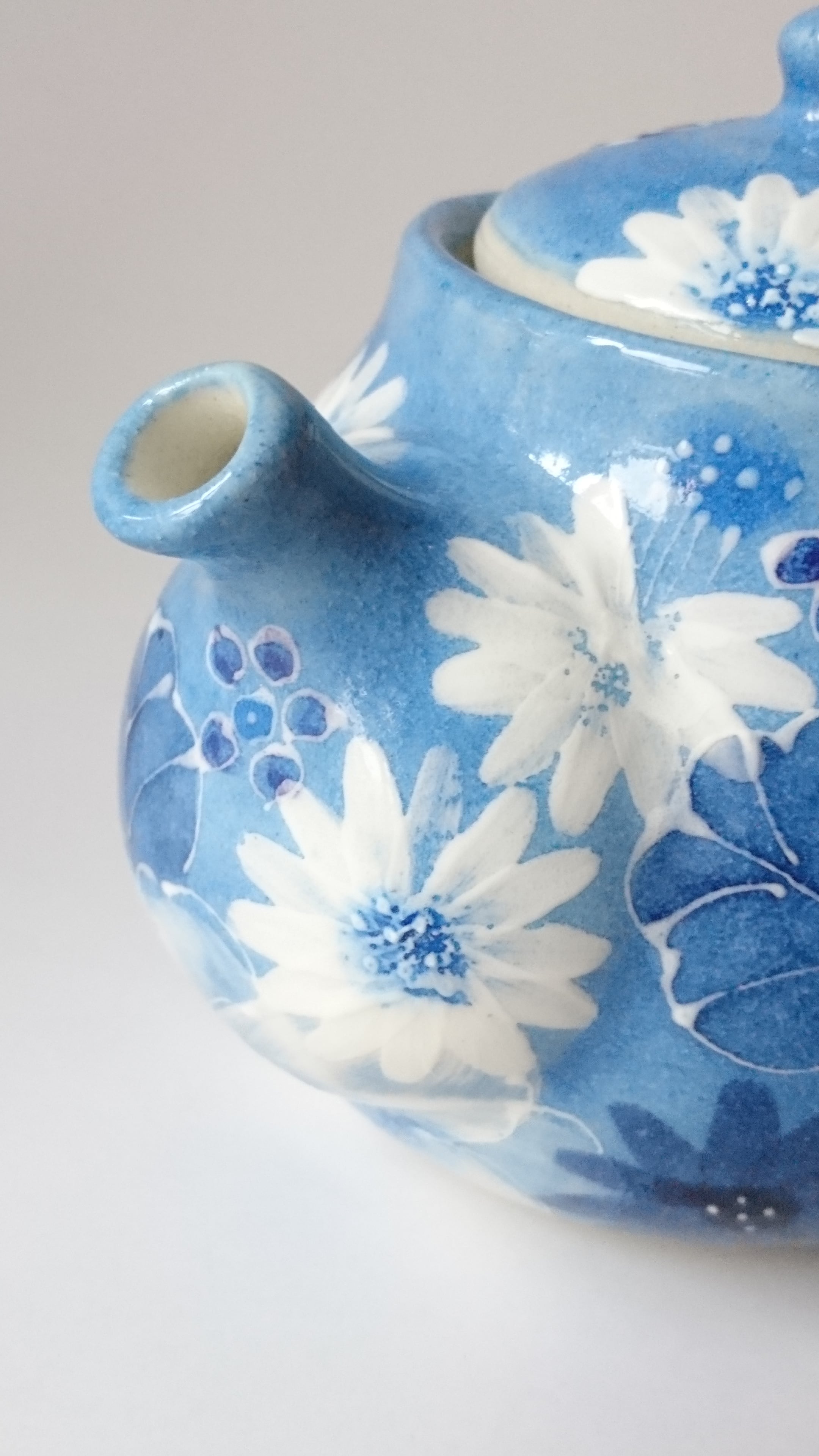 藍彩白絵花 プチポットとぐい吞み(平型)大5個セット