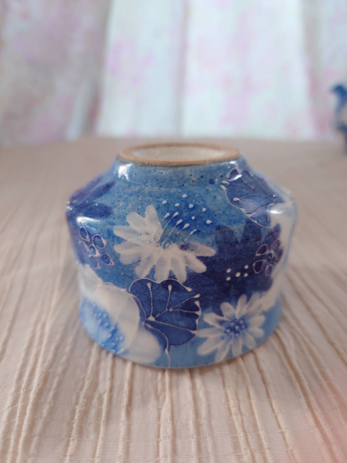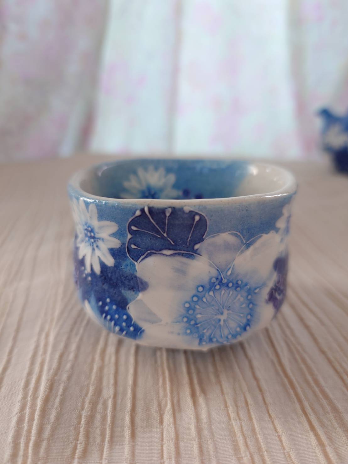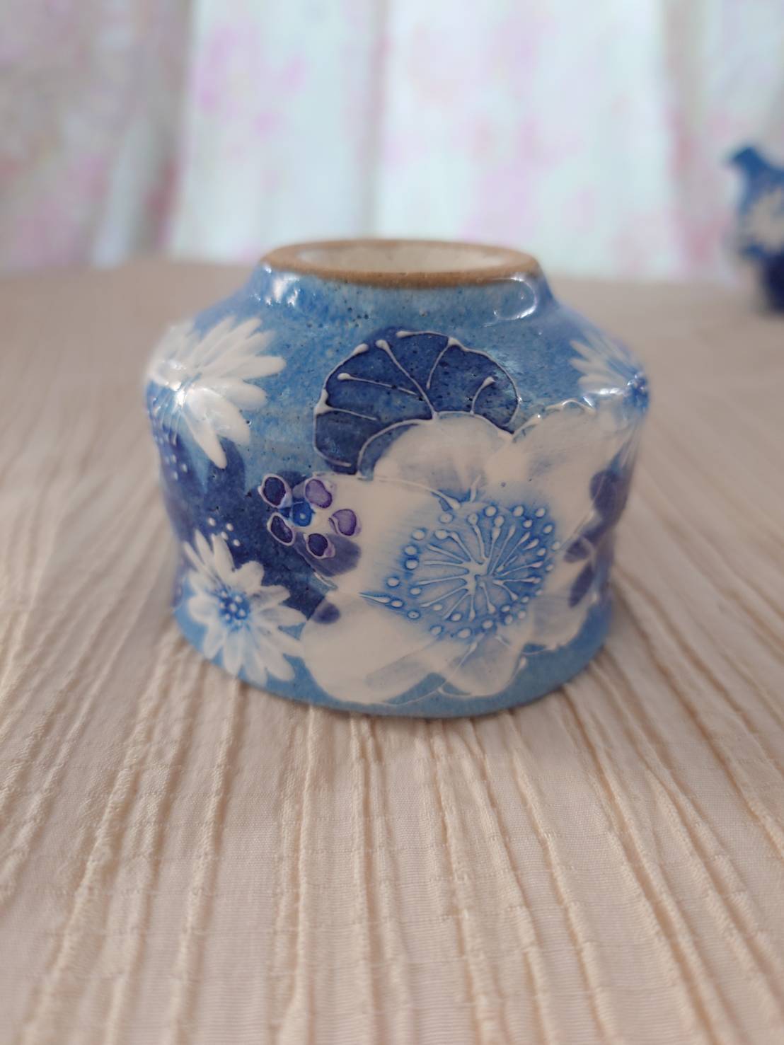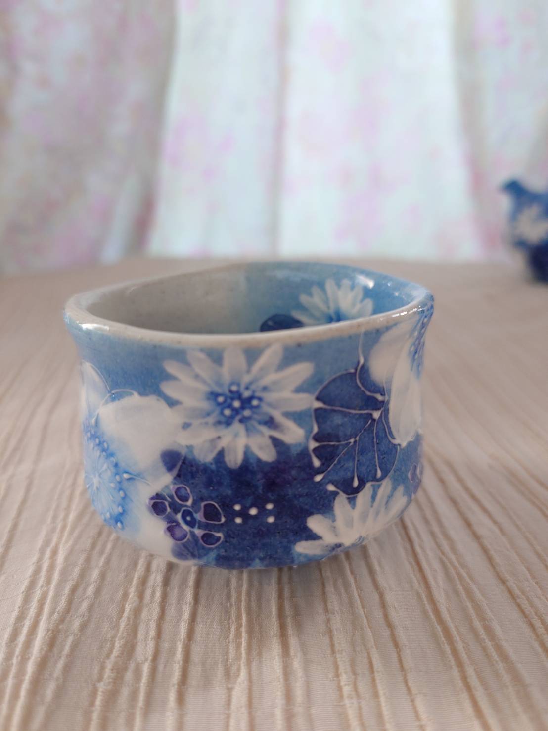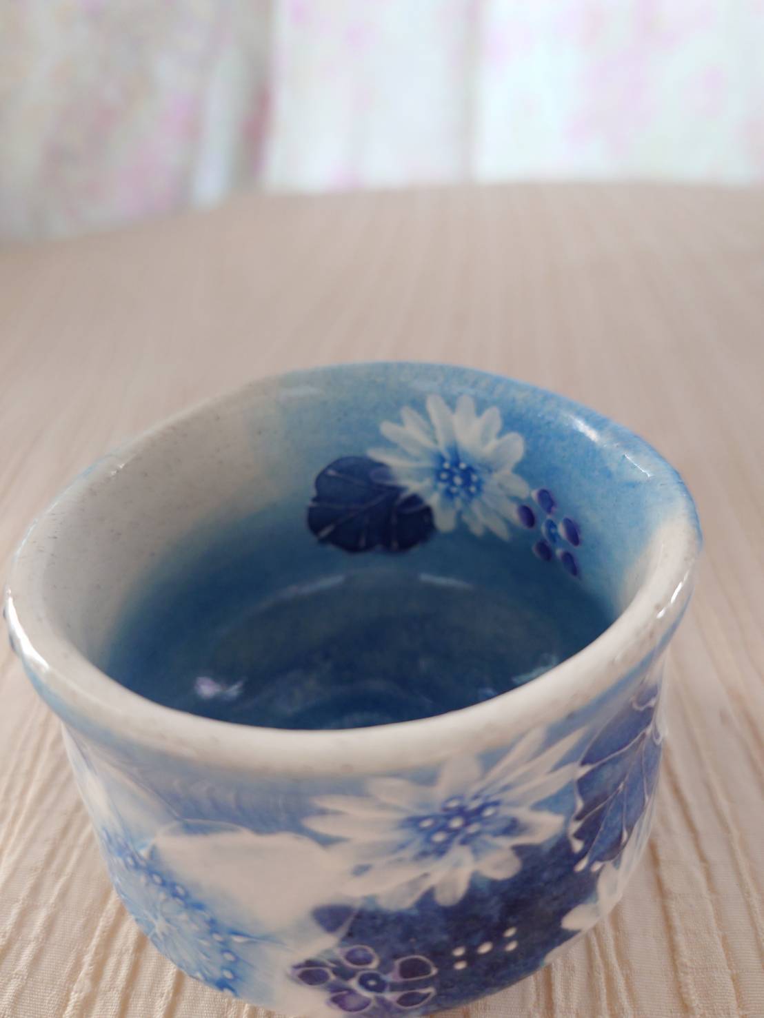 藍彩白絵花 ぐい吞み(平型)大