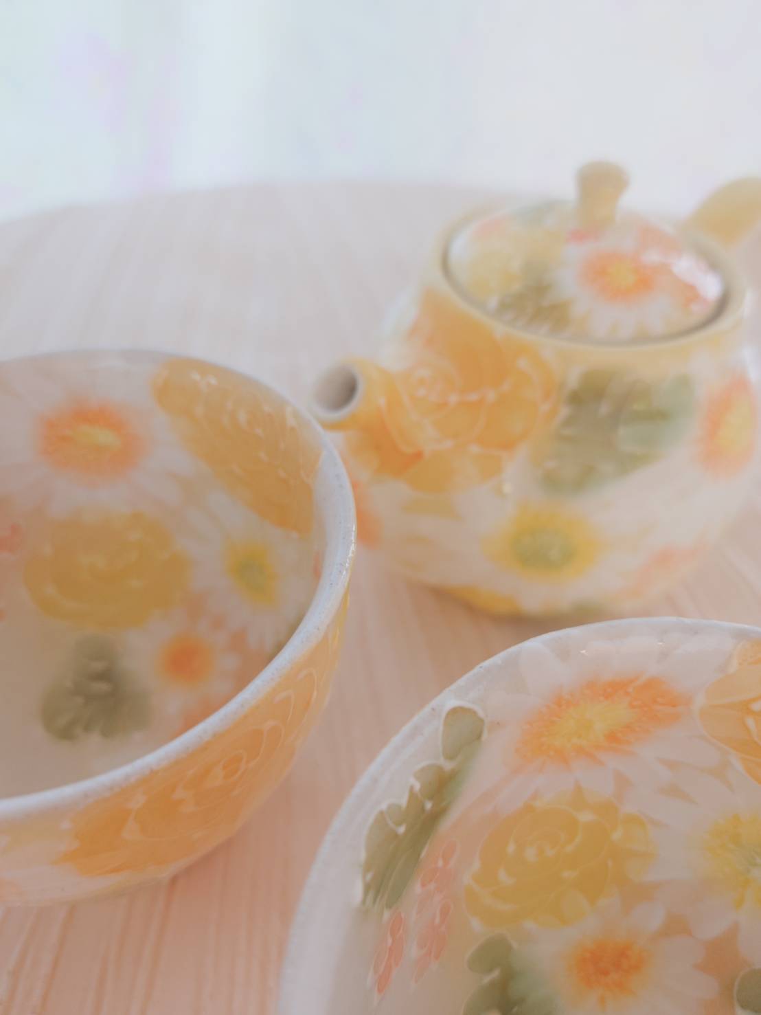 工房ゆずりは プチポット1個・湯呑2個セット 黄彩色絵花
