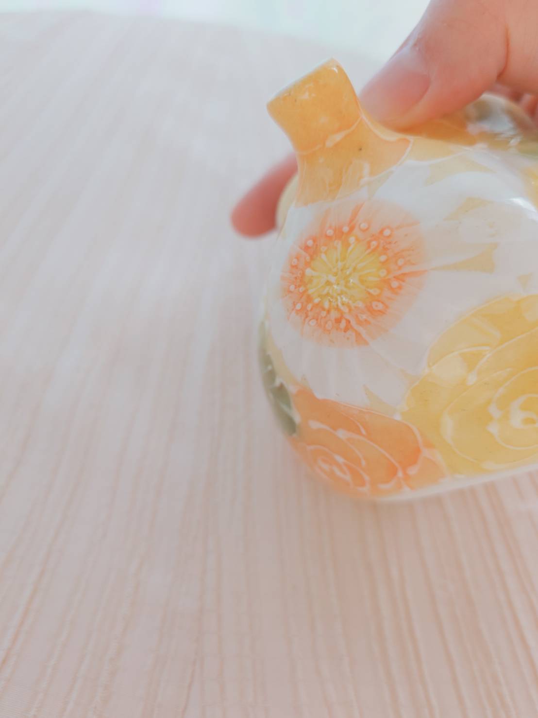 工房ゆずりは プチポット 鮮やかな黄色に白い花が映えてとても綺麗です 黄彩色絵花