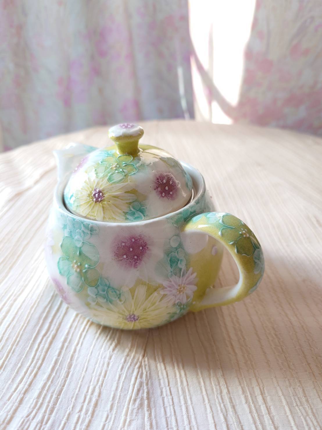 工房ゆずりは 丸ポット 鮮やかなグリーンの小花がとても綺麗でアイテムの多い 彩小花紋