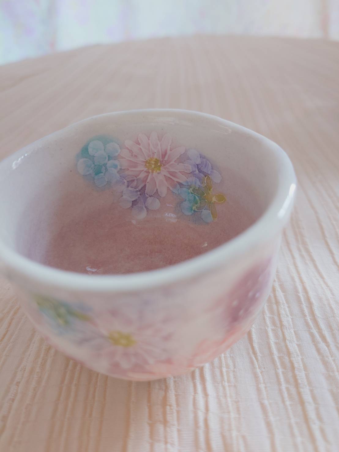 薄い紫色系の繊細な小花柄がとても綺麗な色彩花のぐい吞み大