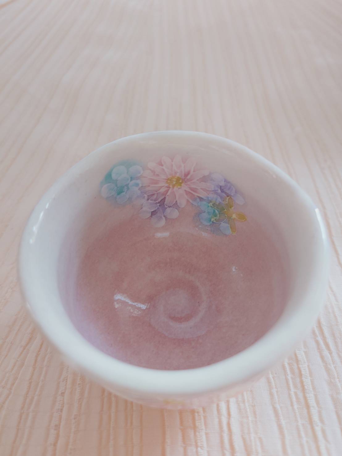 薄い紫色系の繊細な小花柄がとても綺麗な色彩花のぐい吞み大