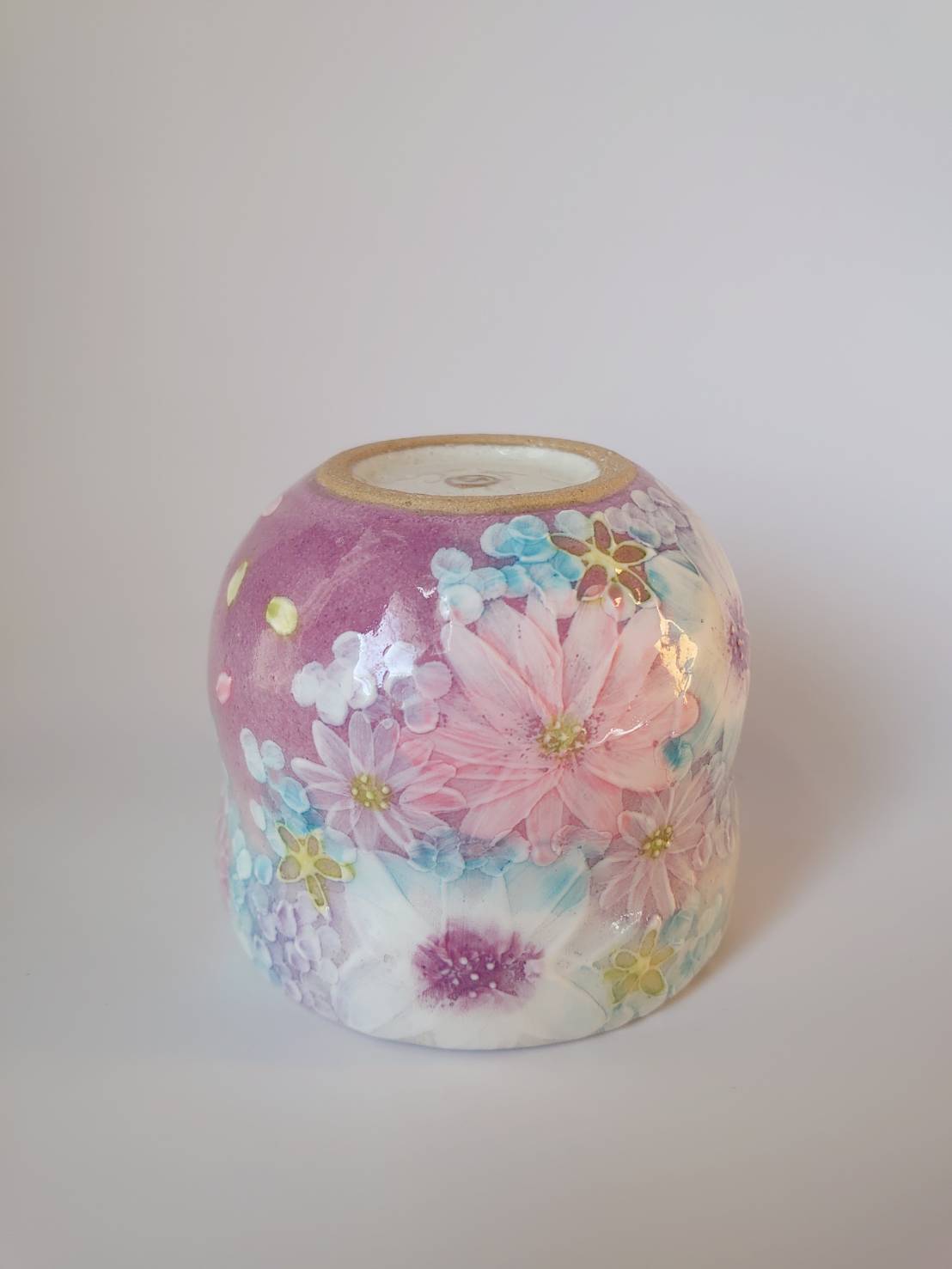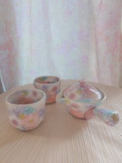 薄い紫色系の繊細な小花柄がとても綺麗な色彩花の急須と福副碗