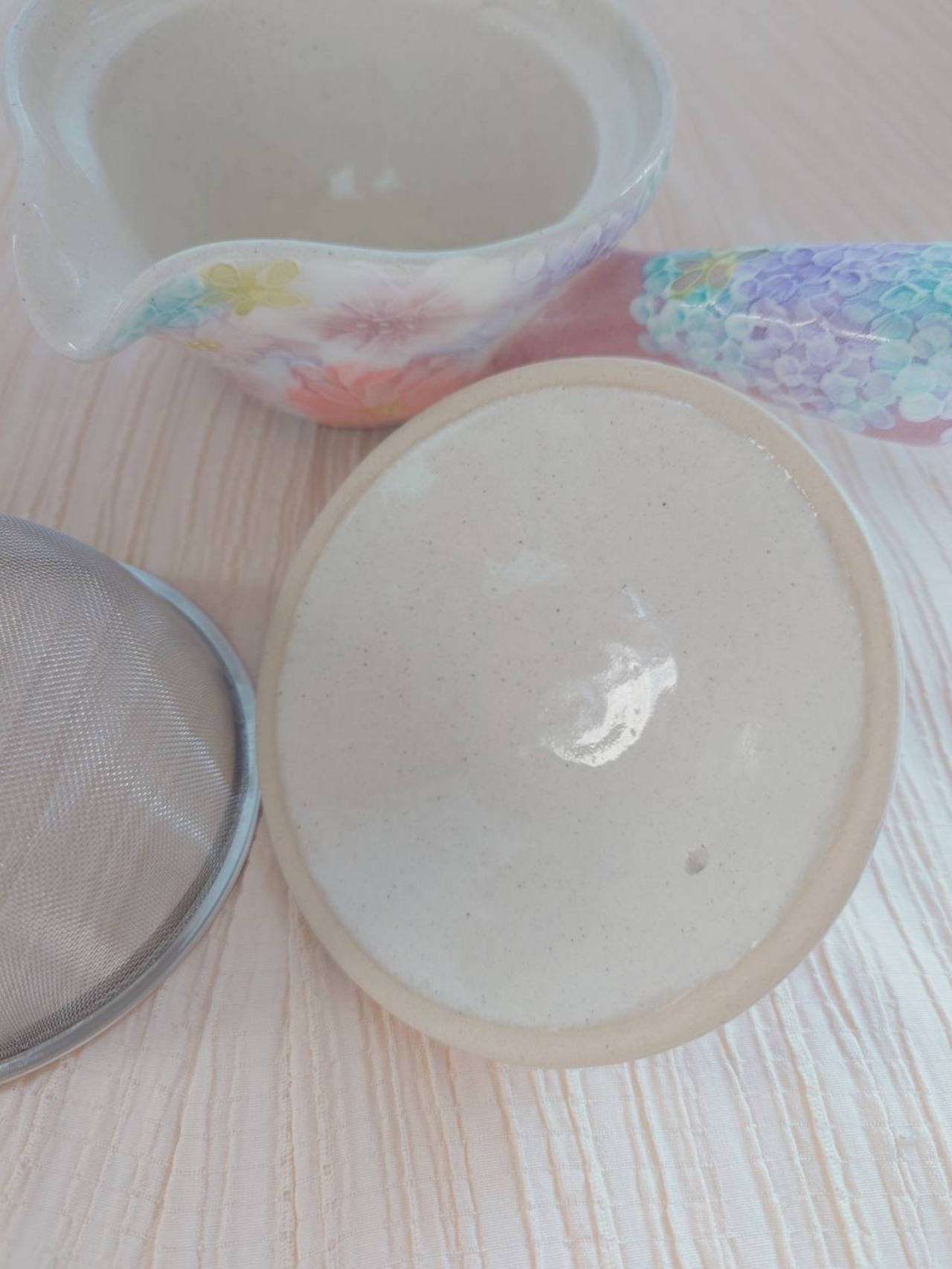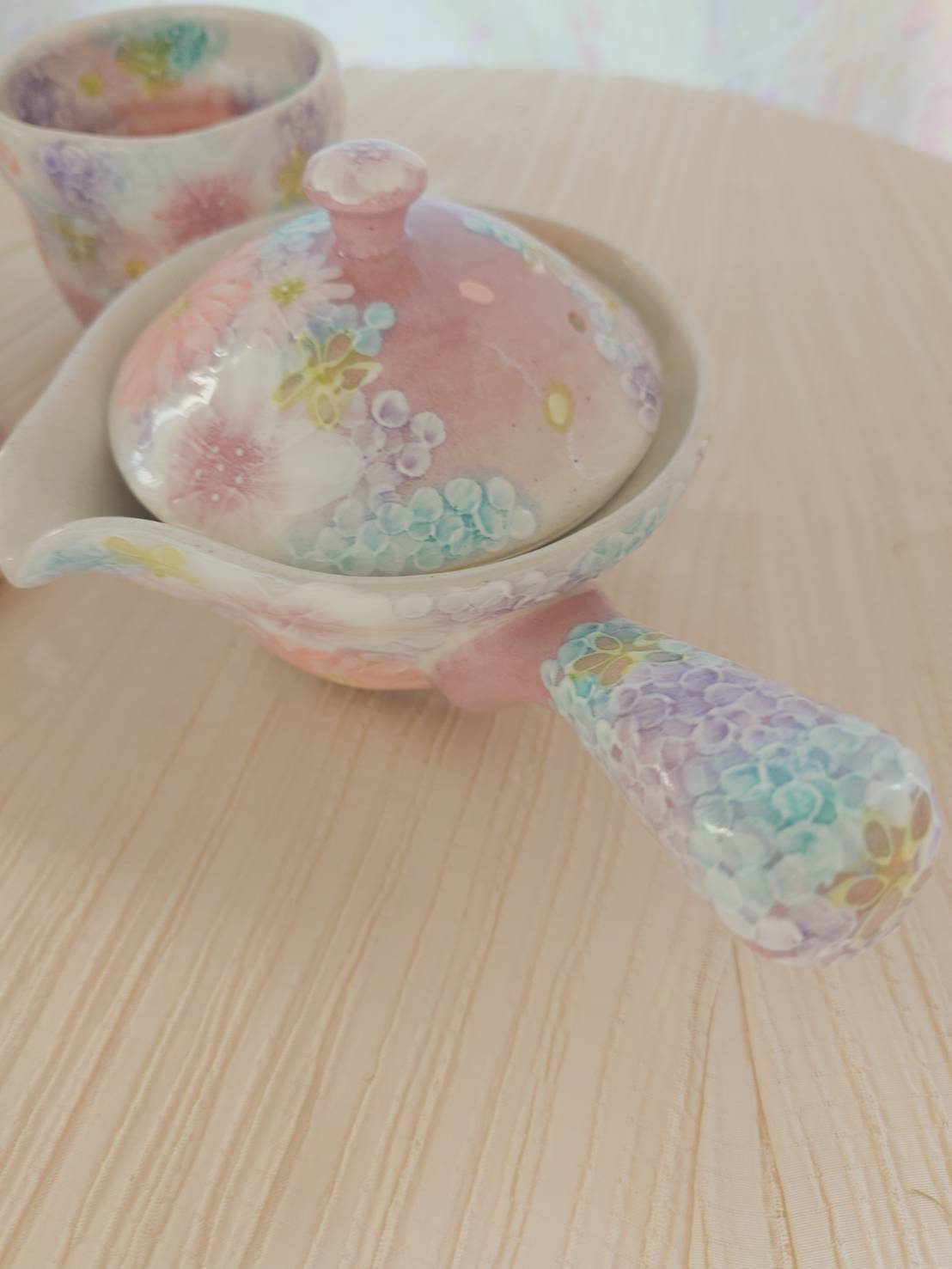 工房ゆずりは 急須・福副碗2個セット 薄い紫色系の花柄がとても綺麗な絵柄 色彩花