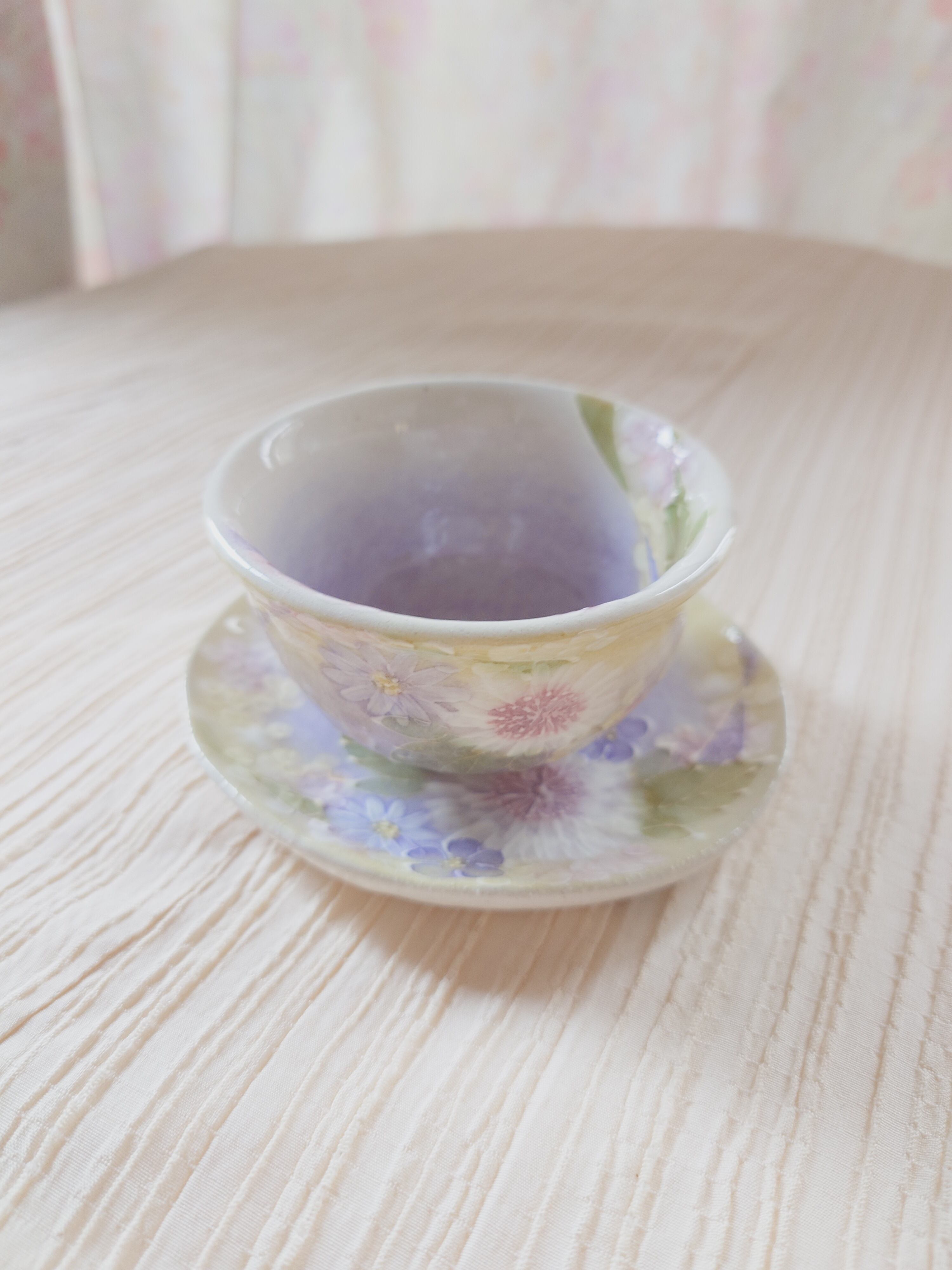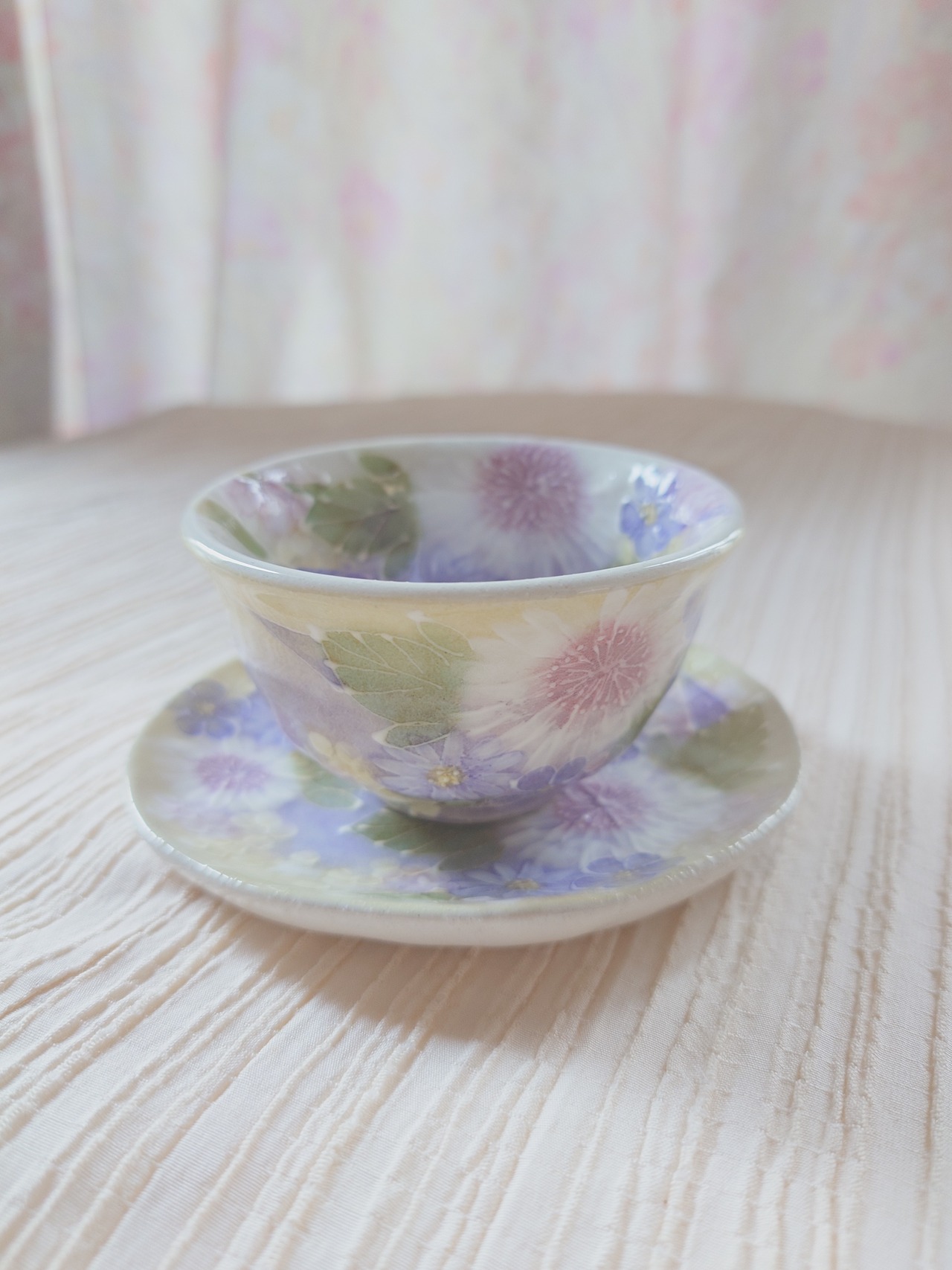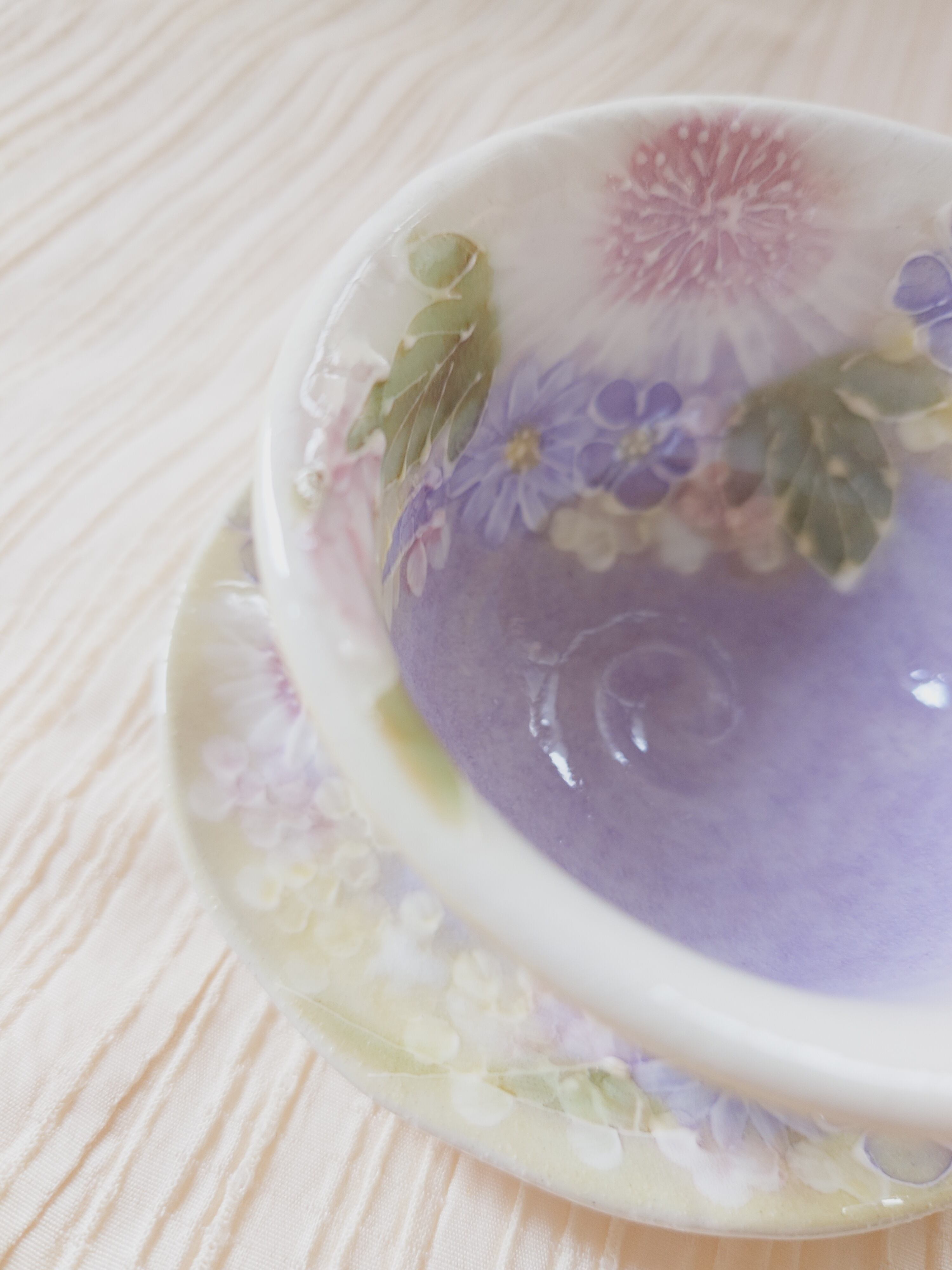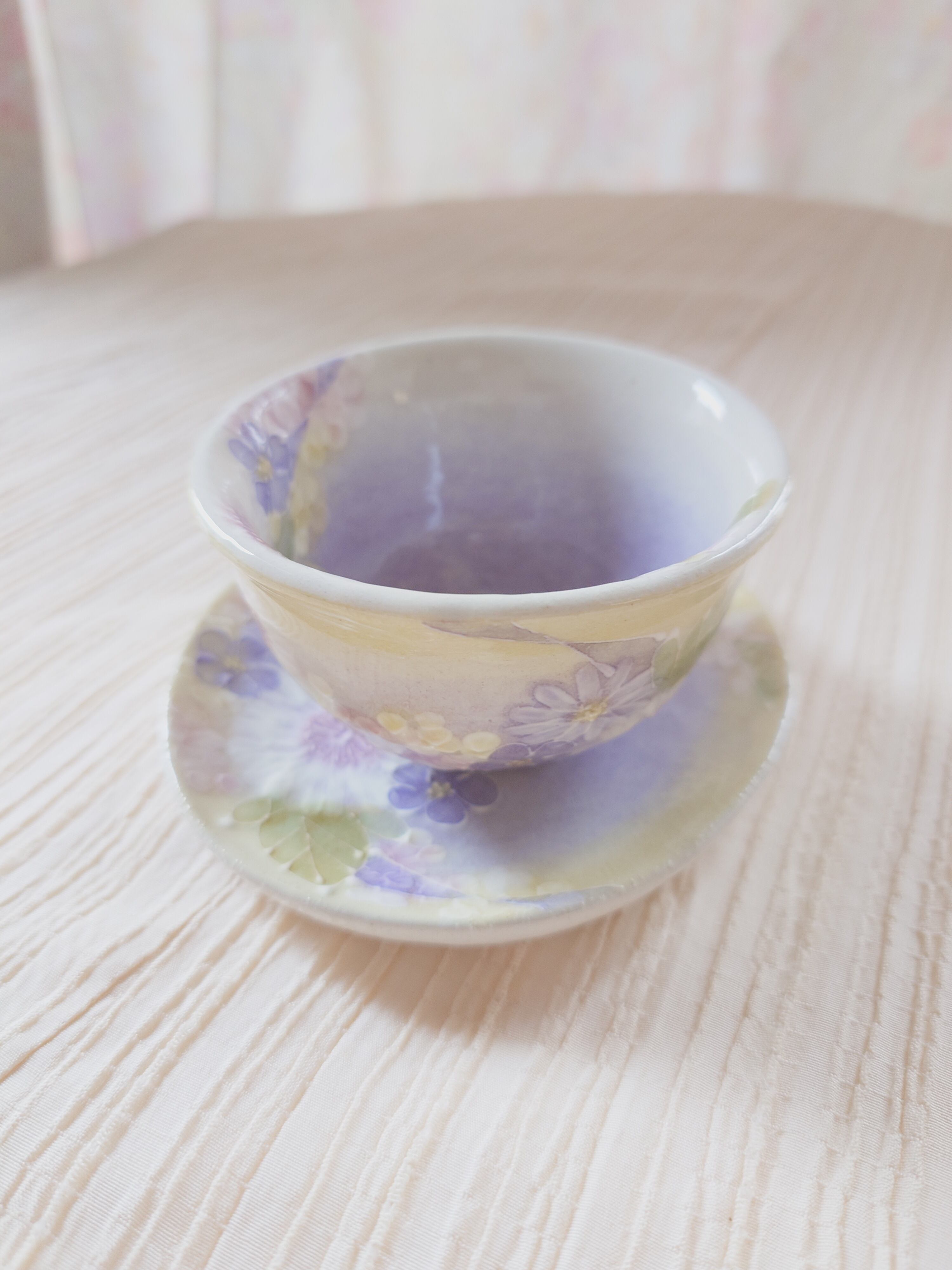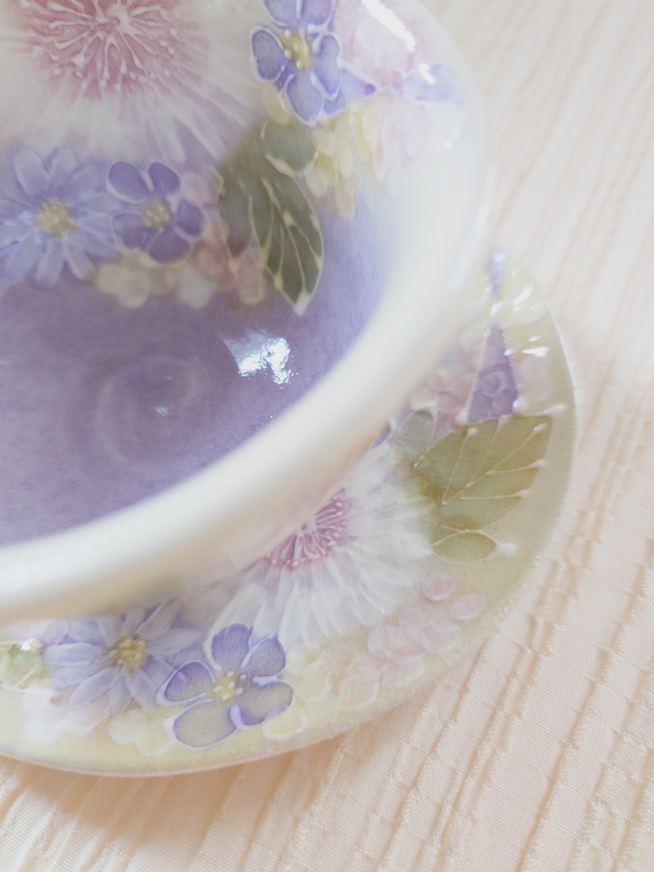 工房ゆずりは 茶菓セット 紫を主体にした華やかで落ち着いた上品な絵柄