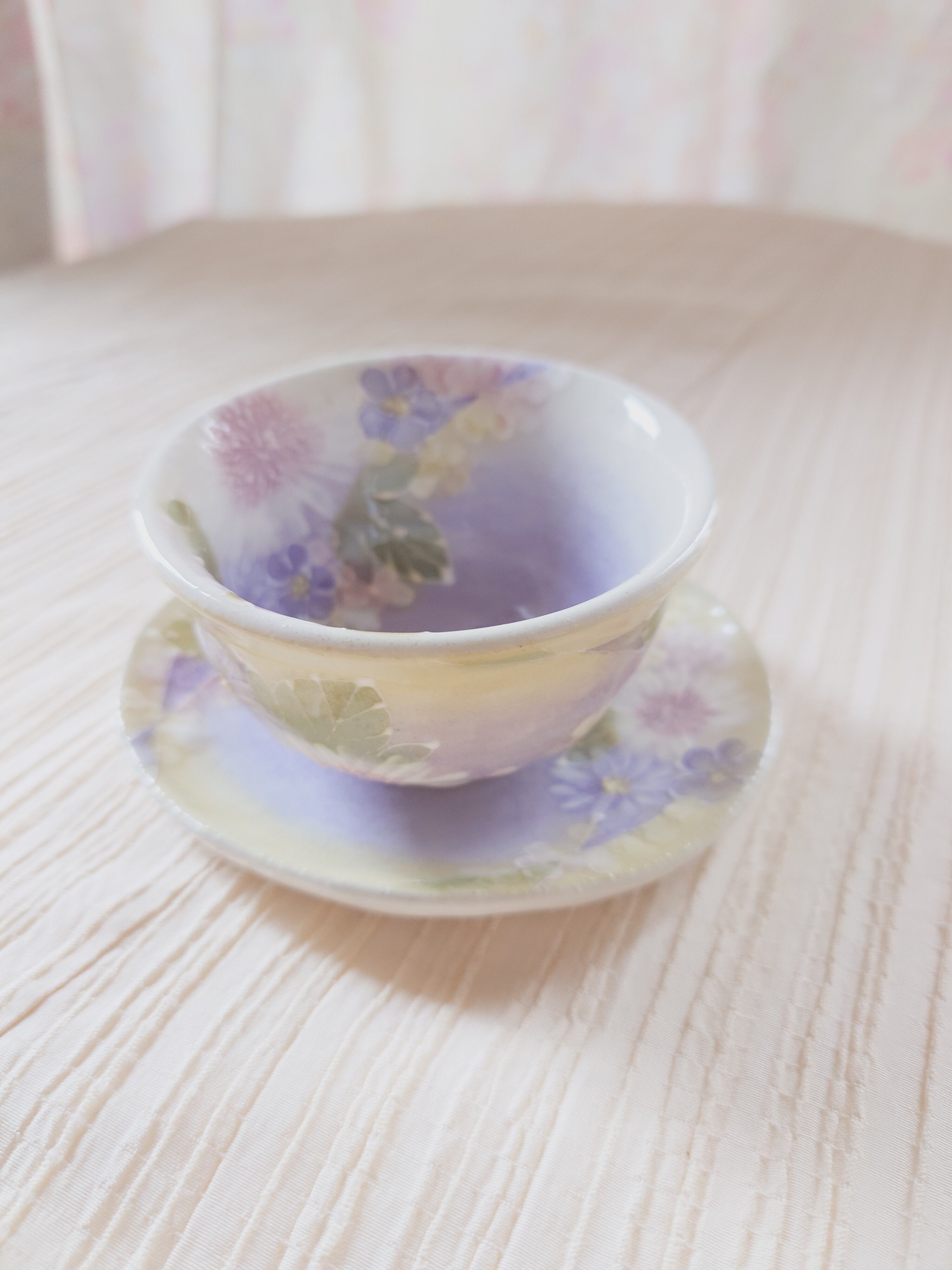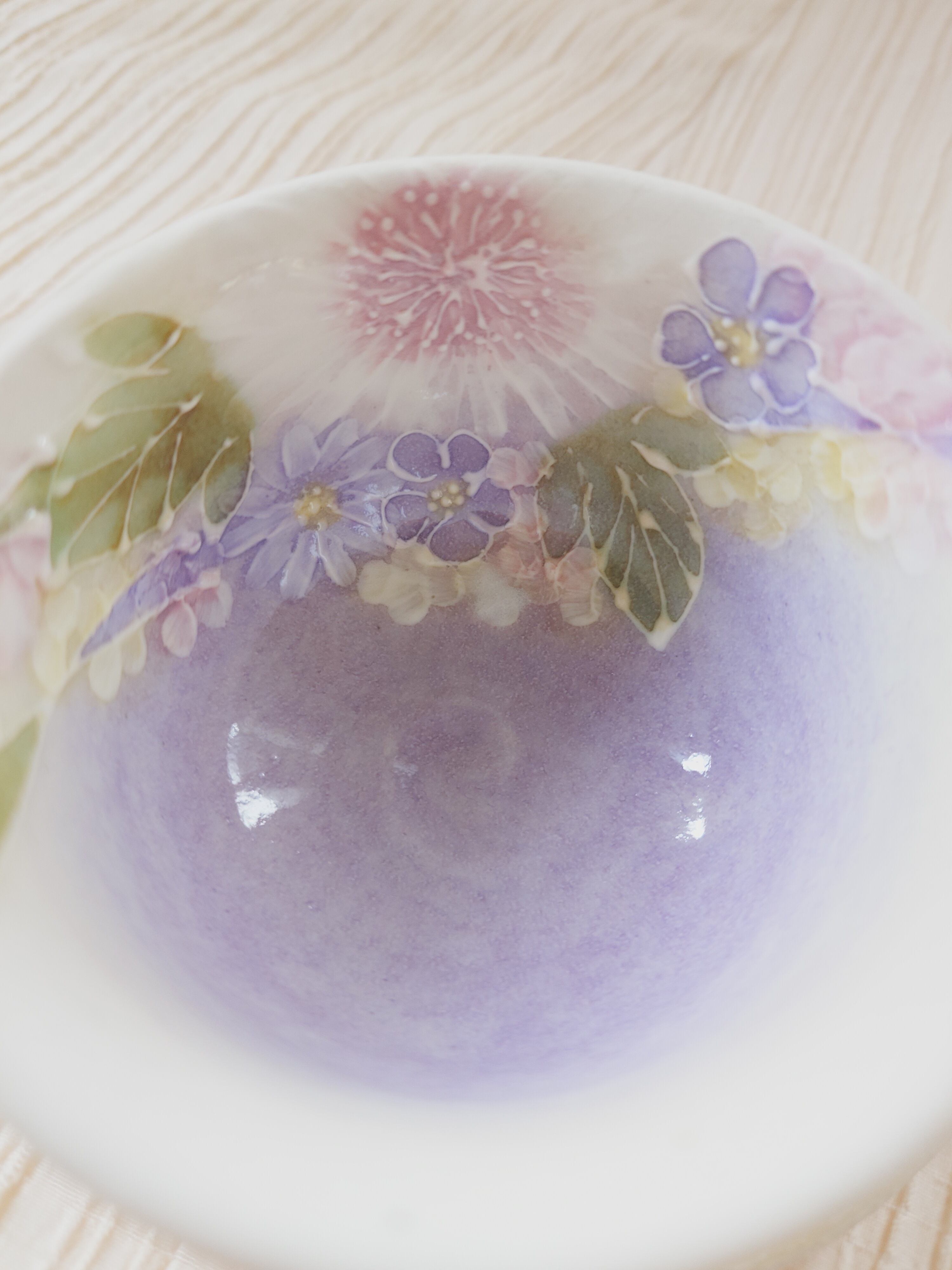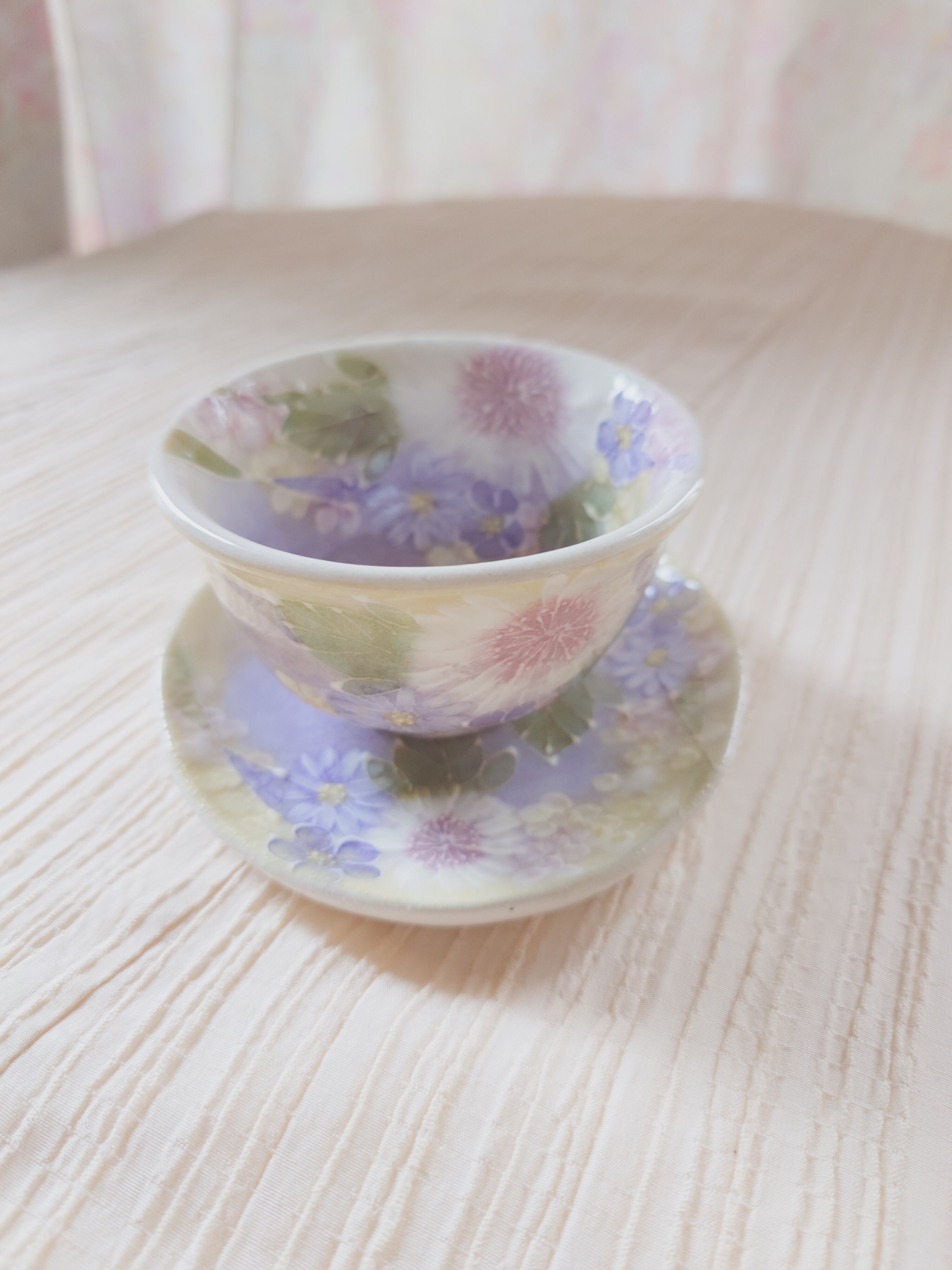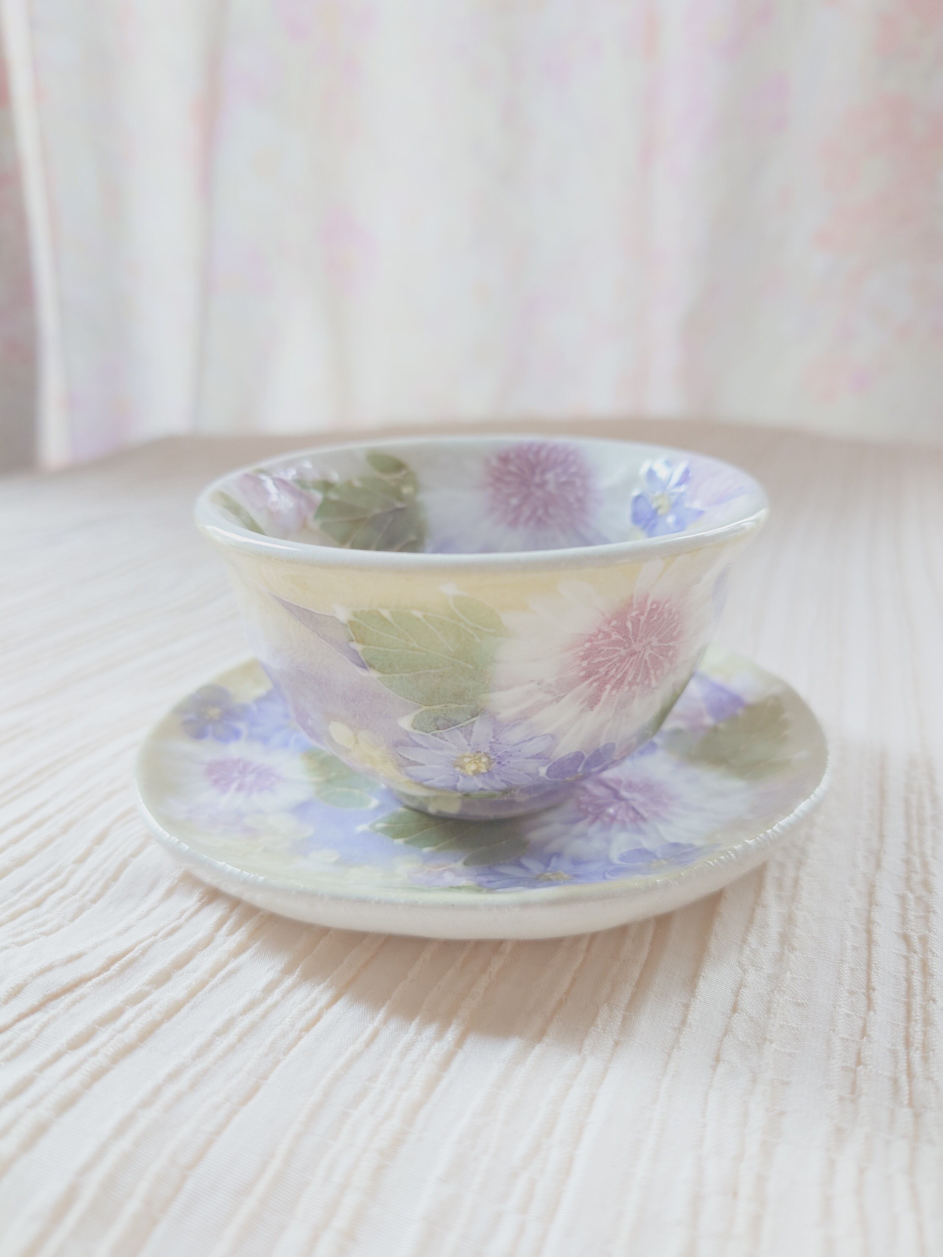 工房ゆずりは 茶菓セット 紫を主体にした華やかで落ち着いた上品な絵柄