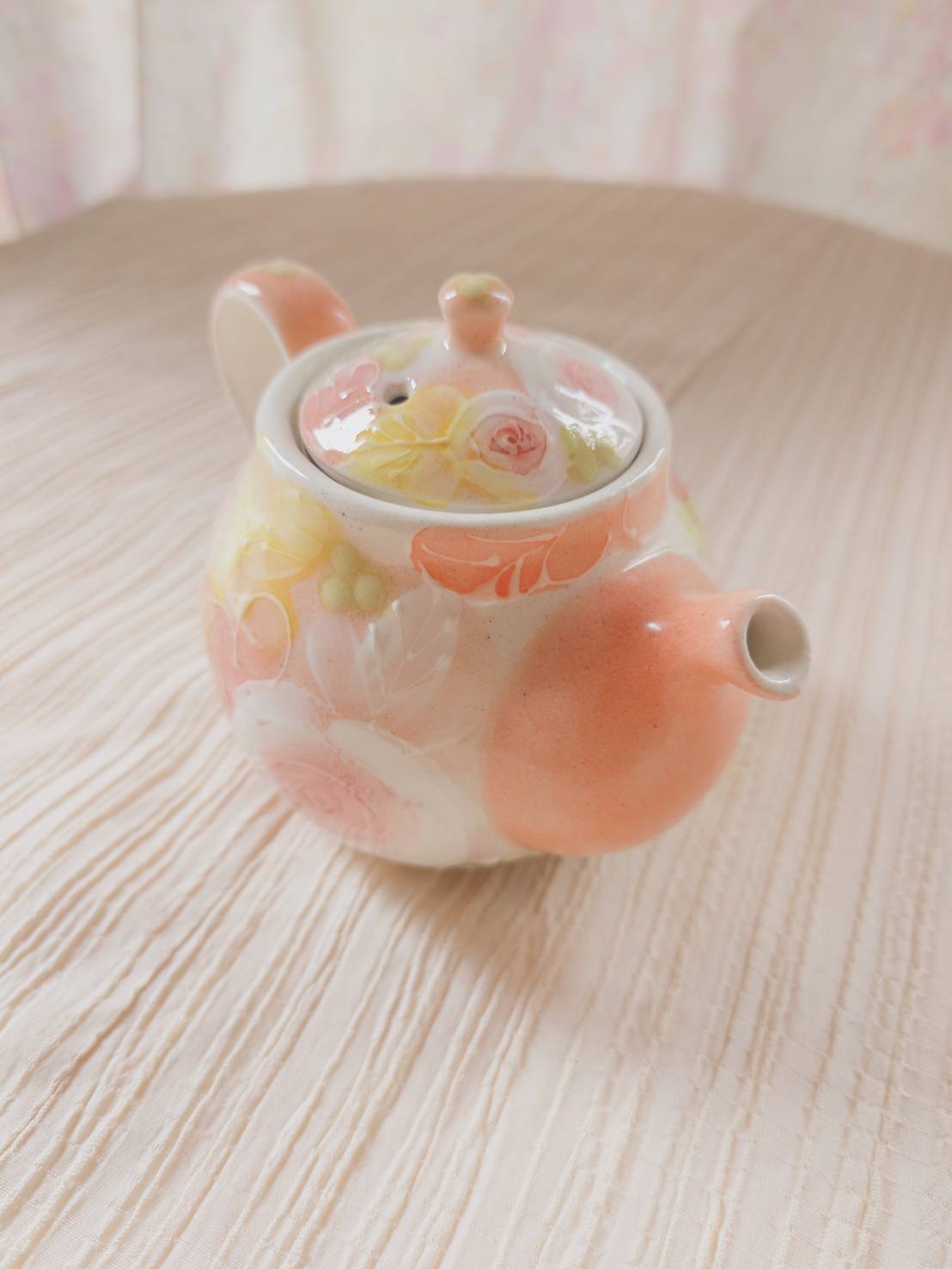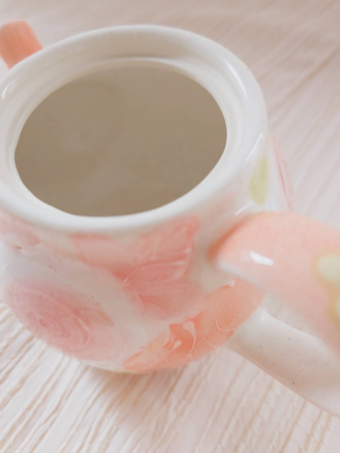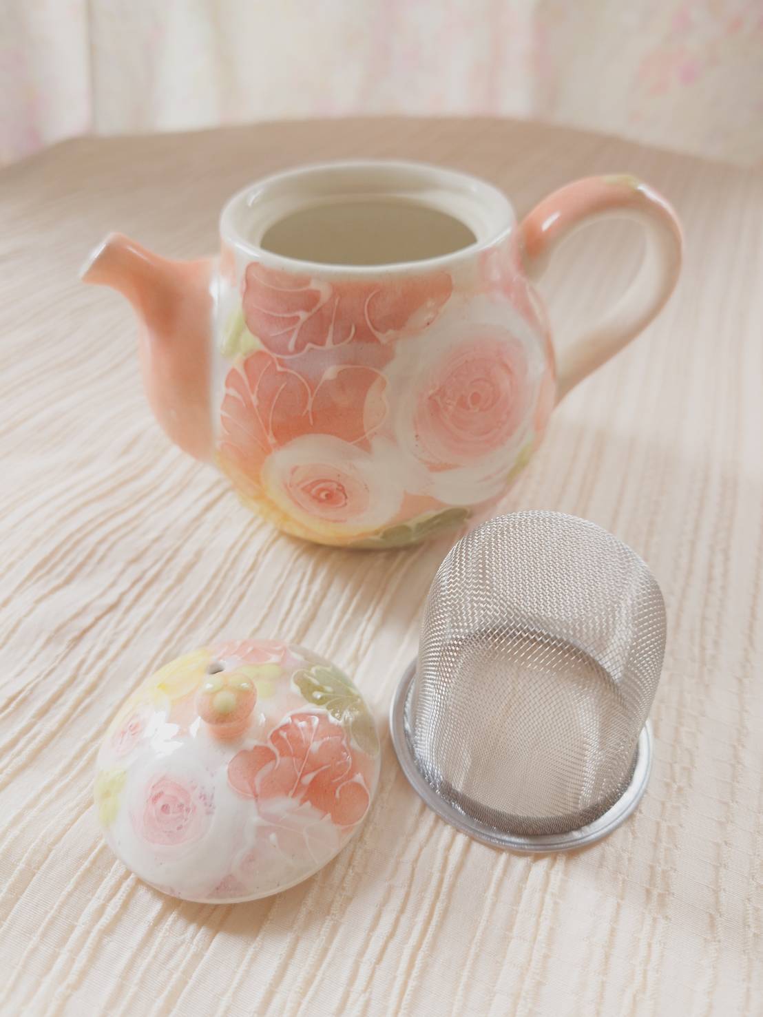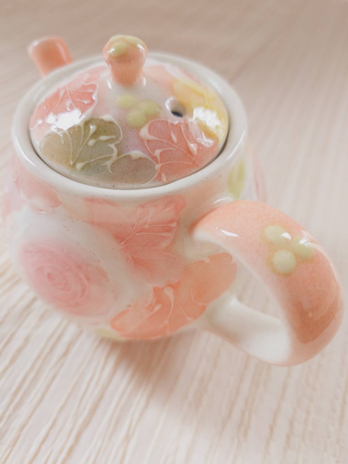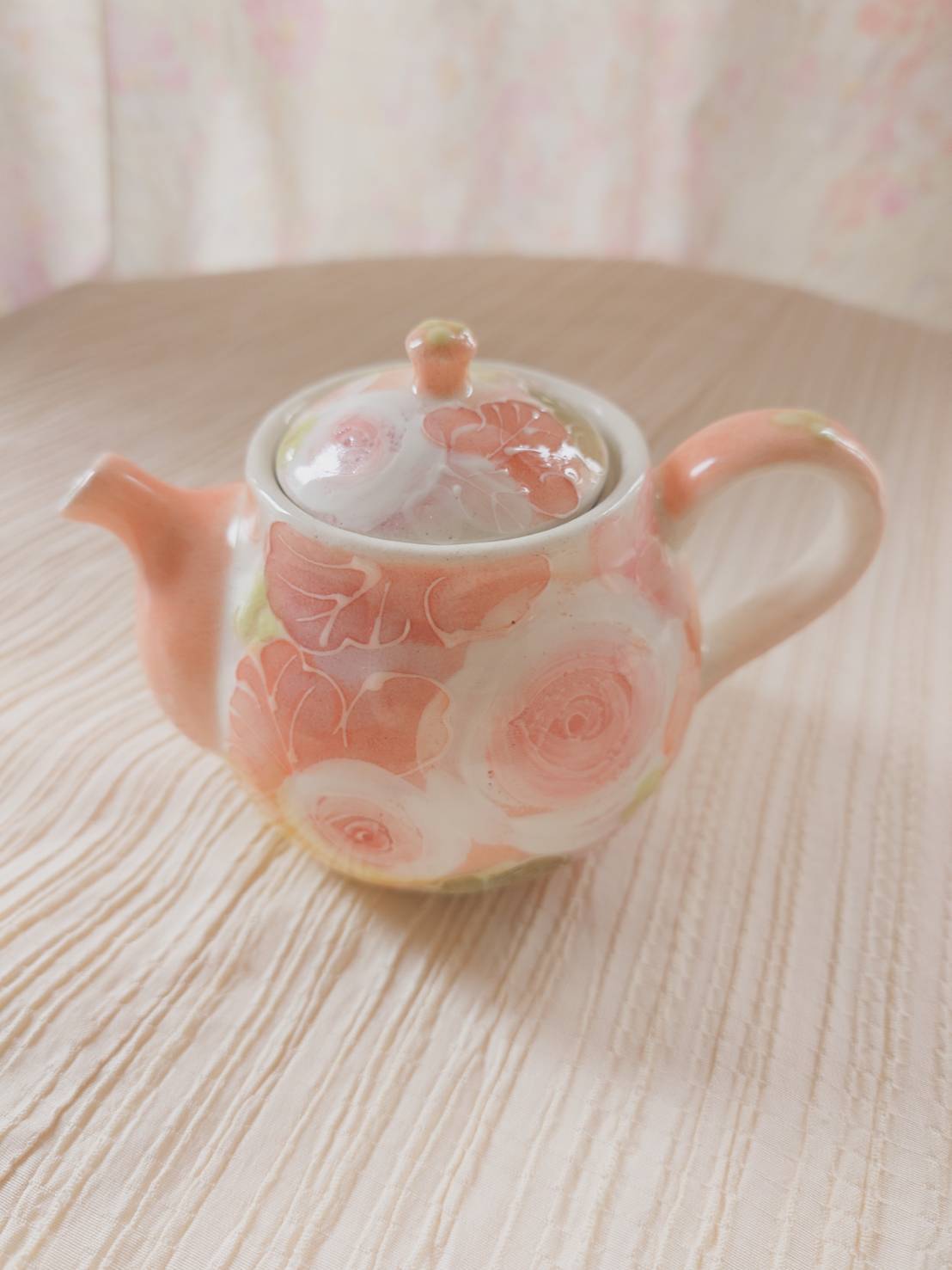 フォルメされたピンクの薔薇が綺麗な雰囲気のポット