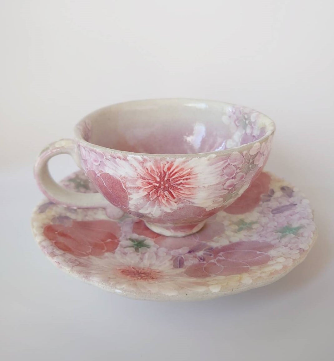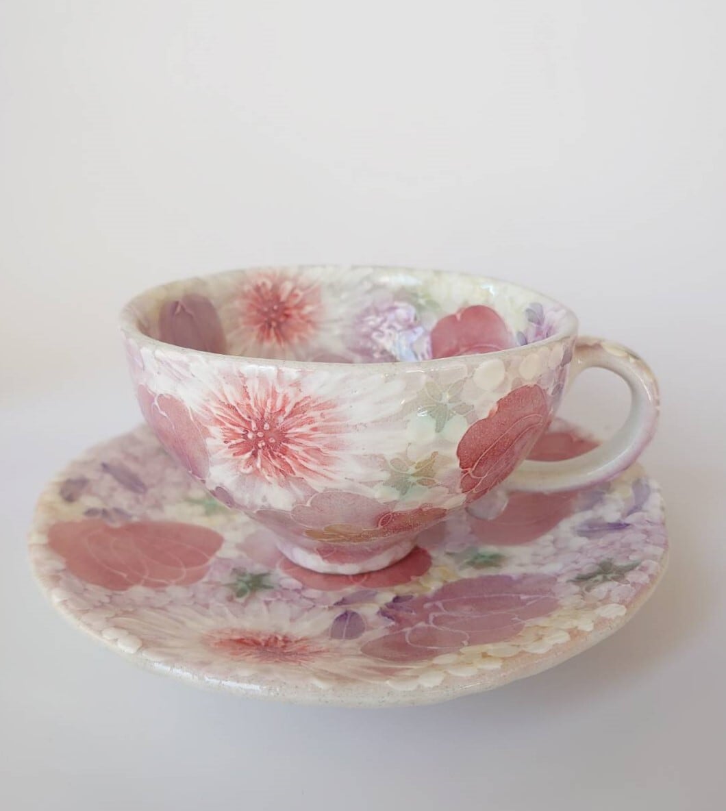 工房ゆずりは カップ&ソーサー 薄紅色絵花 44013