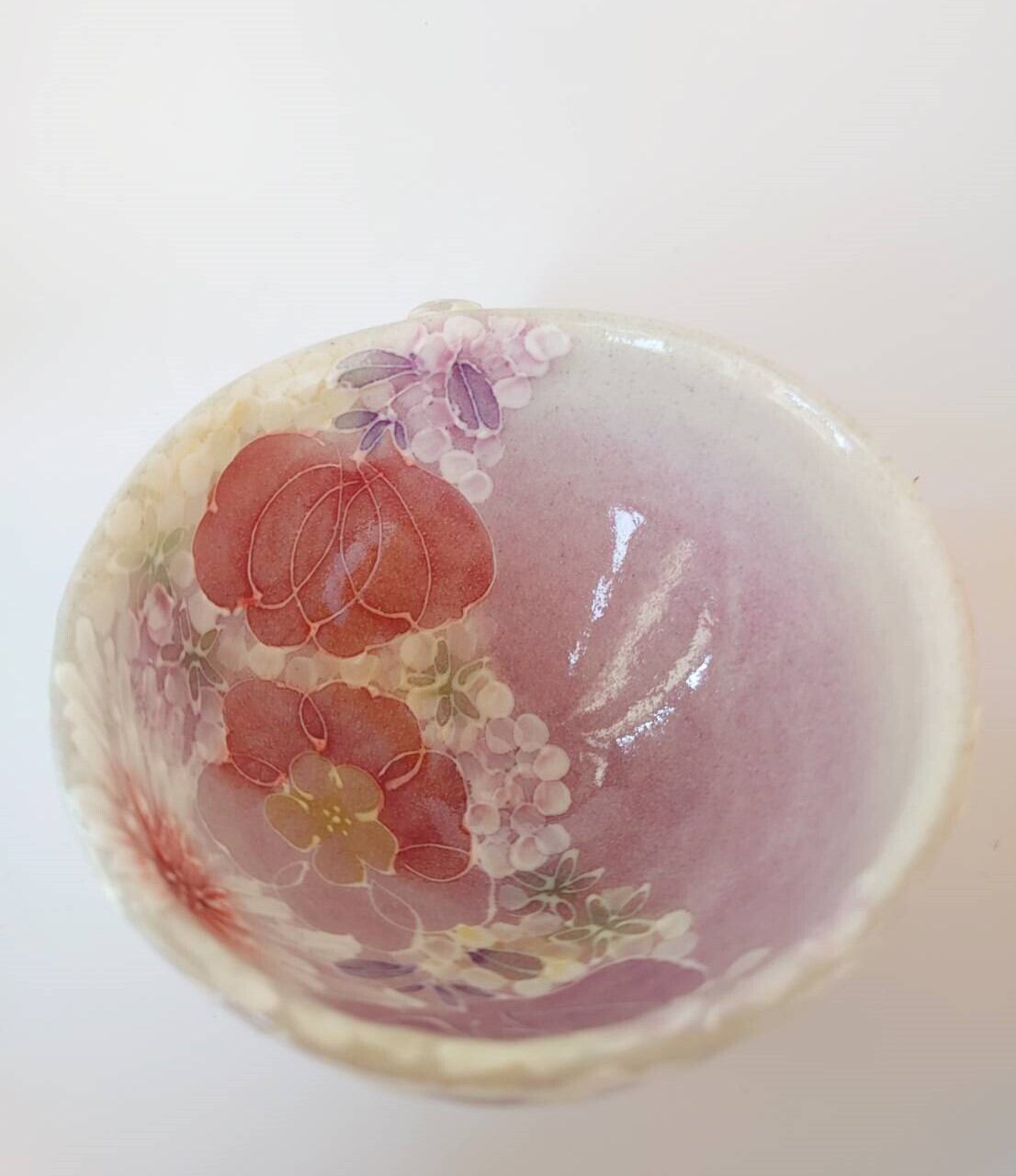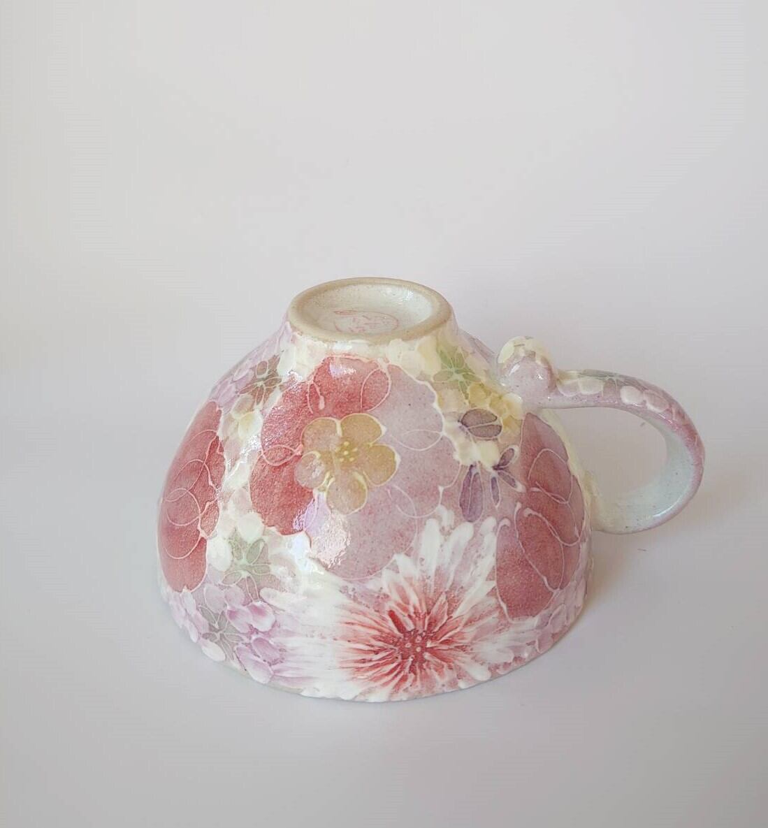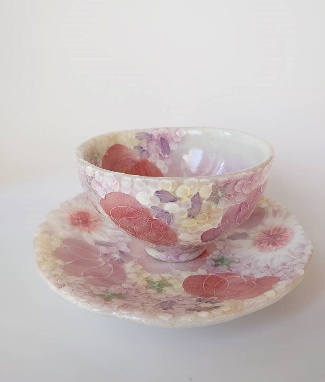 工房ゆずりは カップ&ソーサー 紅色や赤紫系の花柄と繊細な白い花が印象的 薄紅色絵花 44013