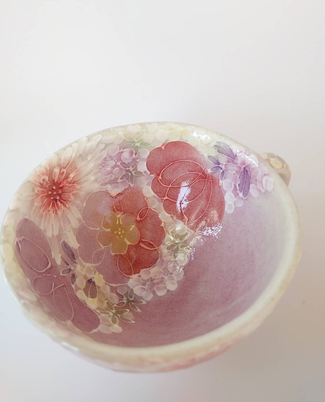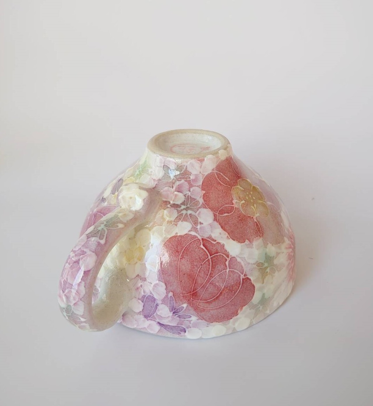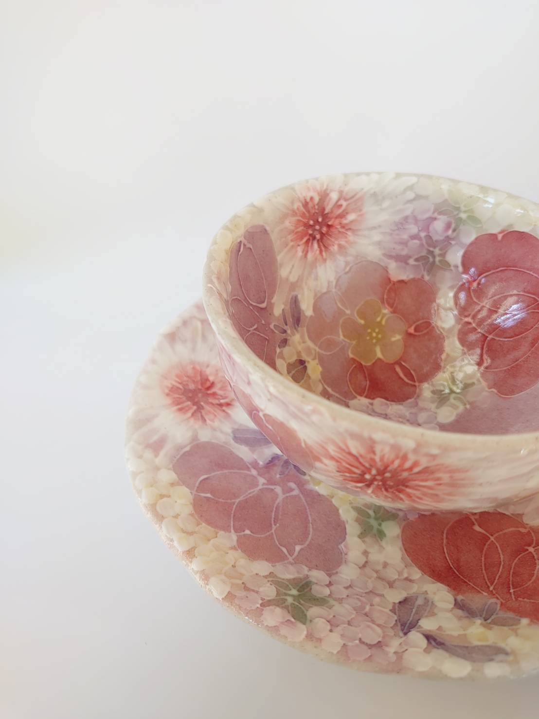 工房ゆずりは カップ&ソーサー 紅色や赤紫系の花柄と繊細な白い花が印象的 薄紅色絵花 44013