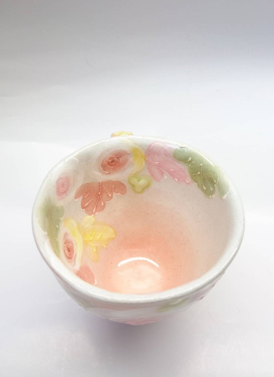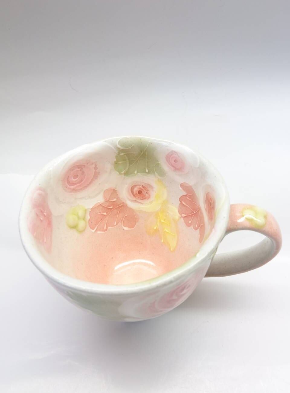 工房ゆずりは デフォルメされた白いバラがとても綺麗なマグカップ 釉彩ローズ27583