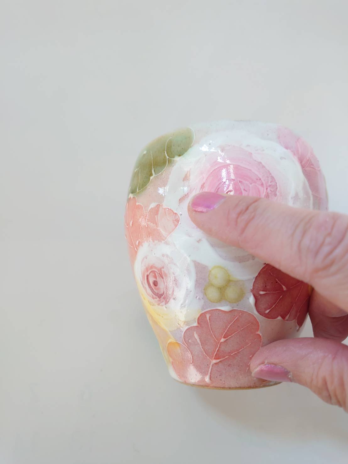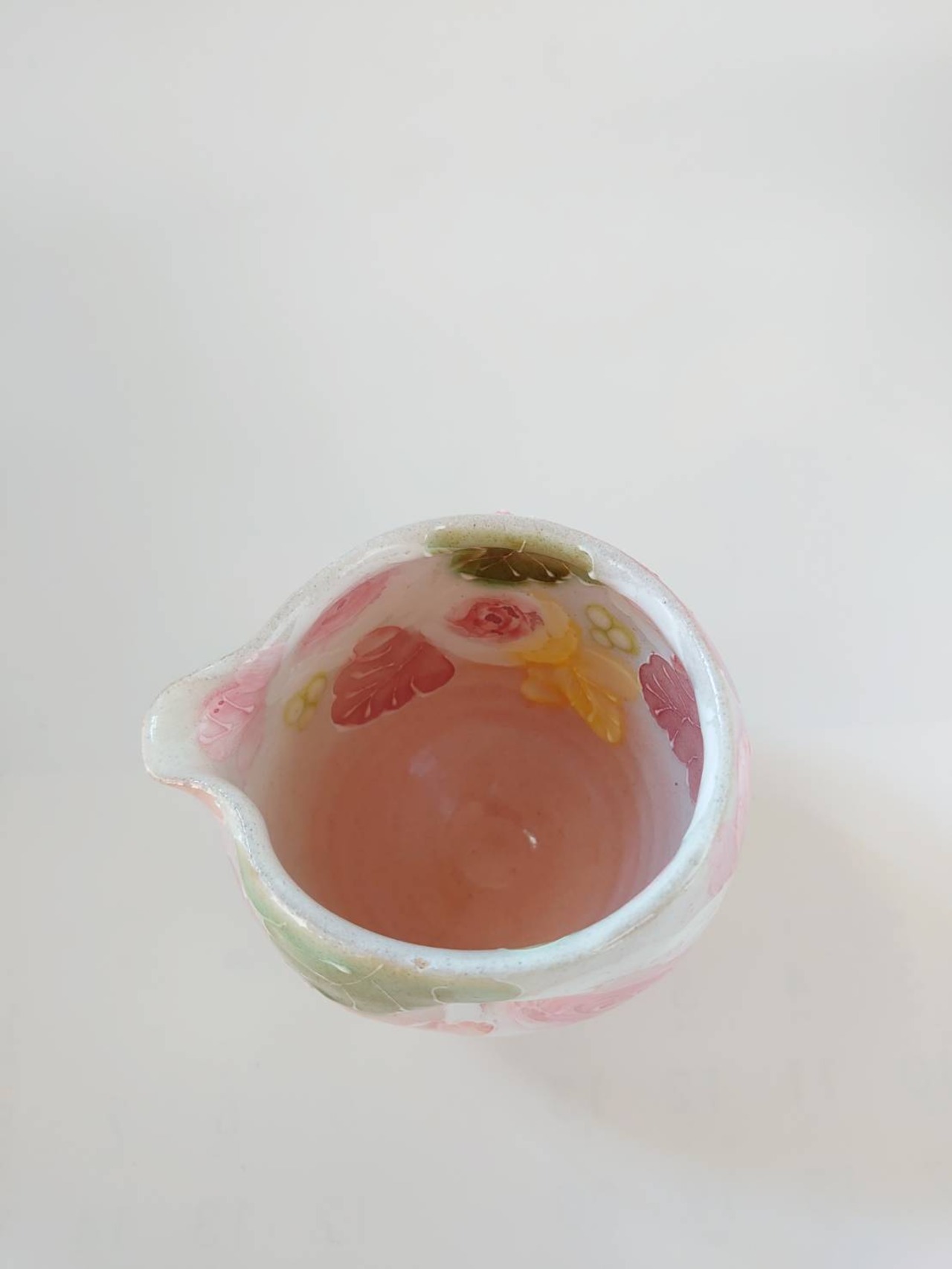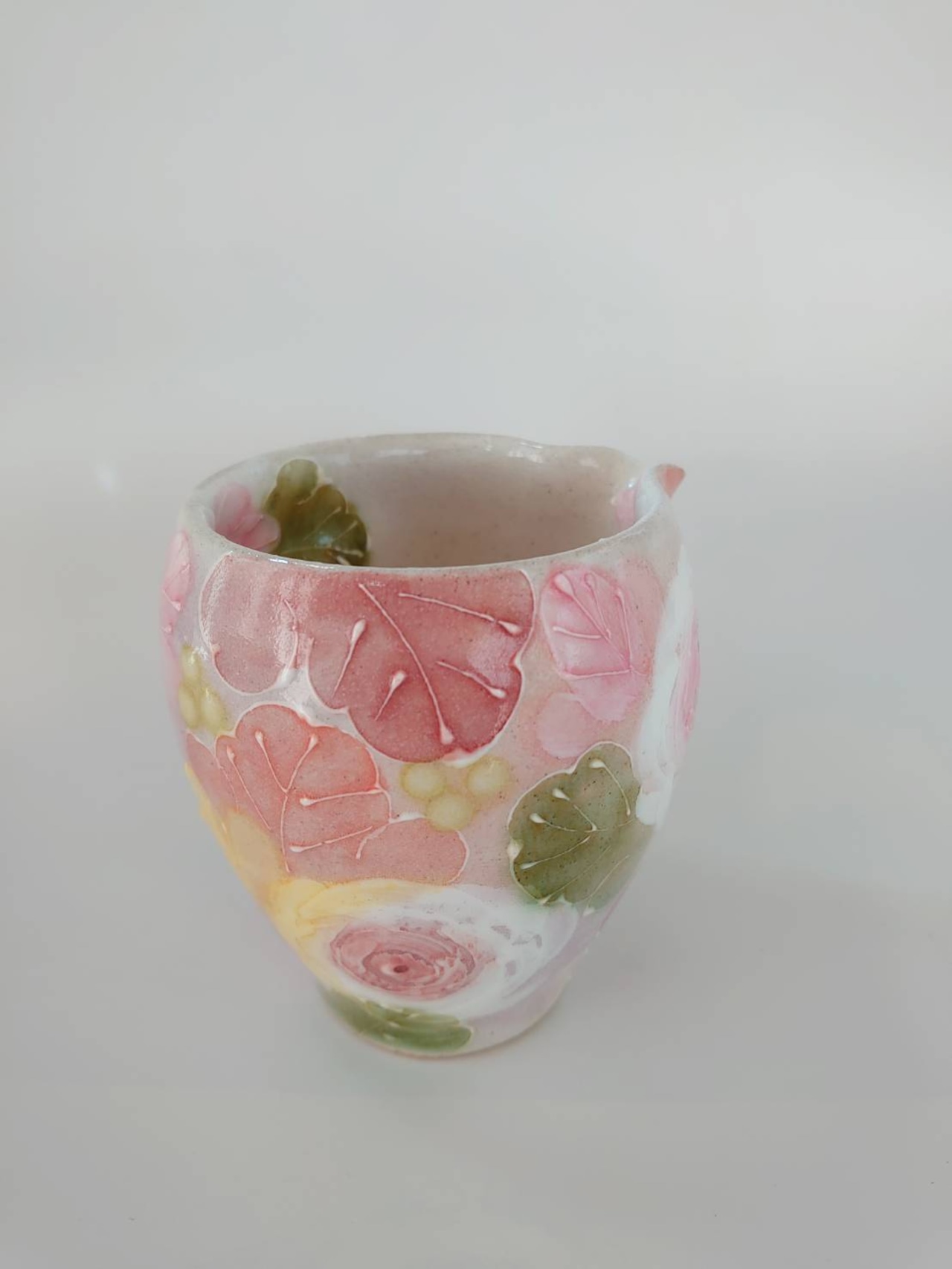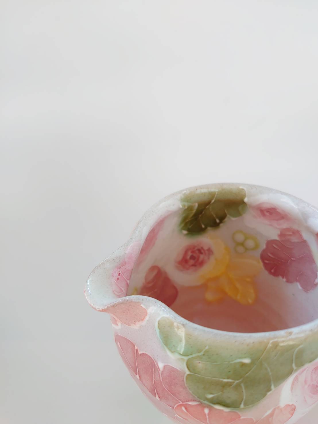 工房ゆずりは 片口 デフォルメされたピンクの薔薇が綺麗なうつわ 釉彩ローズ 46438