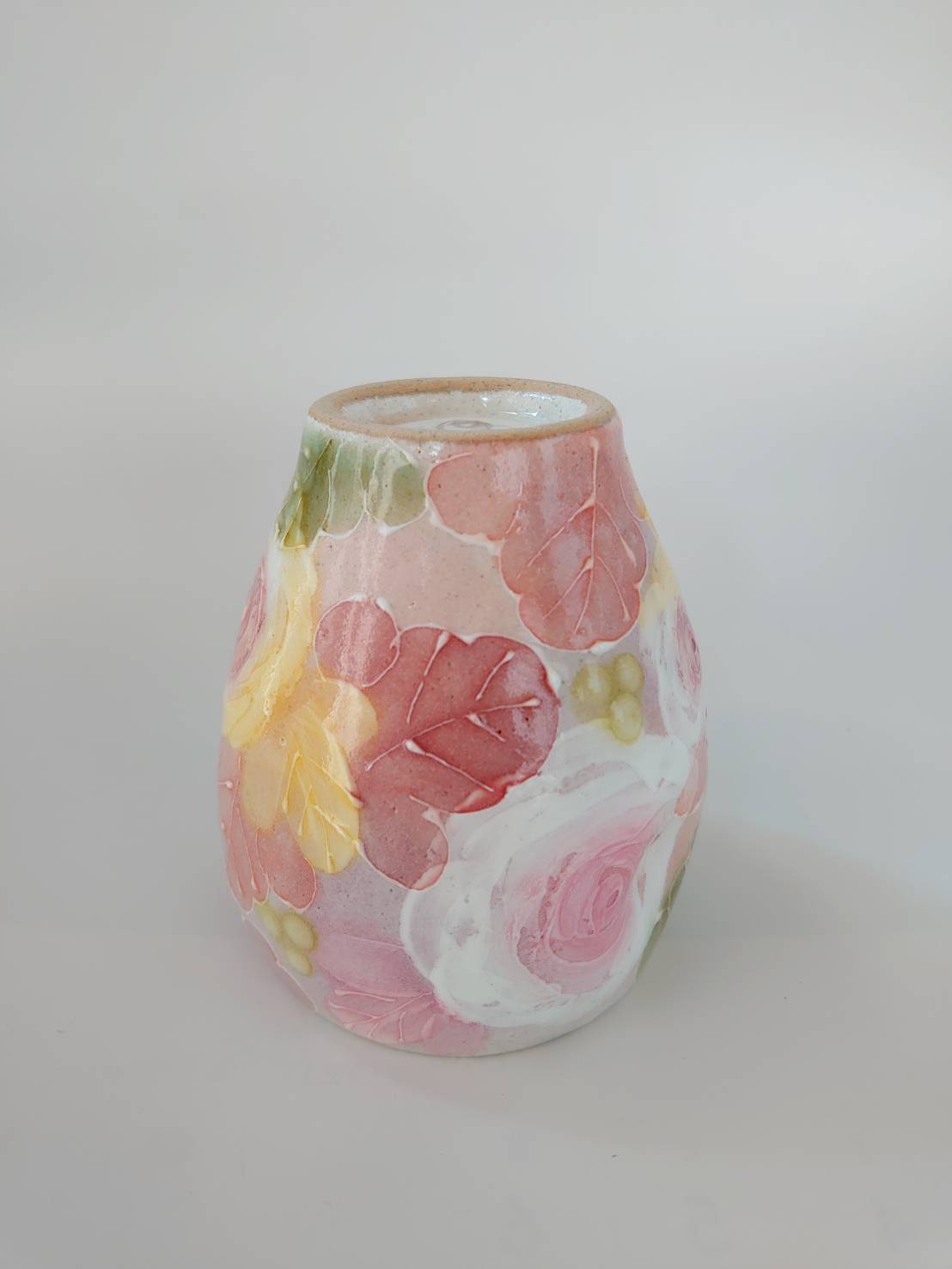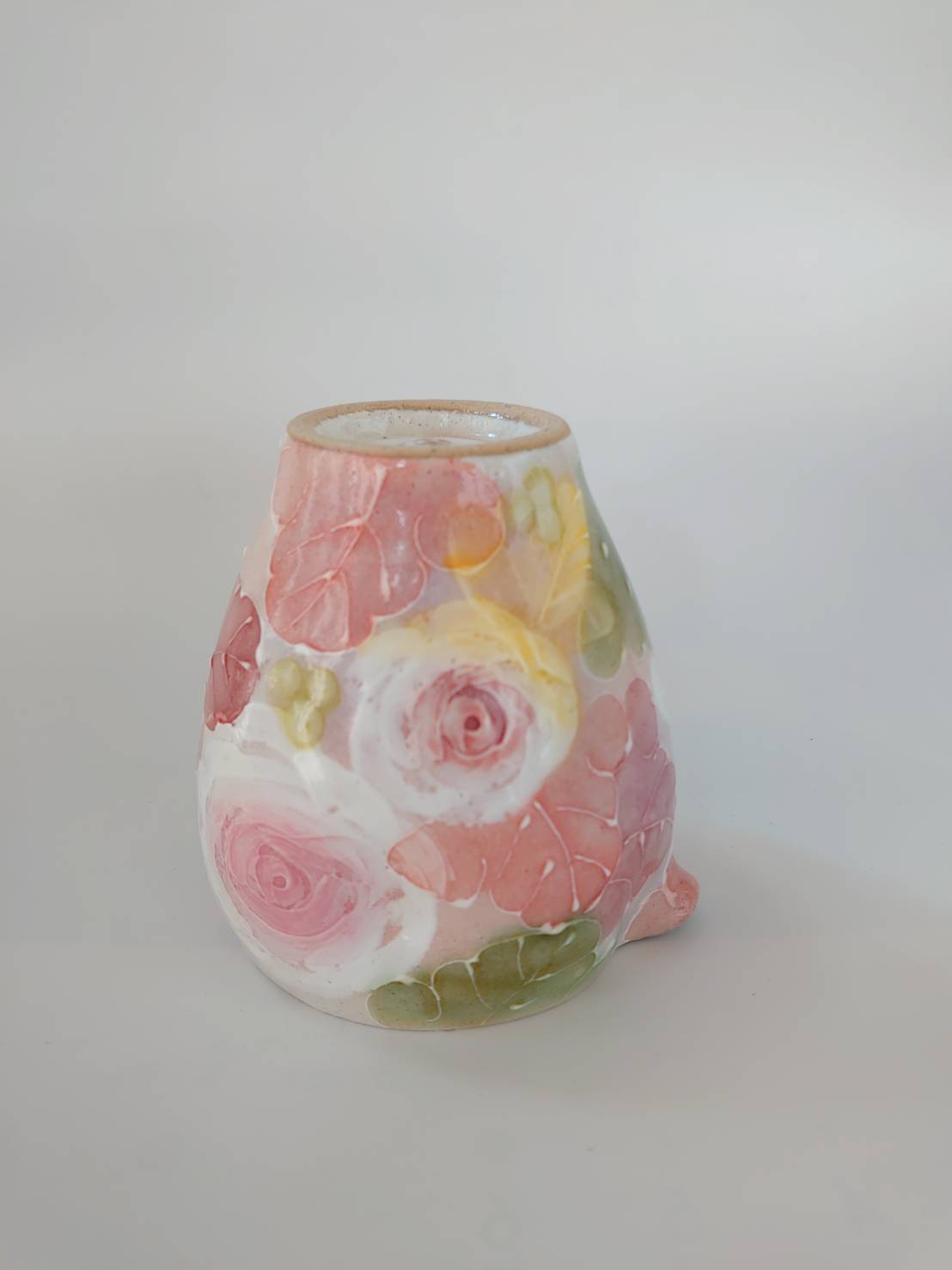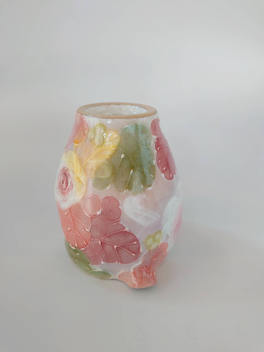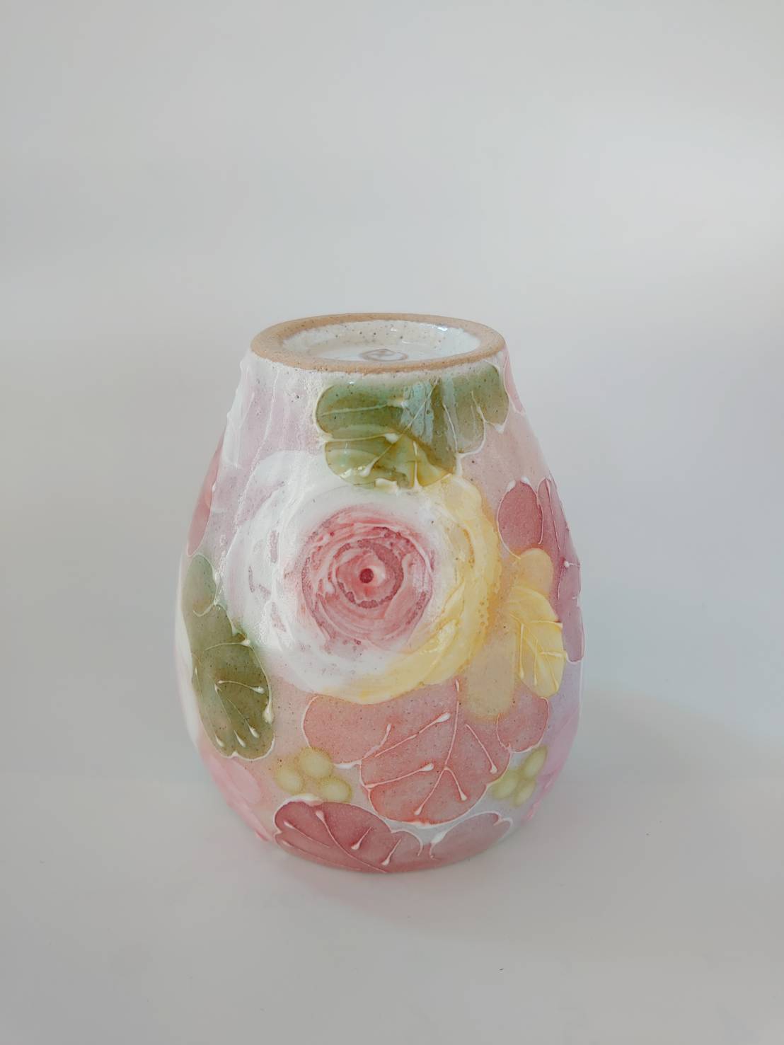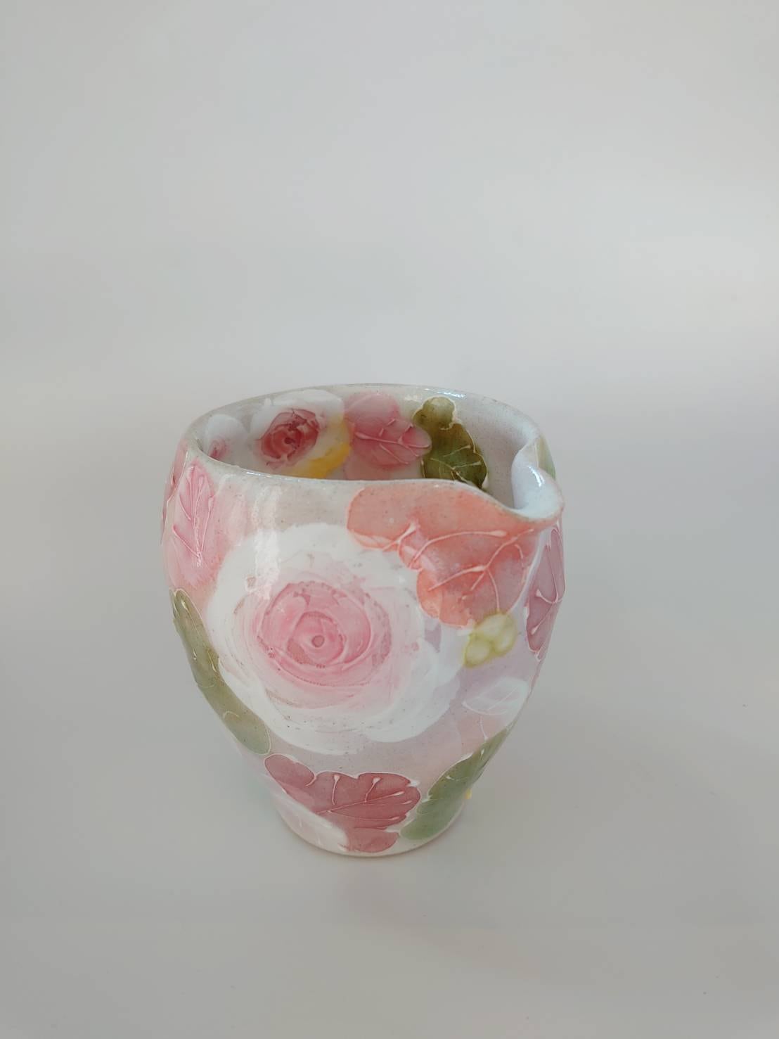 工房ゆずりは 片口 デフォルメされたピンクの薔薇が綺麗なうつわ 釉彩ローズ 46438