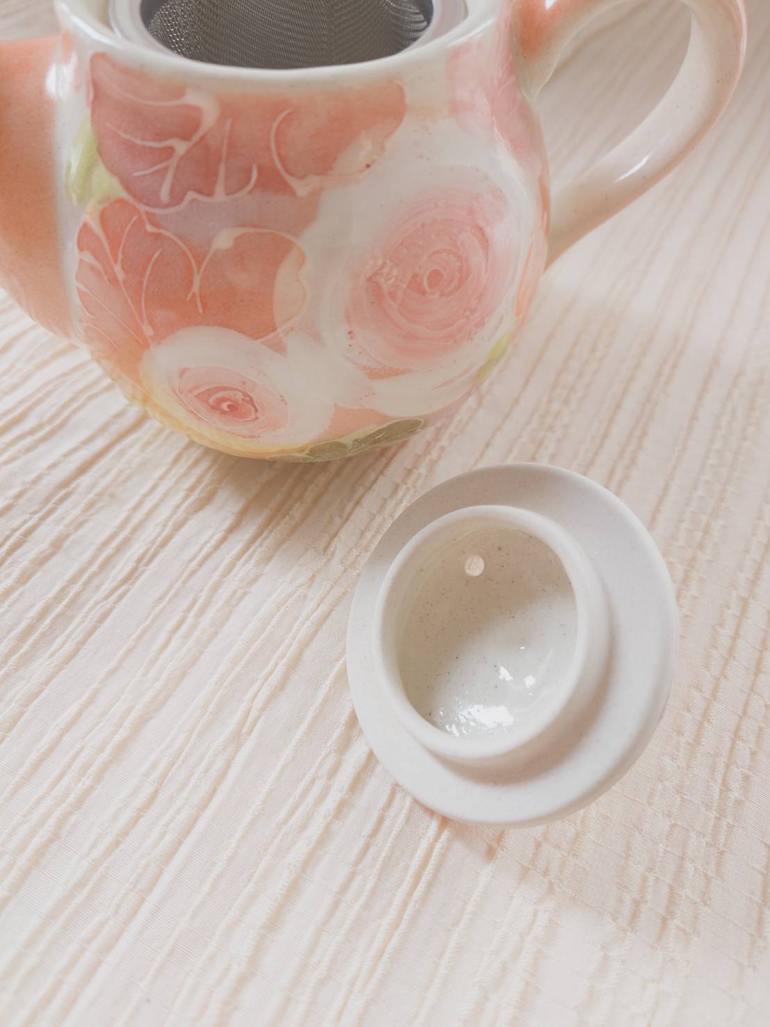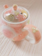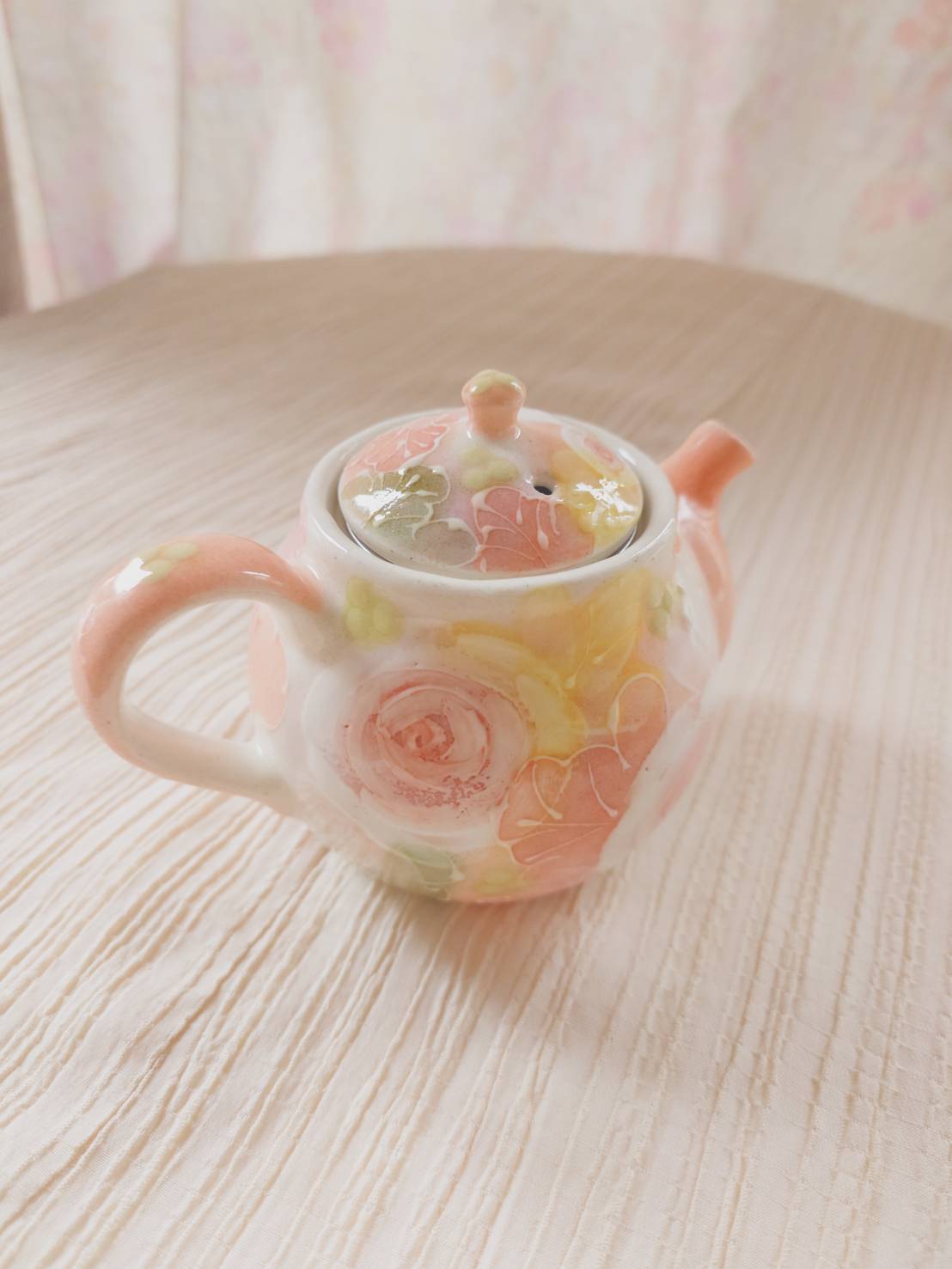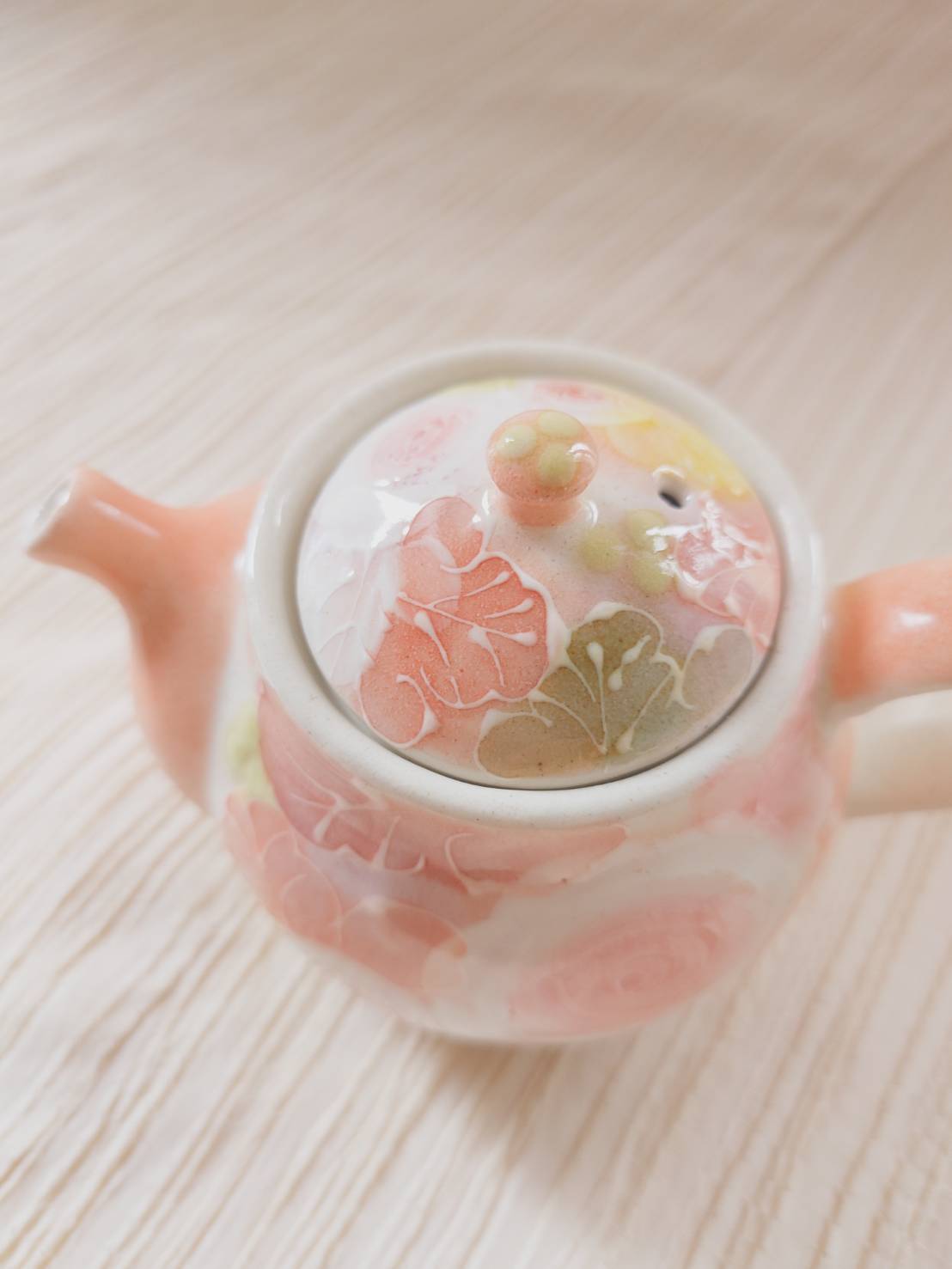 工房ゆずりは プチポットとぐい吞みセット デフォルメされたピンクの薔薇が綺麗なうつわ 釉彩ローズ プチポット1個ぐい吞み大2個