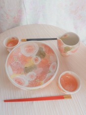 工房ゆずりは 預け鉢・片口・ぐい吞み大2個 釉彩ローズ 46520