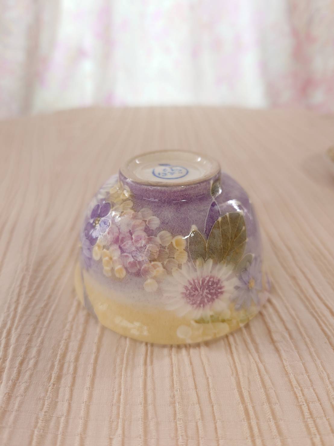 工房ゆずりは パスタ皿・茶菓セット2個・プチポット 紫を主体にした華やかで落ち着いた上品な絵柄 花かざり