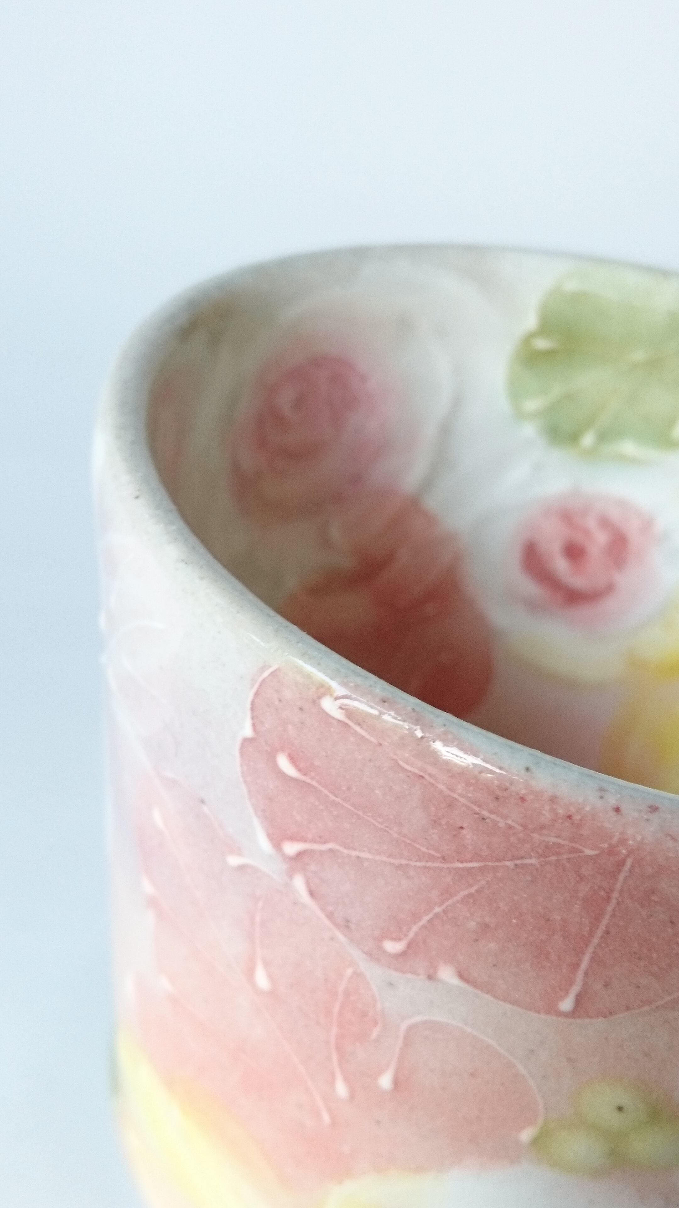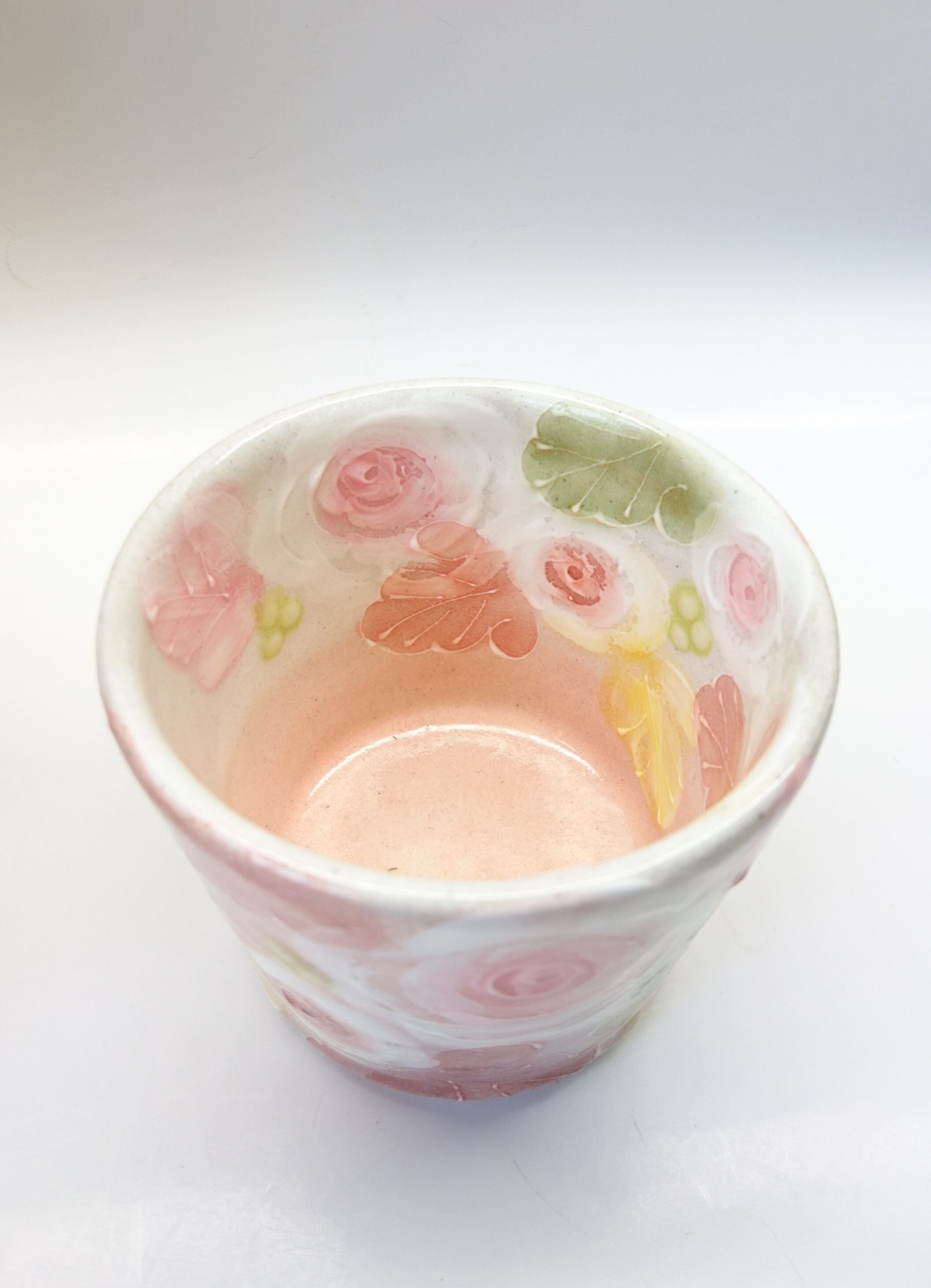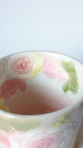 工房ゆずりは デフォルメされた薔薇がとても綺麗なピンク系の姫碗
