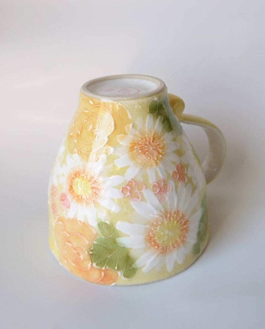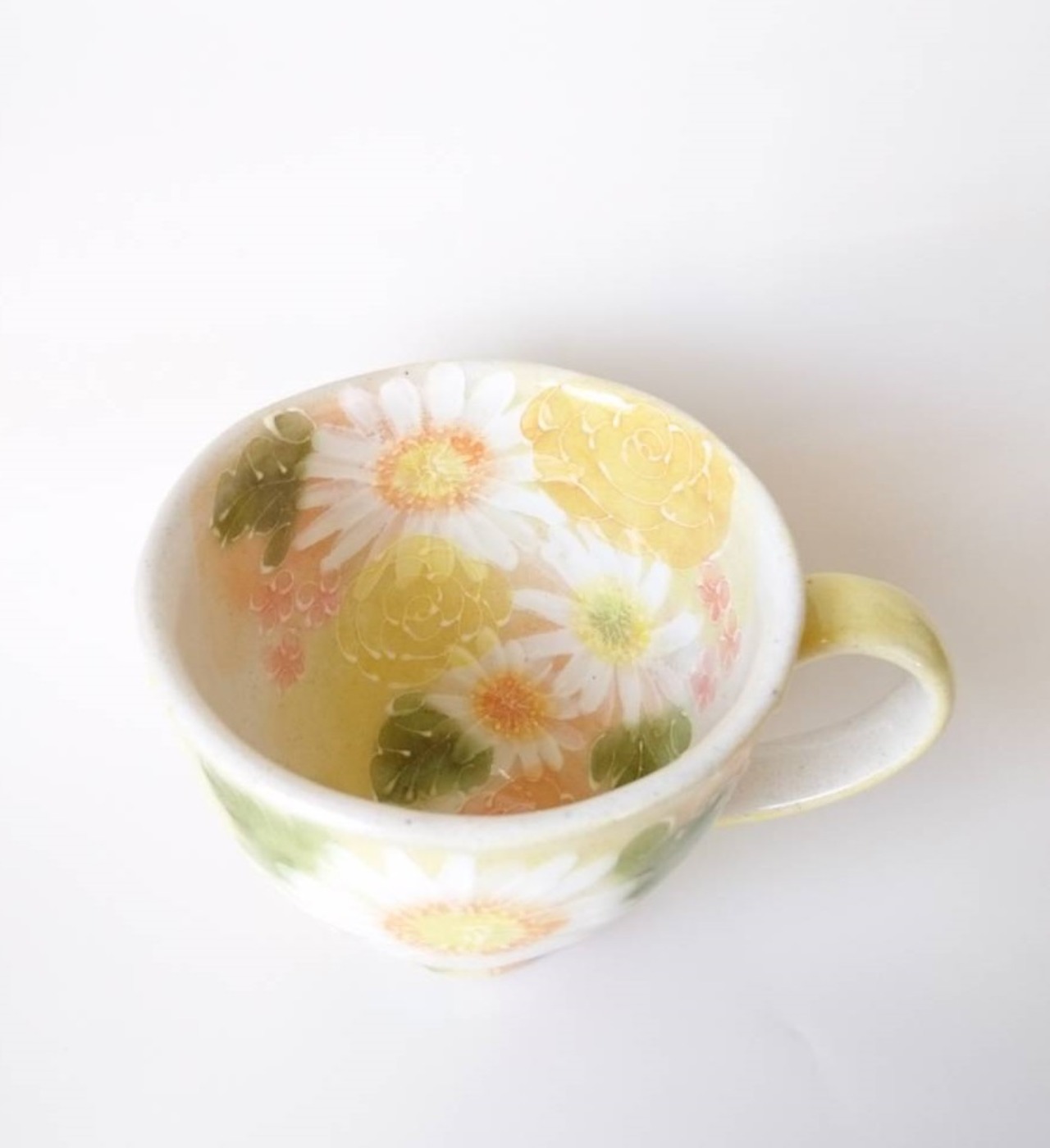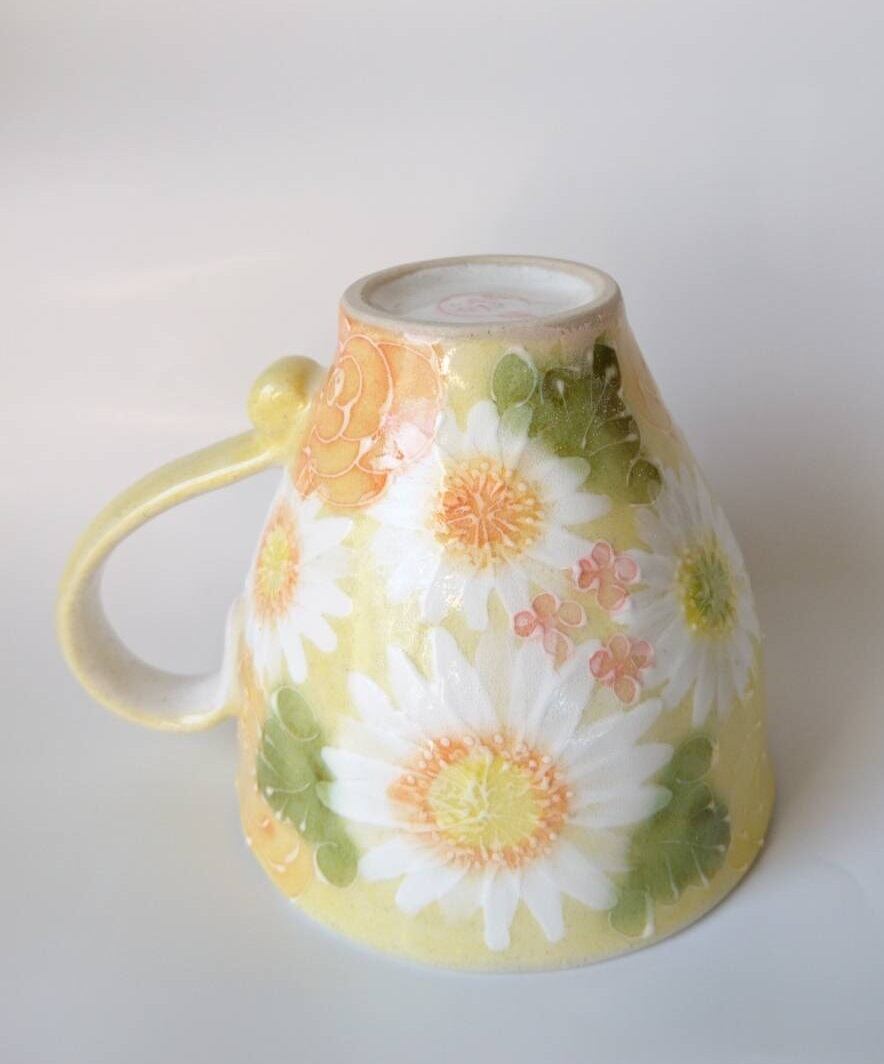工房ゆずりは 鮮やかな黄色に白い花が映えてとても綺麗です 43996 黄彩色絵花