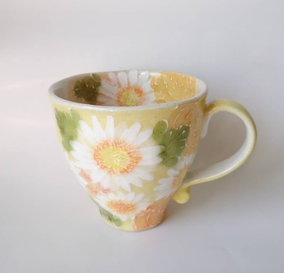 工房ゆずりは マグカップ 黄彩色絵花