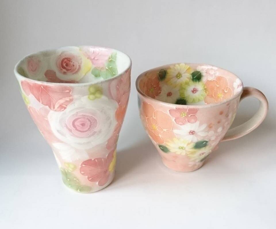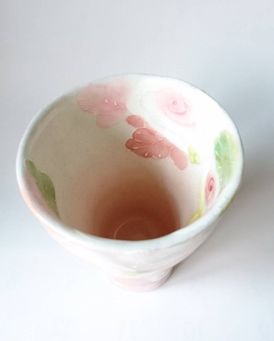 工房ゆずりは 釉彩ローズ 陶コップ(フリーカップ)