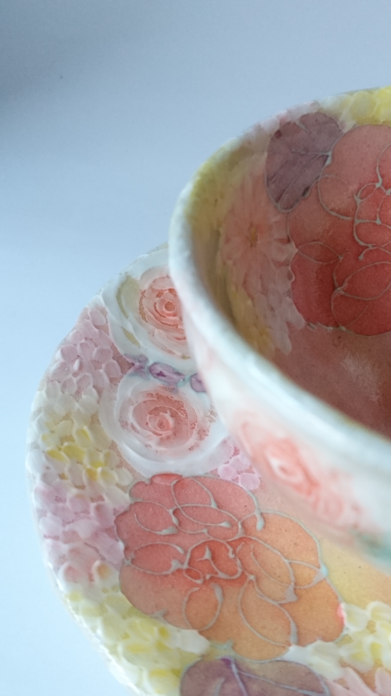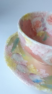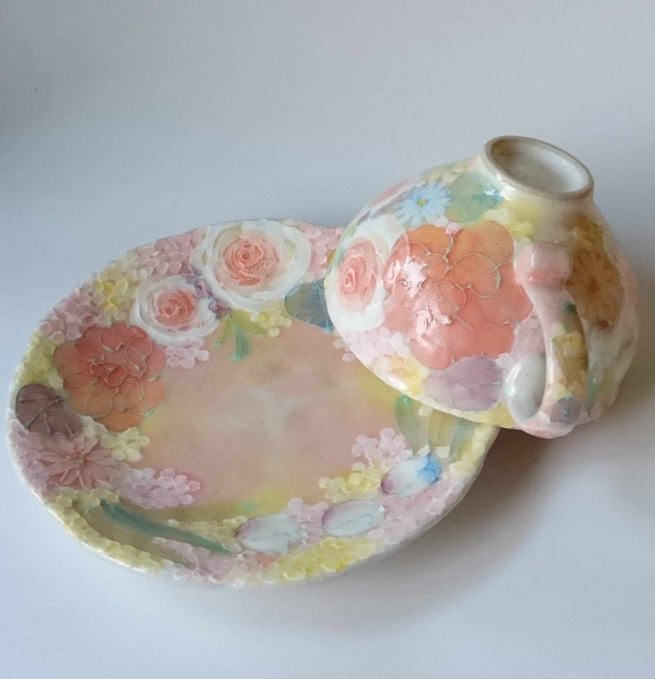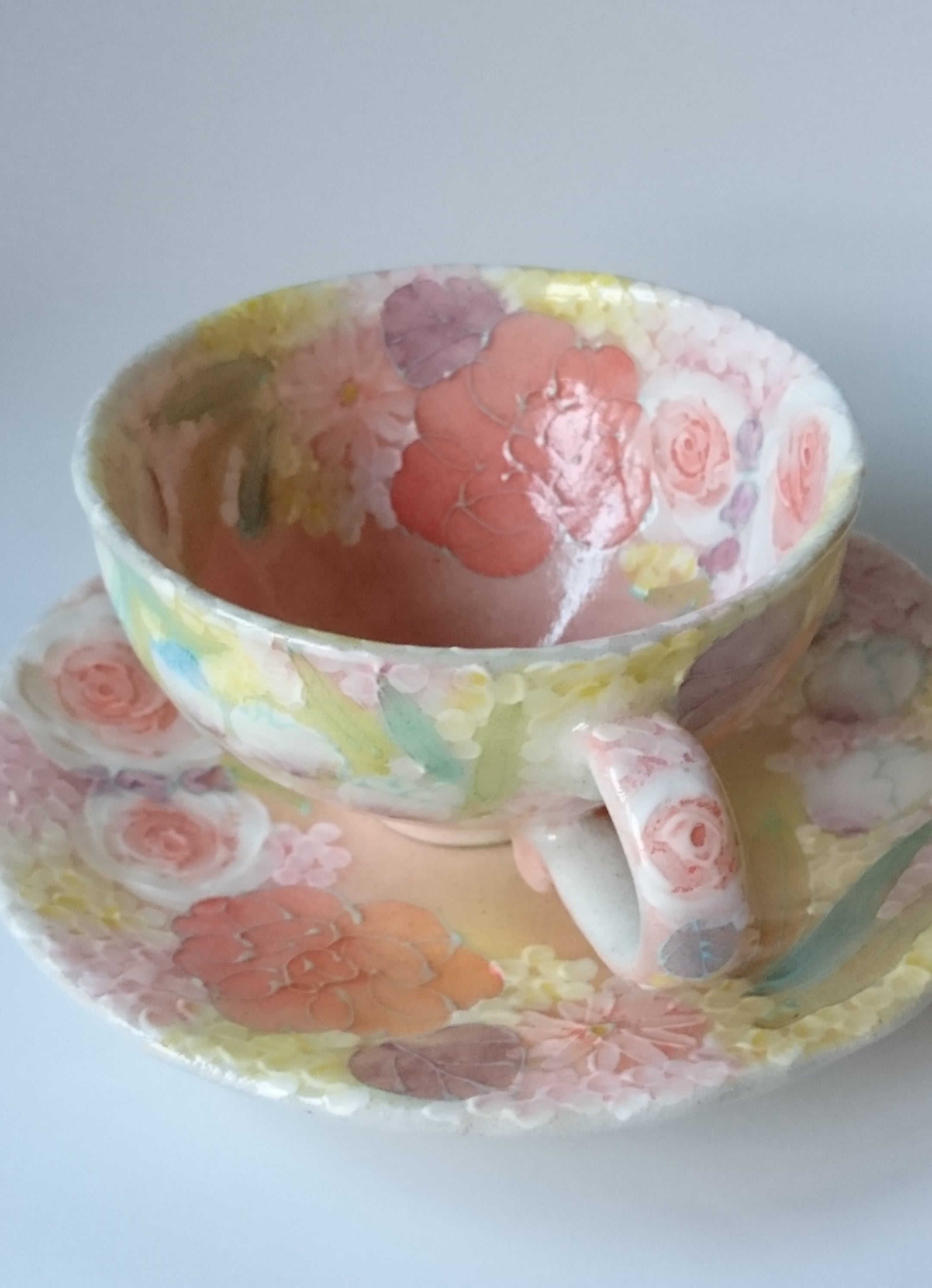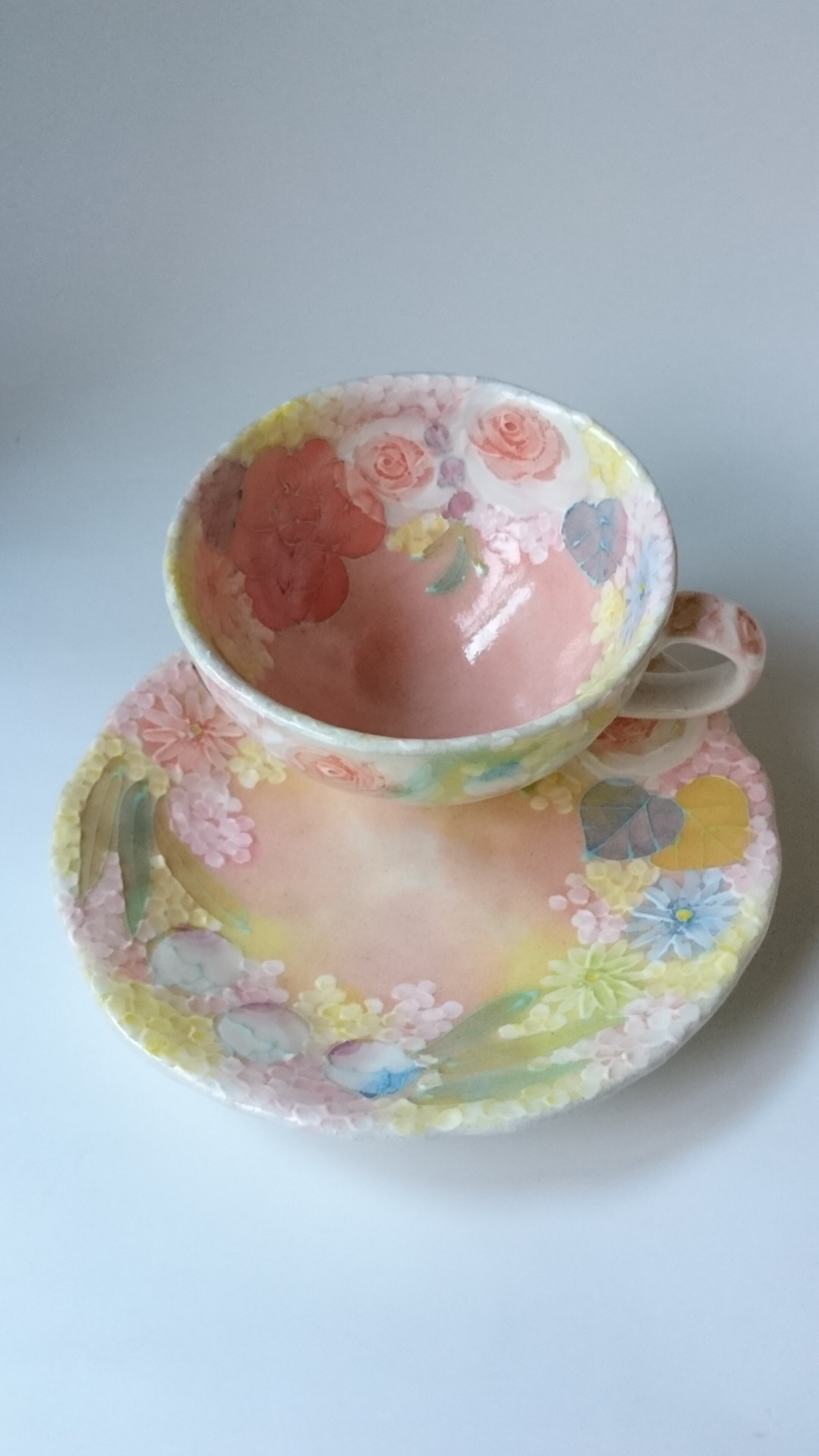 多色遣いで様々な花が描かれたカップ&ソーサー