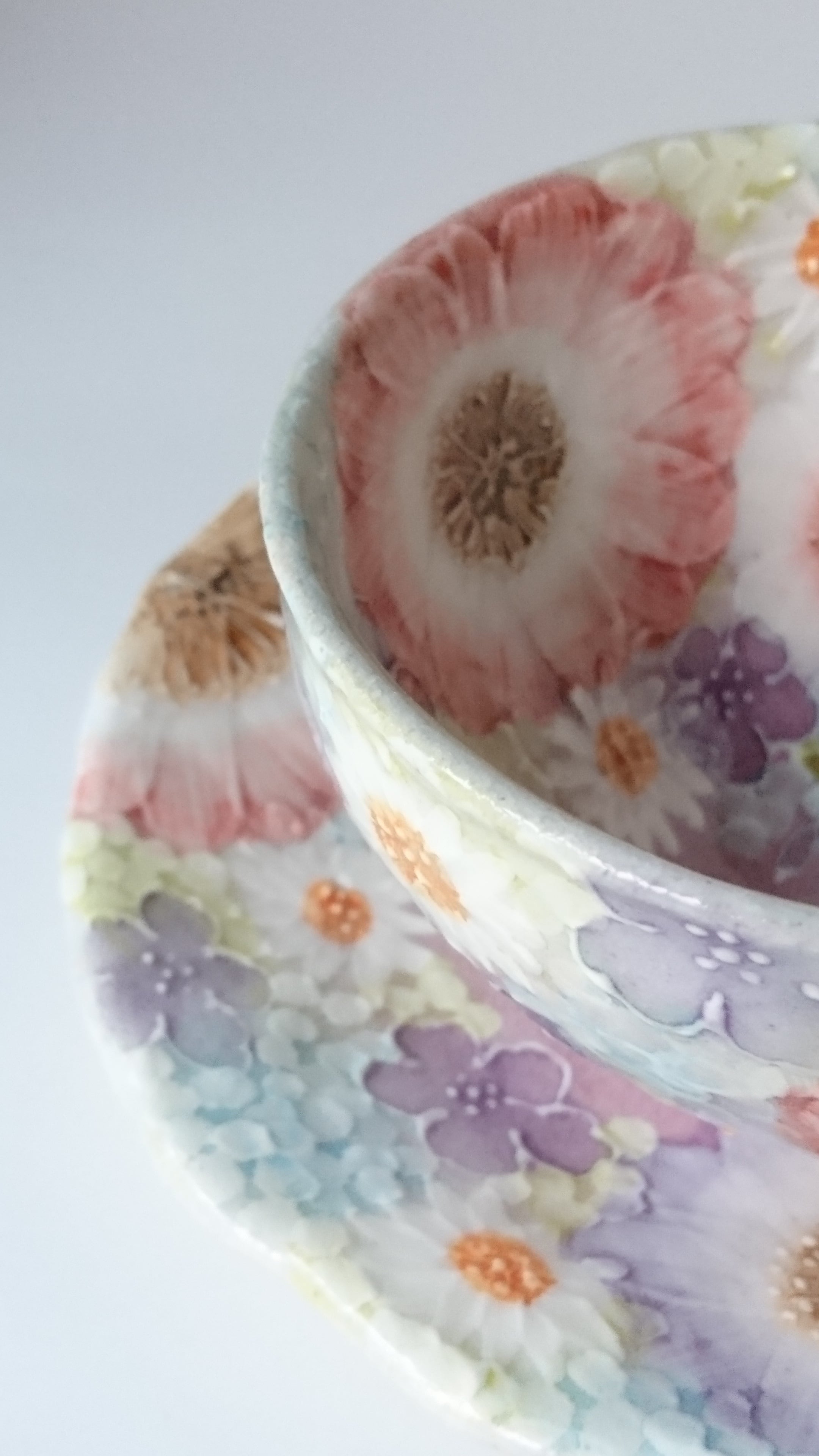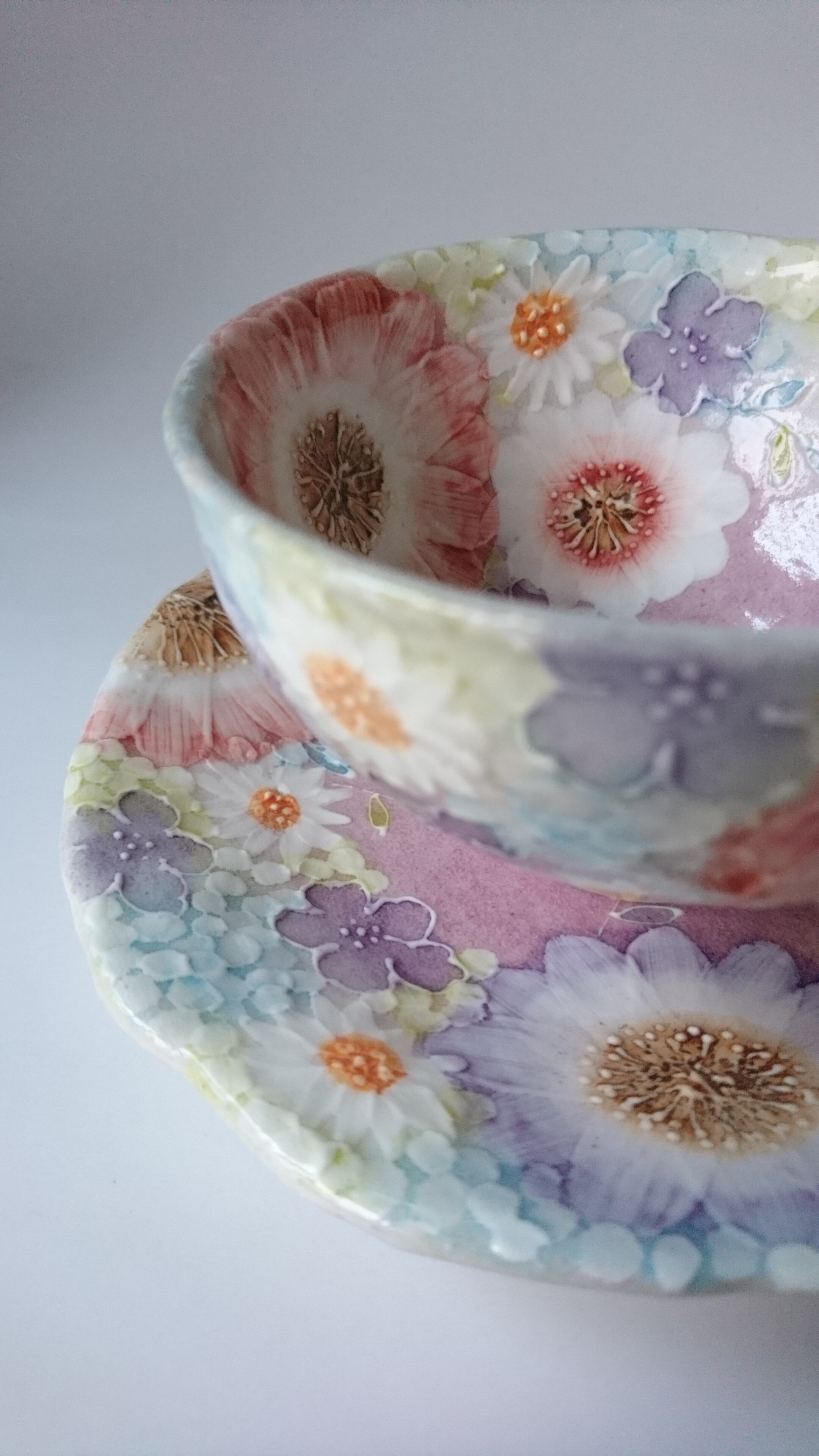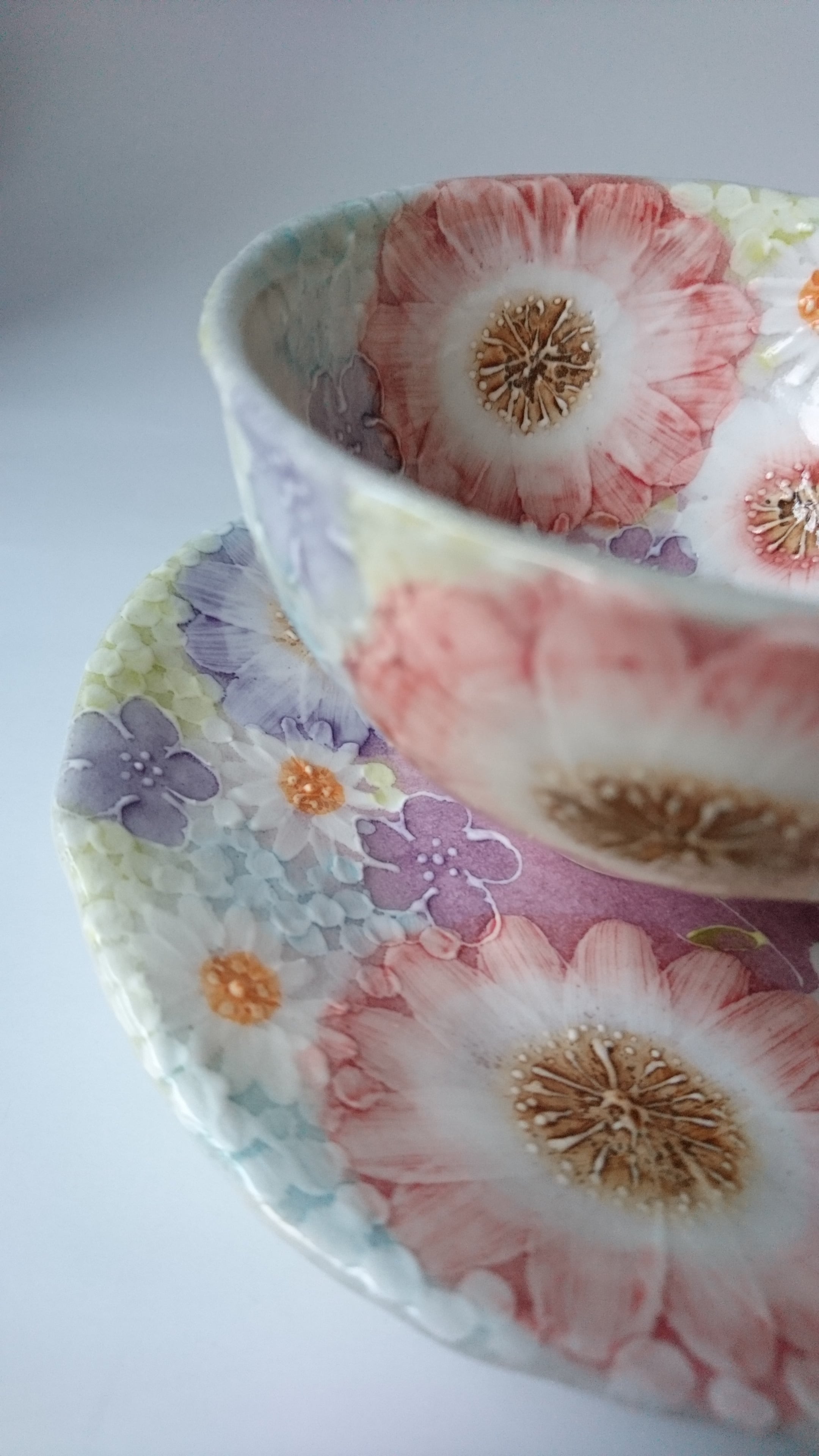 華やかな絵柄の食器です、今日一日頑張る気持ちに