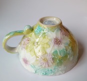 ピンクとグリーンの下地に繊細な絵柄が丁寧に