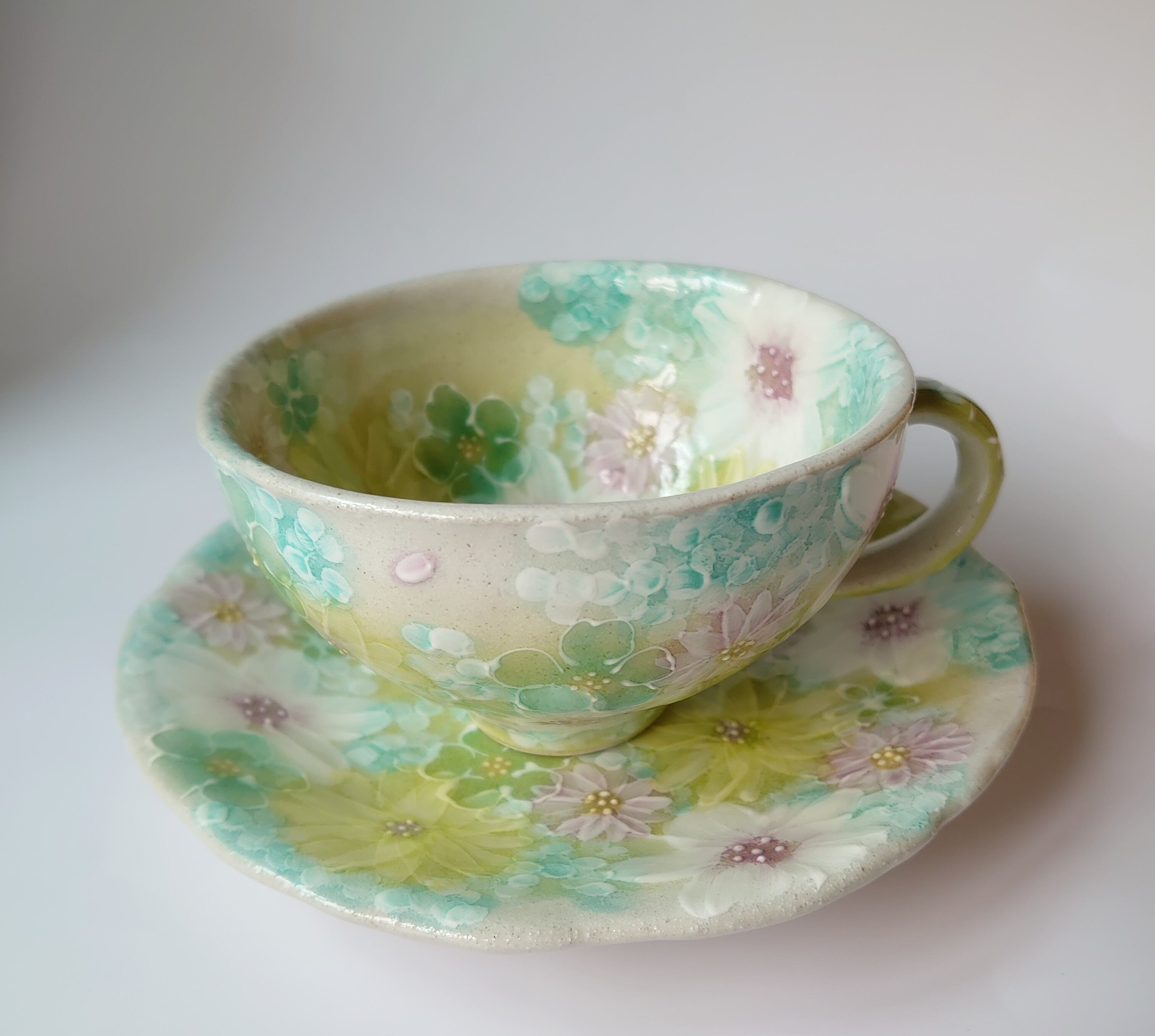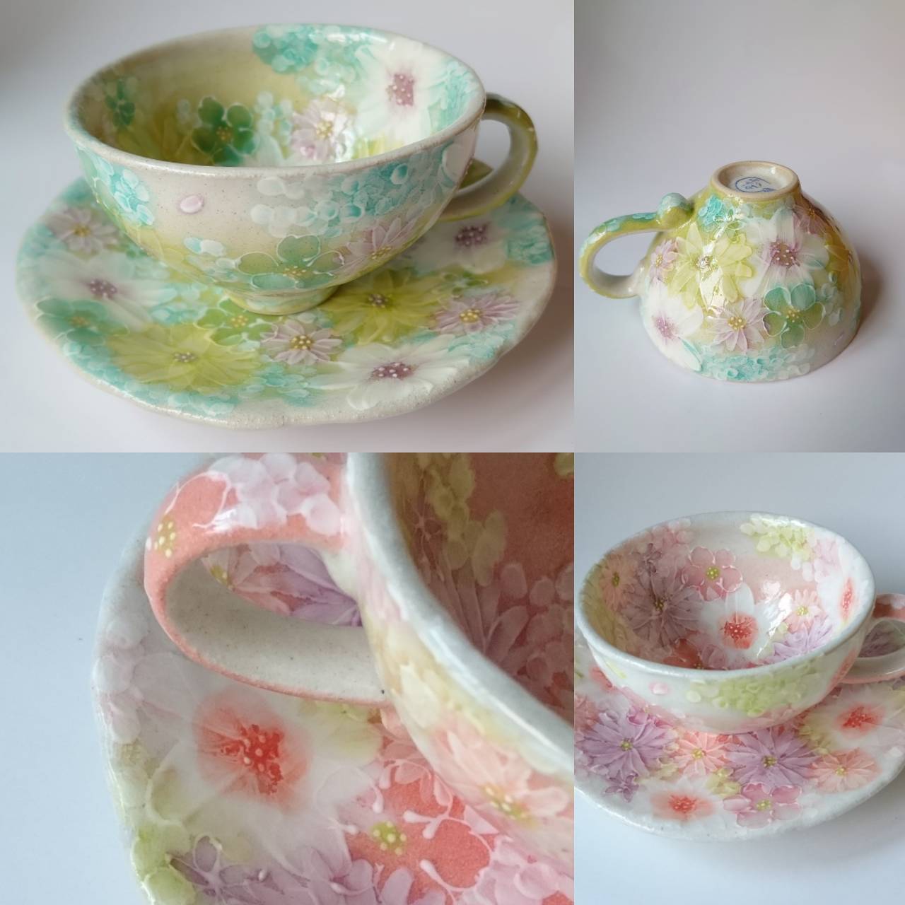 工房ゆずりは ペアセット 紅彩雅花・彩小花紋カップ&ソーサー