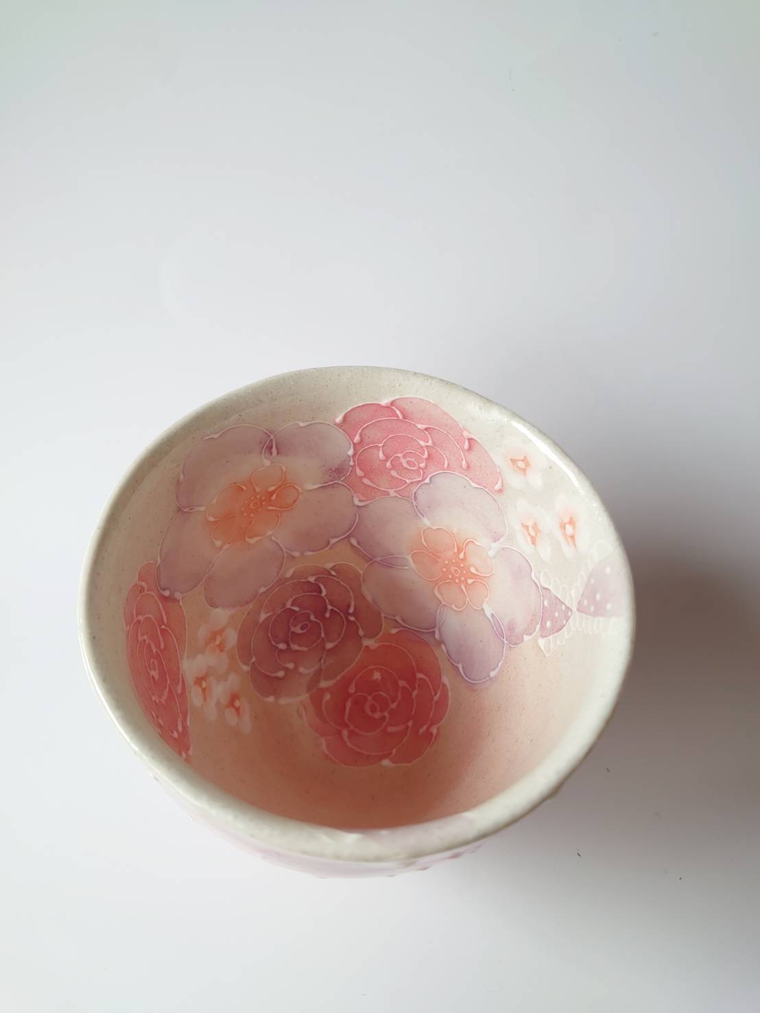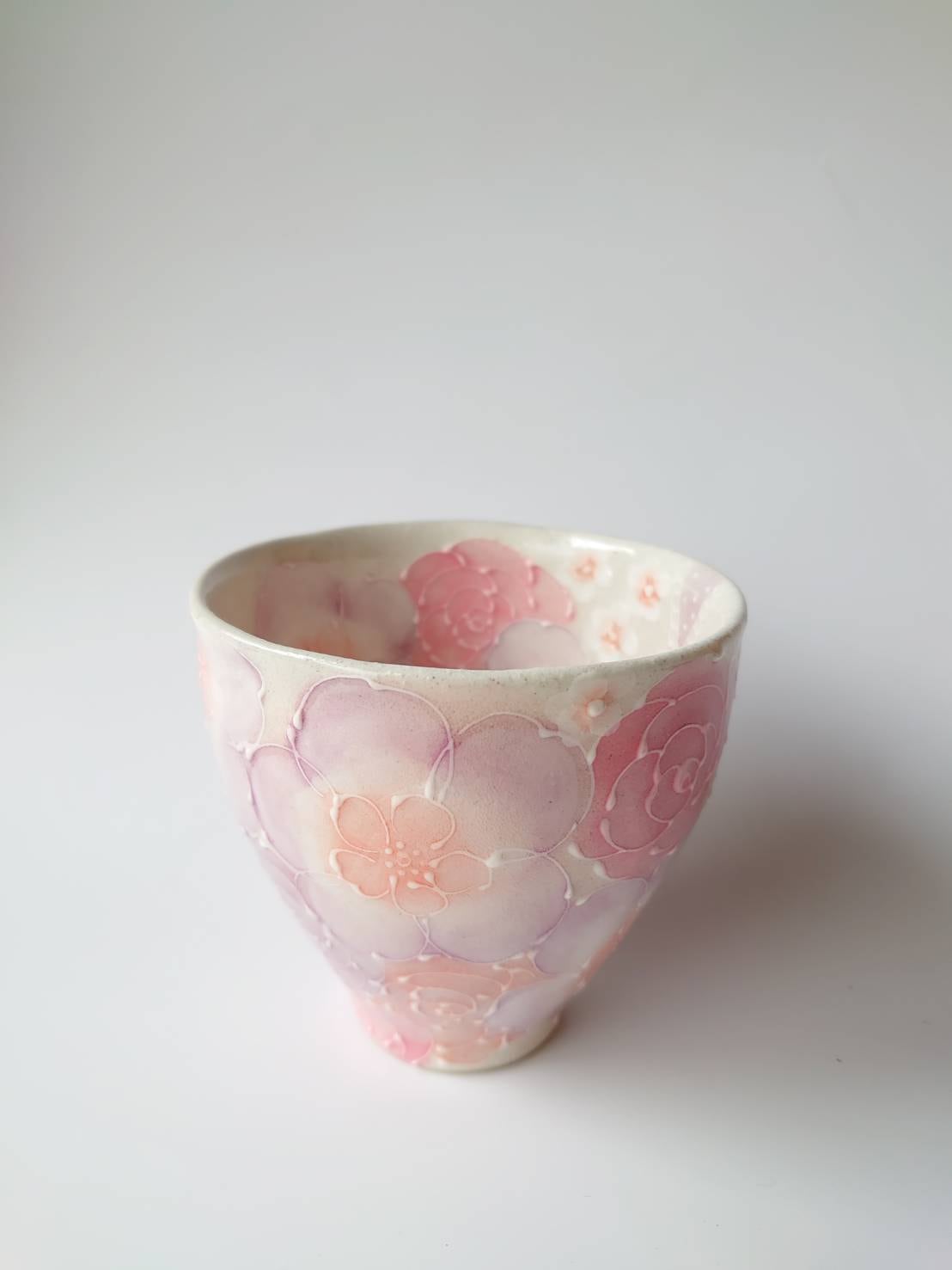 工房ゆずりは お湯呑み 統一感のあるピンク系の絵柄が好印象 釉彩紅花 49171