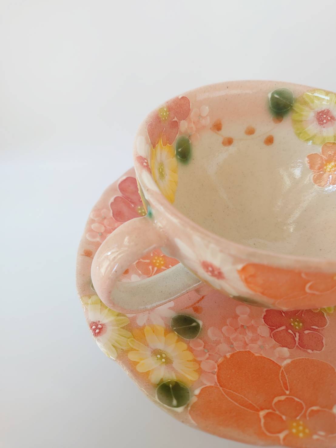 工房ゆずりは カップ&ソーサー 華やかなオレンジ色がとてもキュート 紅彩花化粧