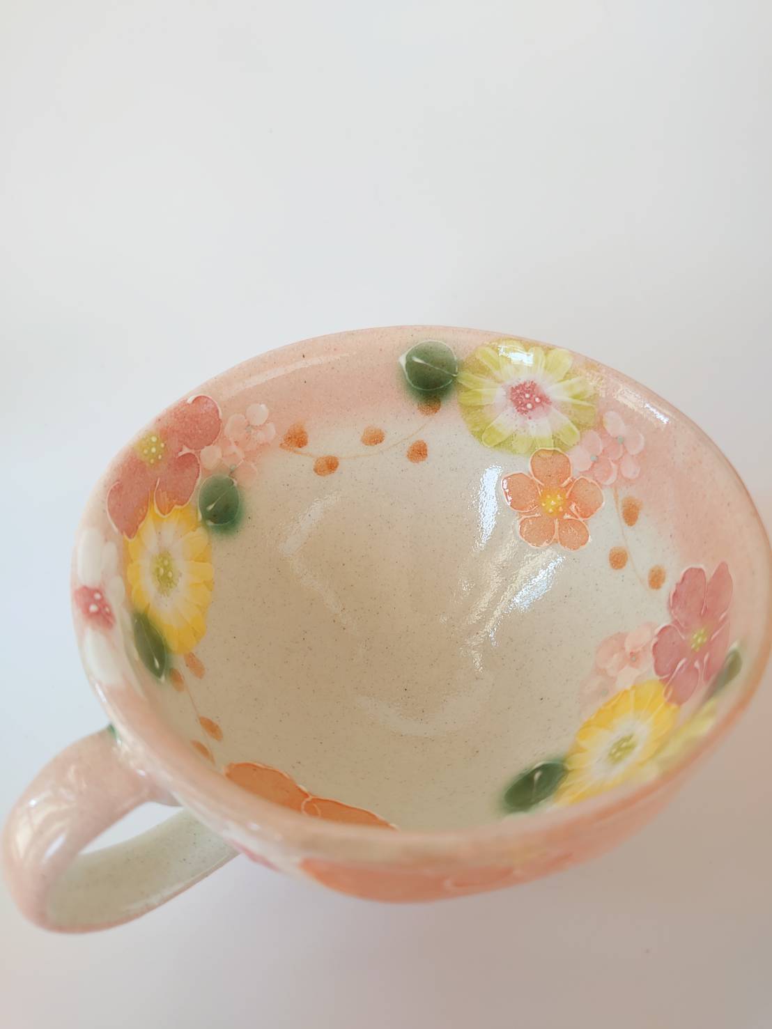 可愛いオレンジ色の花柄がとても可愛いいカップ