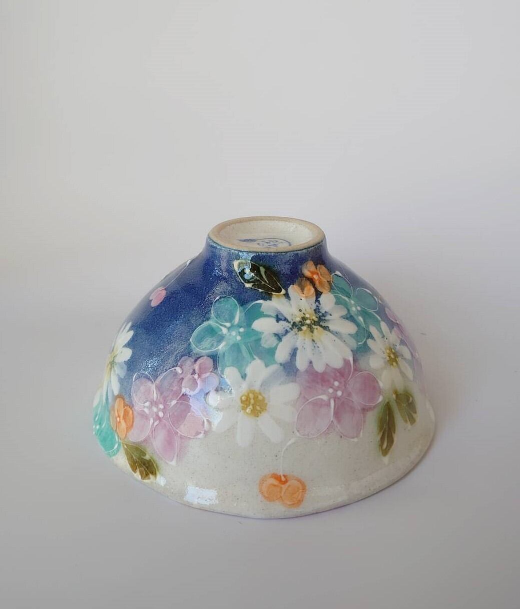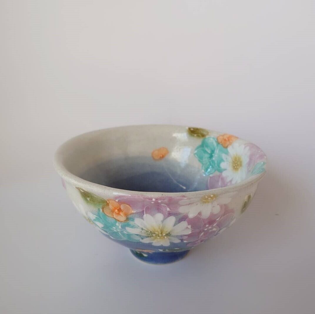 工房ゆずりは 青彩花化粧 お茶碗 42609