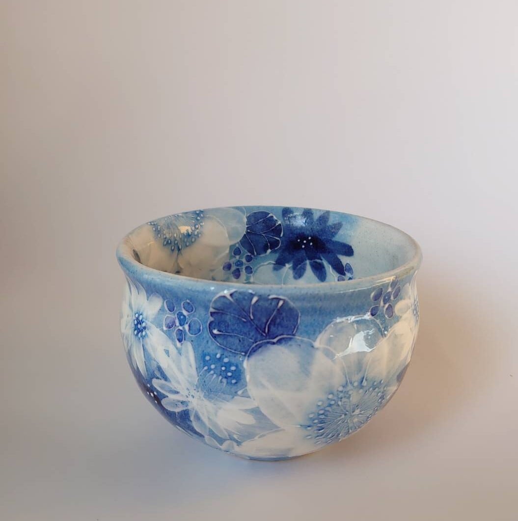 工房ゆずりは 藍彩白絵花 ふくふく碗 44854