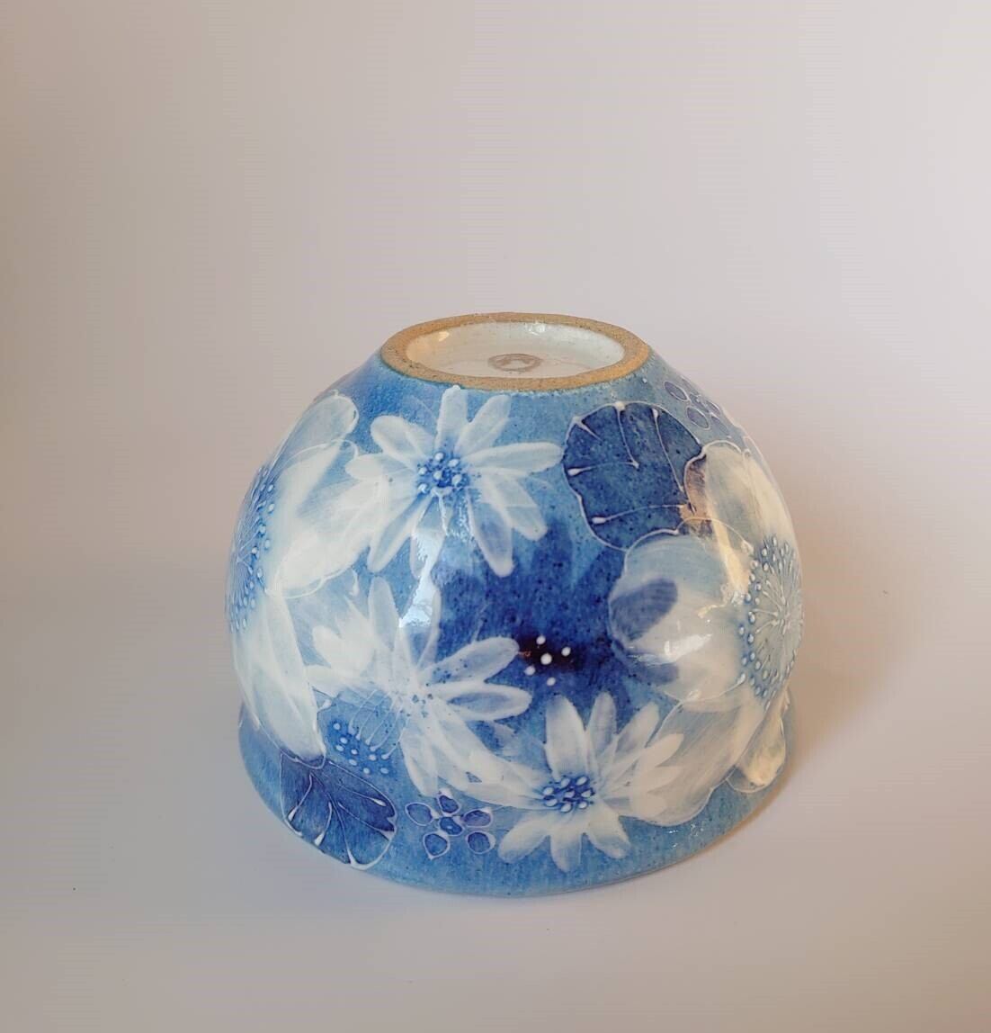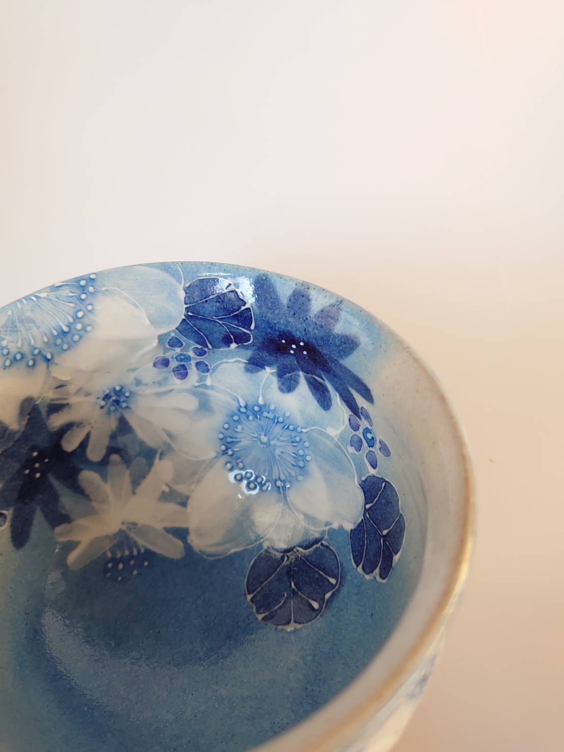 工房ゆずりは ふくふく碗 鮮やかな青が清涼感と高級感を醸し出します 藍彩白絵花 44854