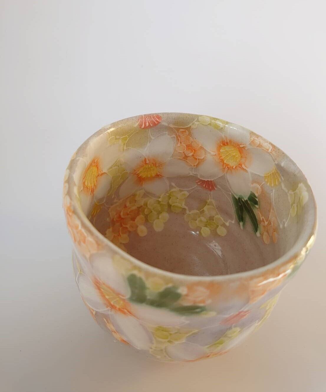 マーガレットをイメージさせる白い花柄が綺麗なふくふく碗