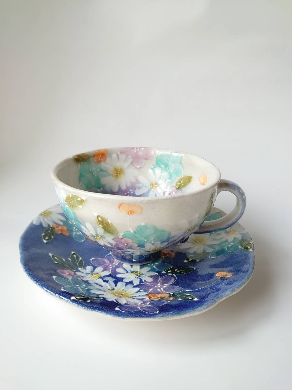 工房ゆずりは カップ&ソーサー 青彩花化粧 42612