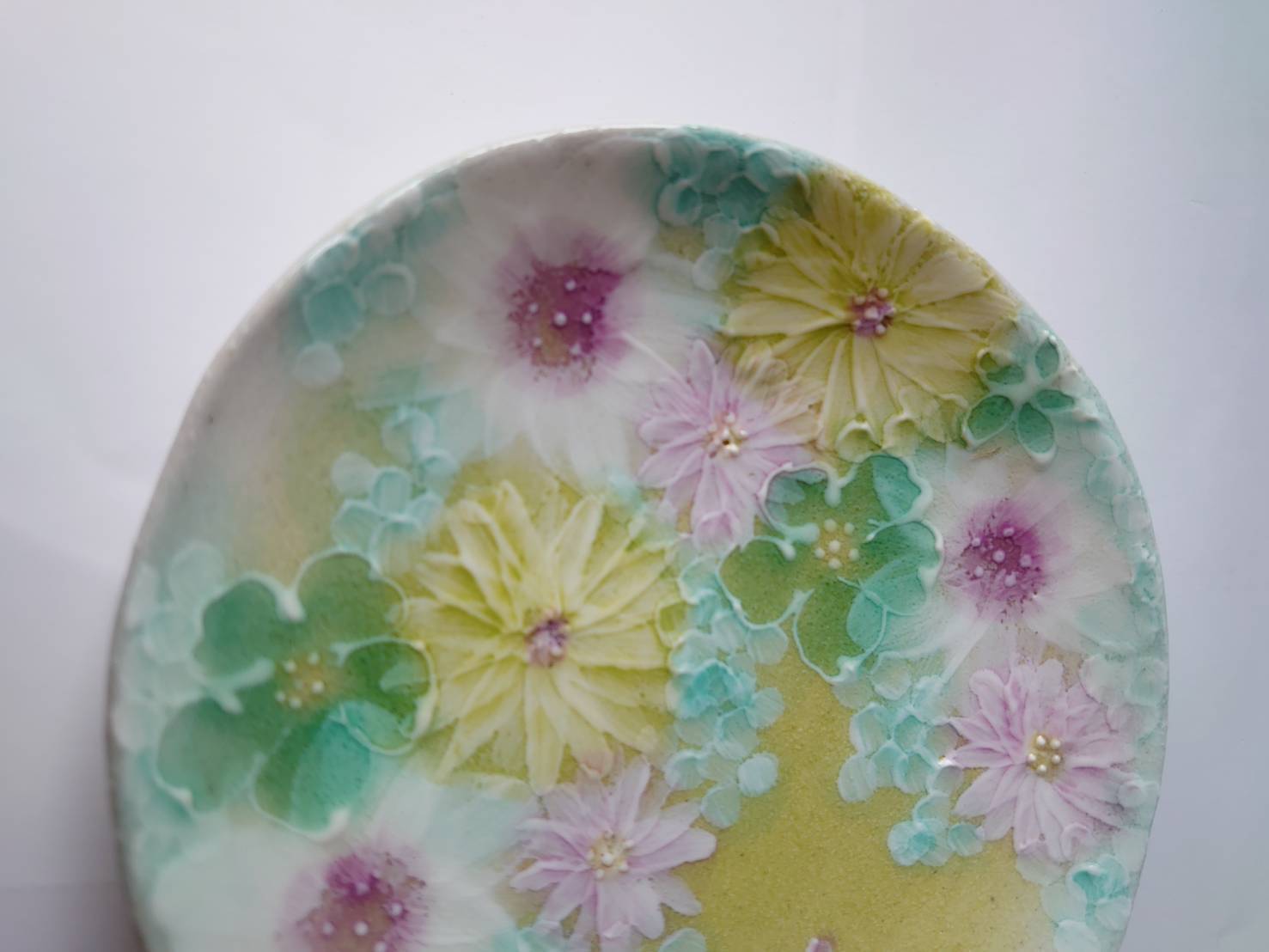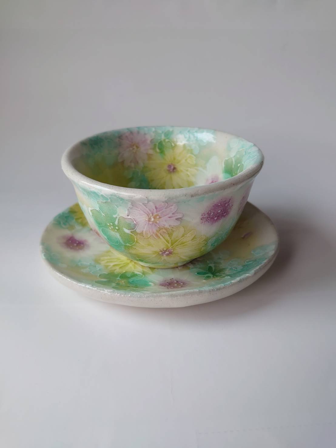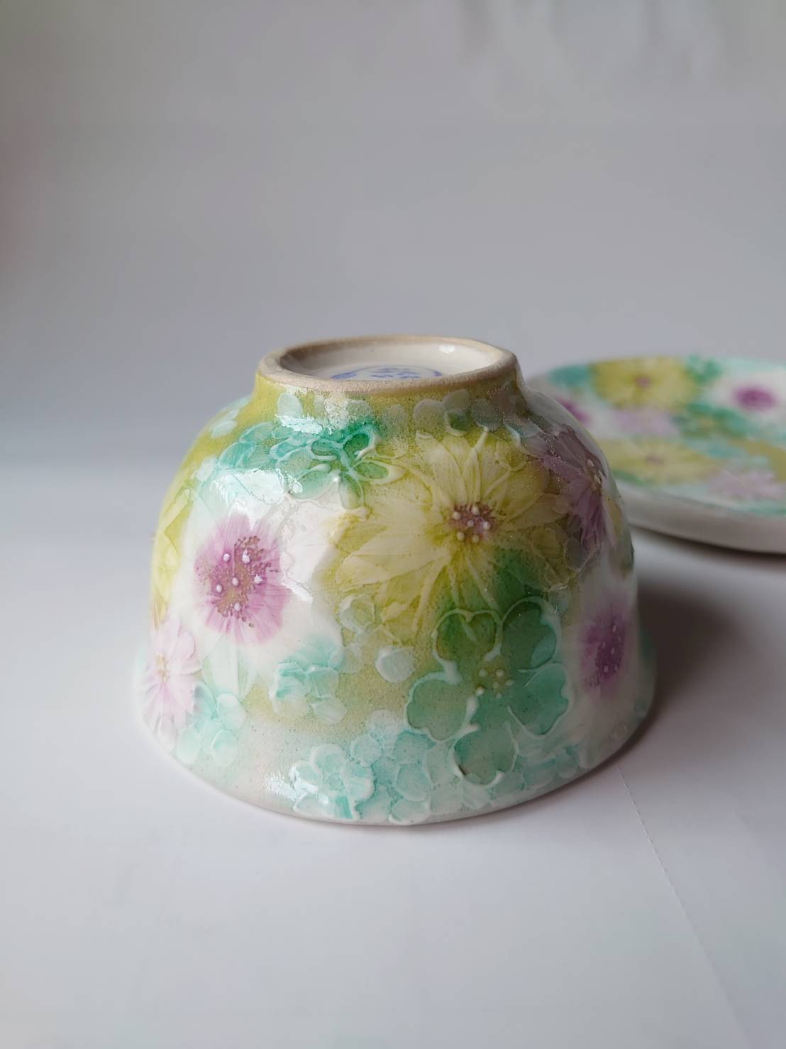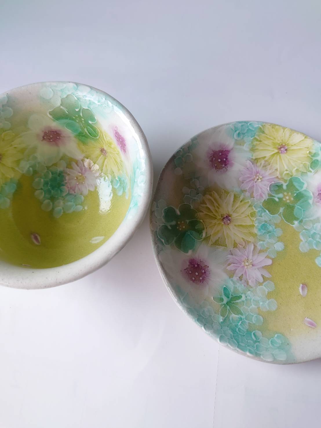 工房ゆずりは(There is an English translation .)茶菓セット 優しいグリーンと花柄がとても繊細で綺麗な 彩小花紋 45279