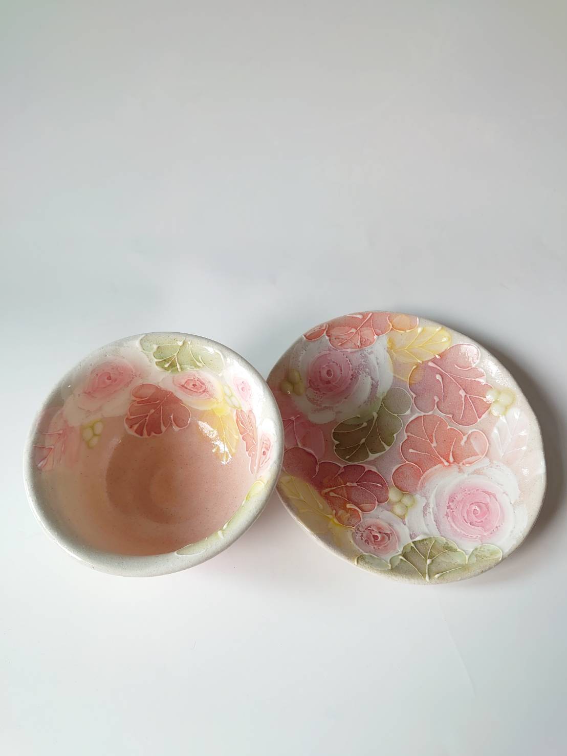 ピンクローズがとても綺麗な釉彩ローズ