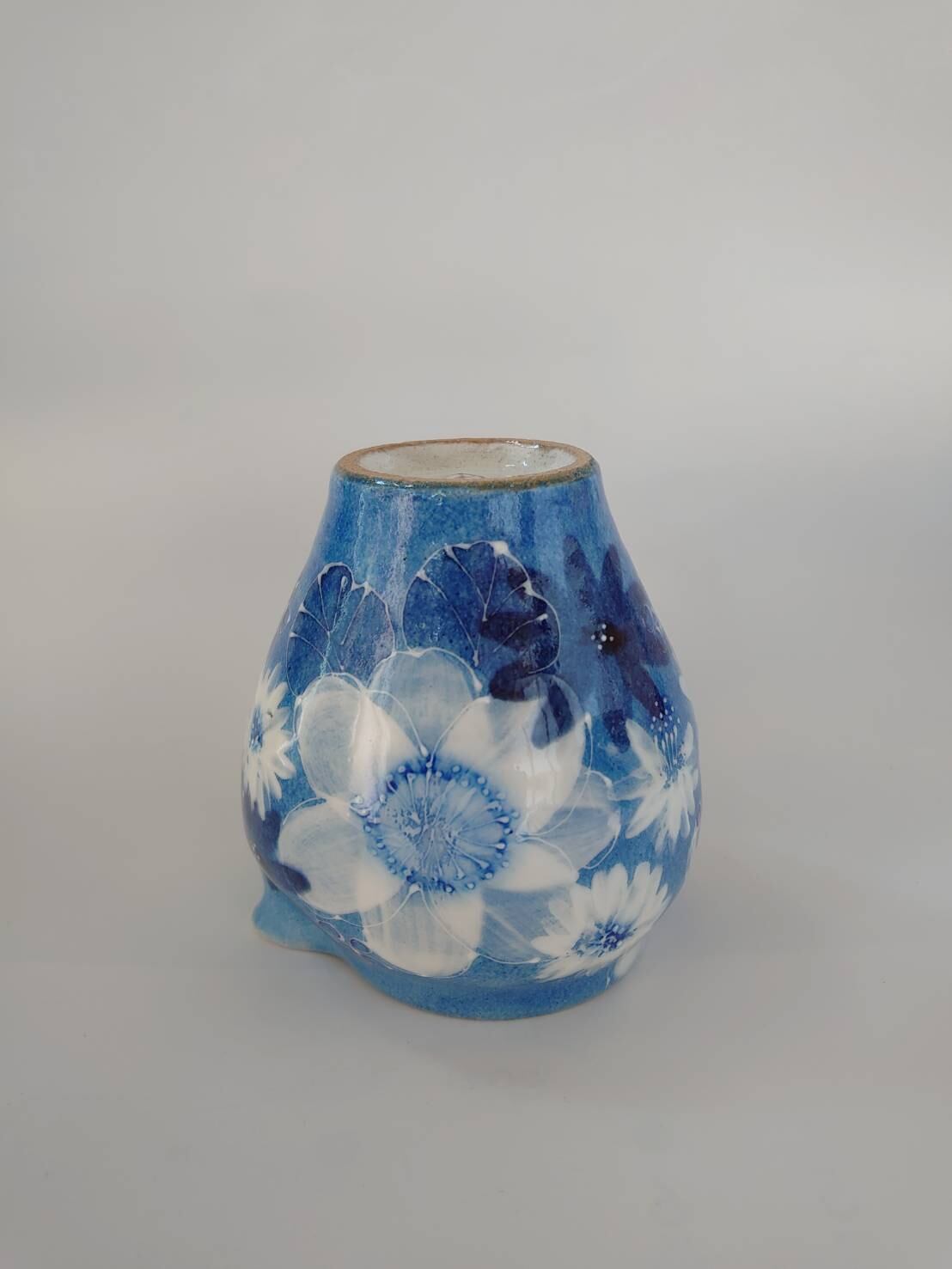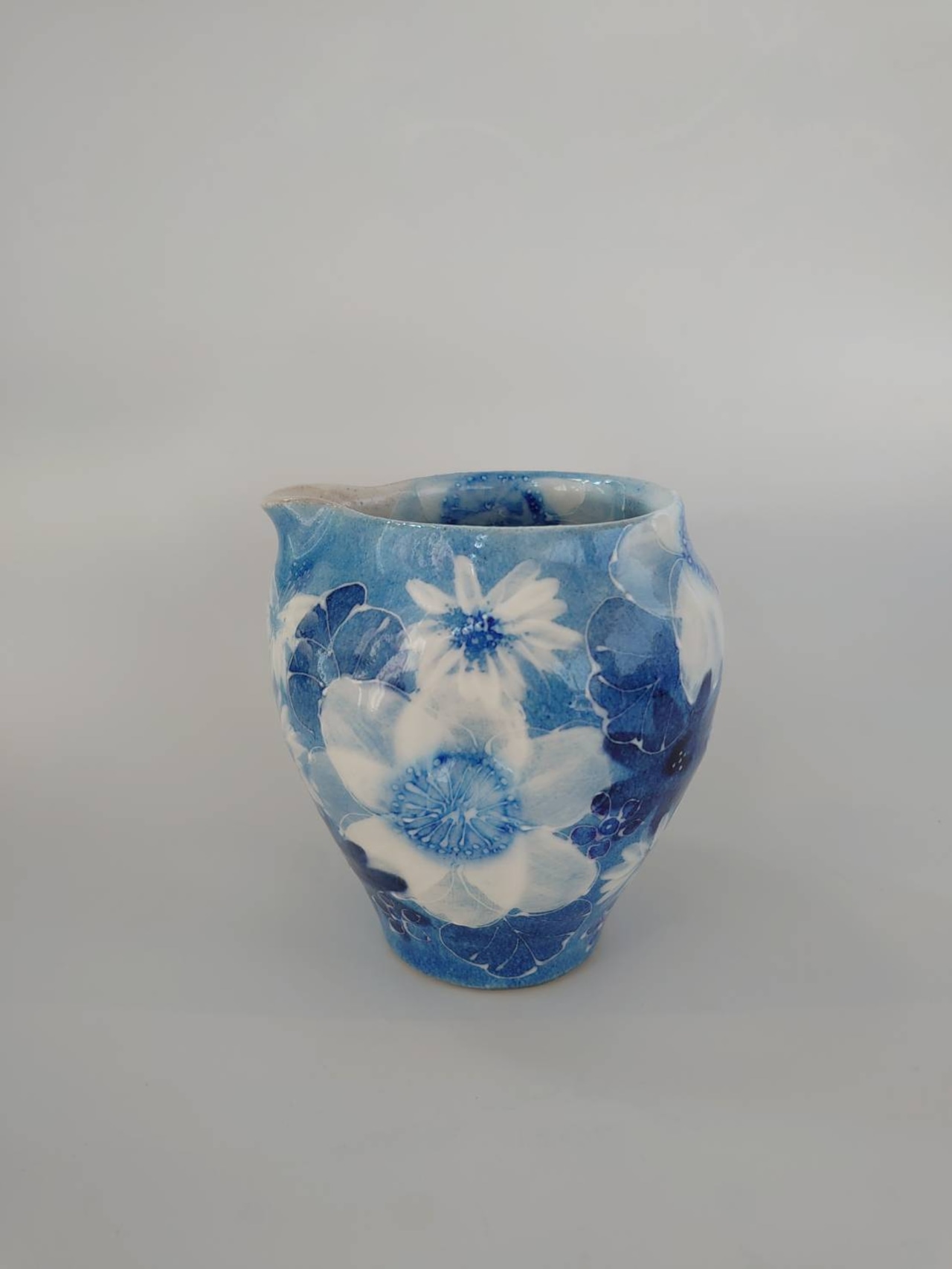 工房ゆずりは 片口 鮮やかな青が清涼感と高級感を醸し出します 藍彩白絵花 46435