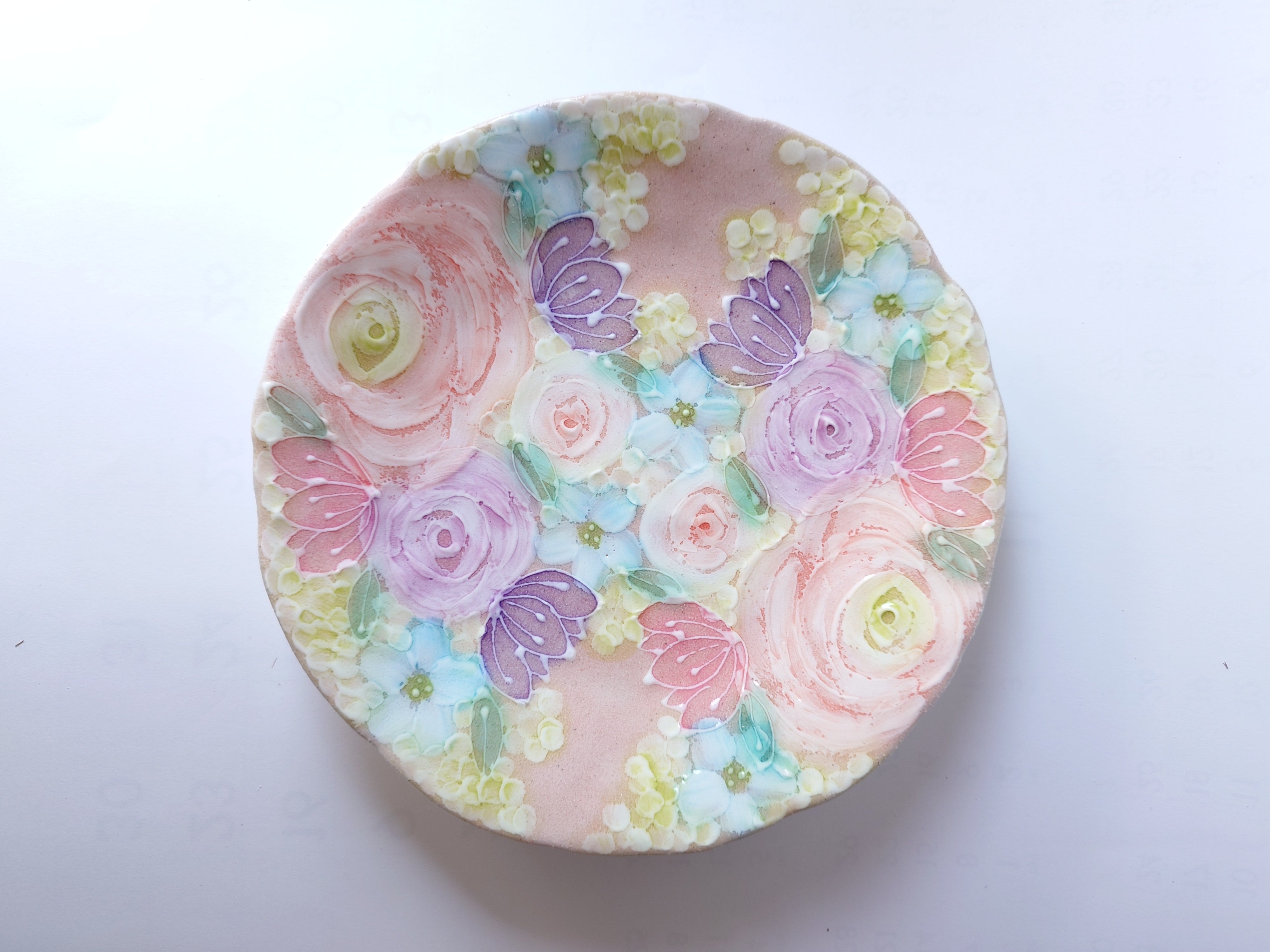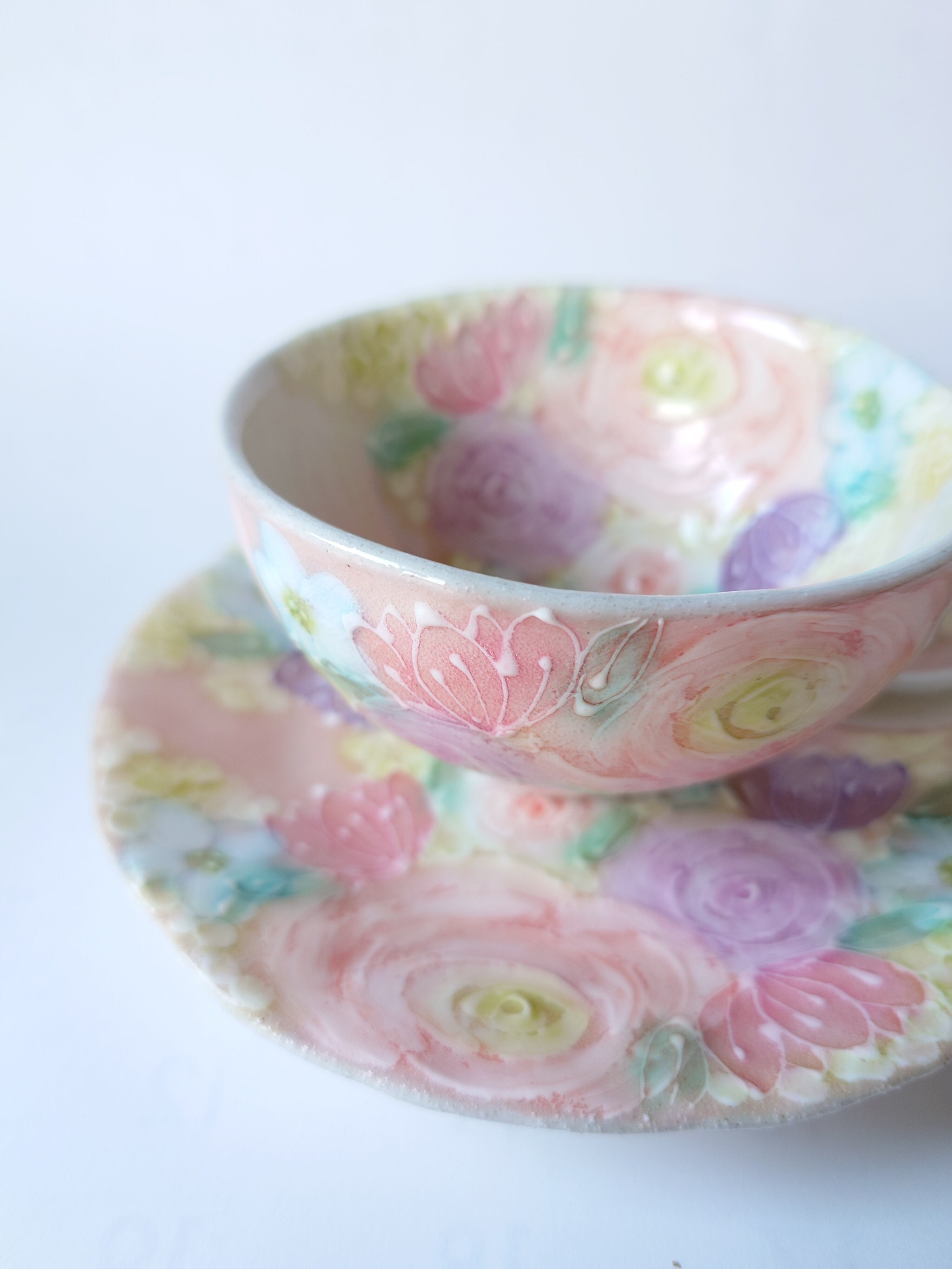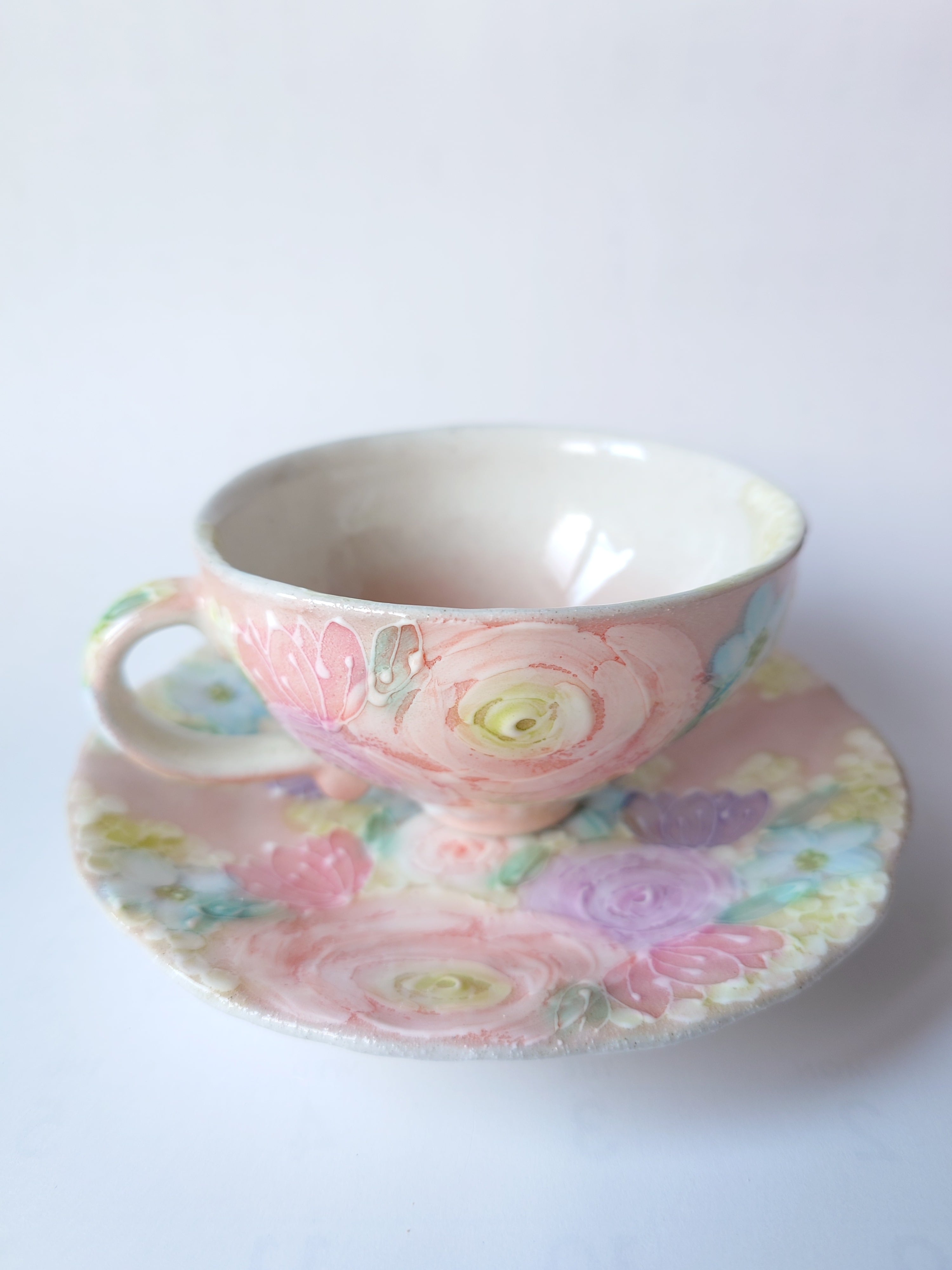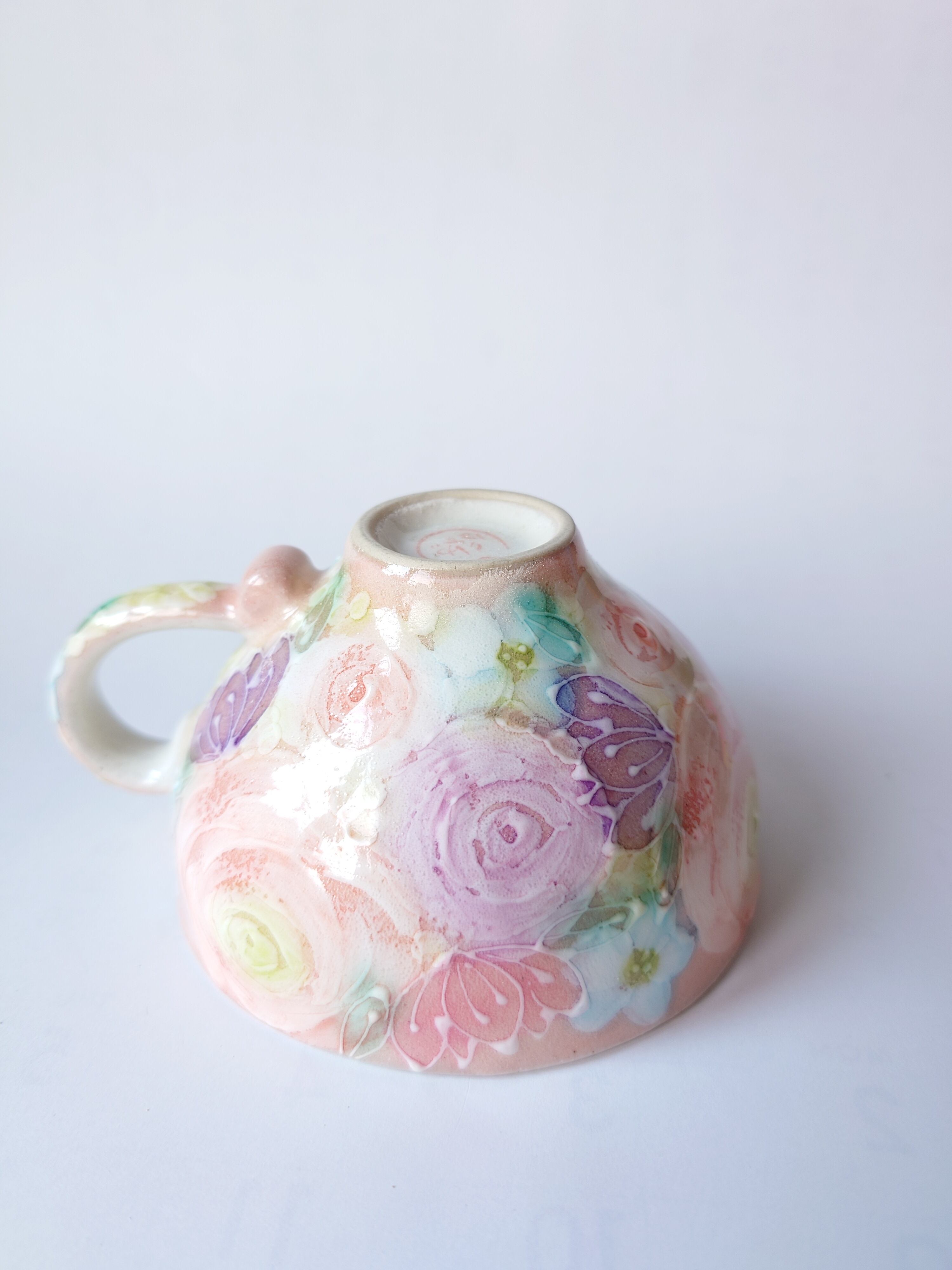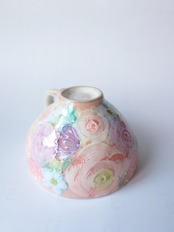 工房ゆずりは カップ&ソーサー ピン系のデフォルメされた薔薇がとても繊細 色彩優花 47037